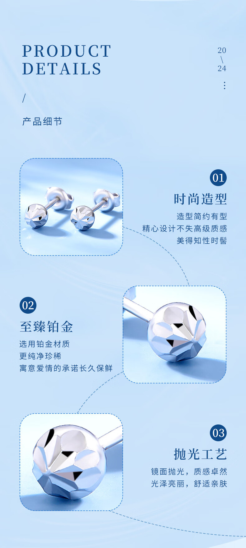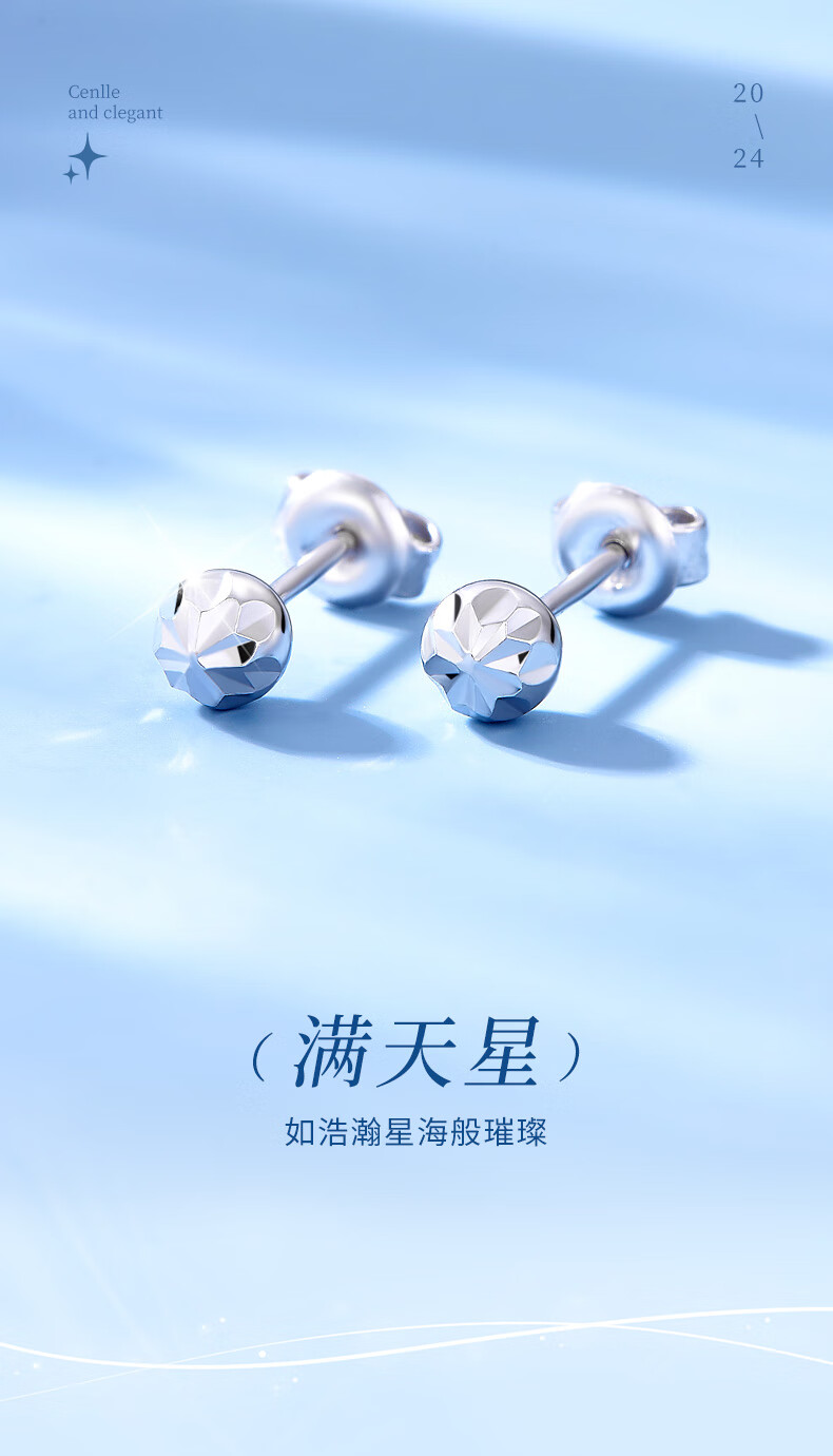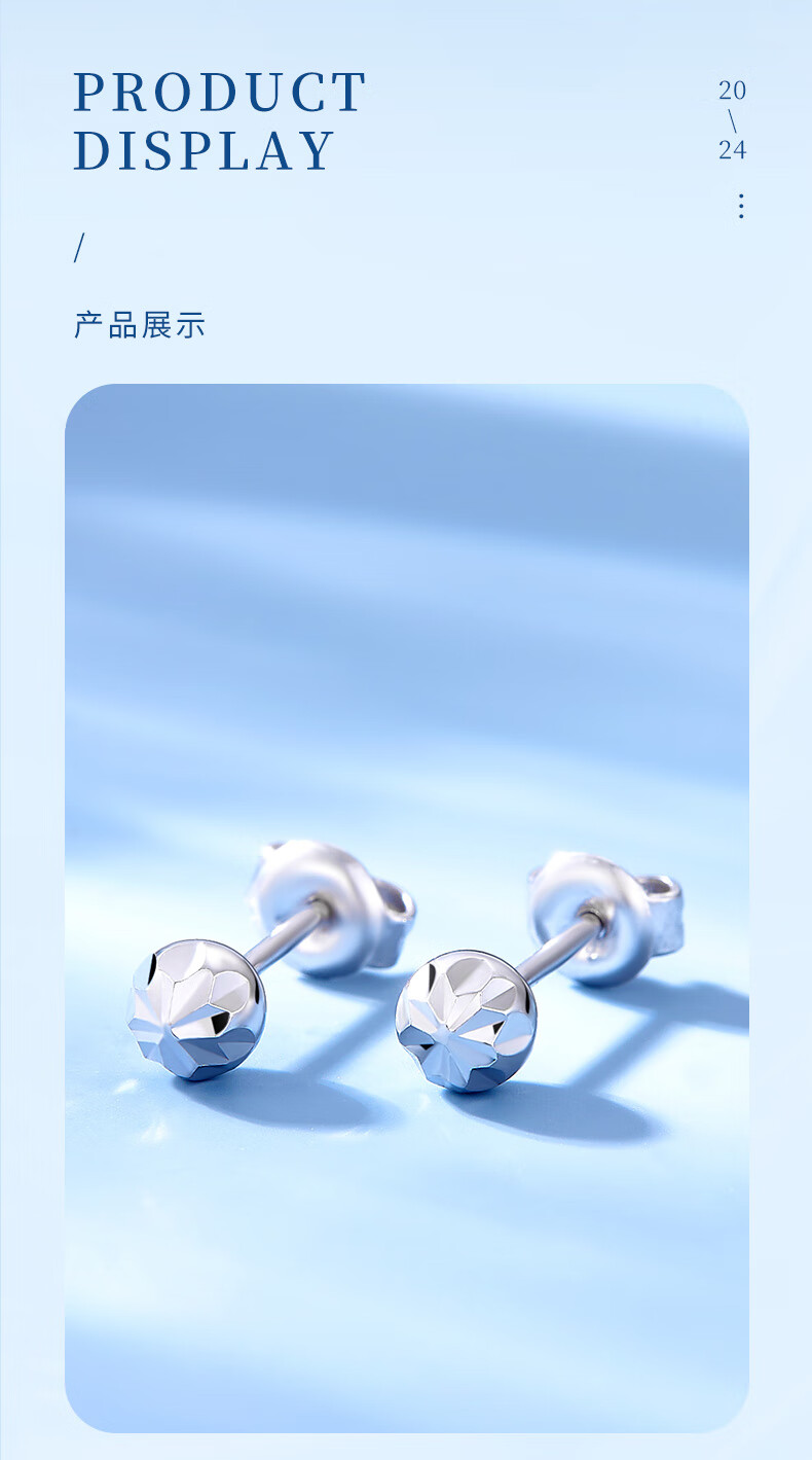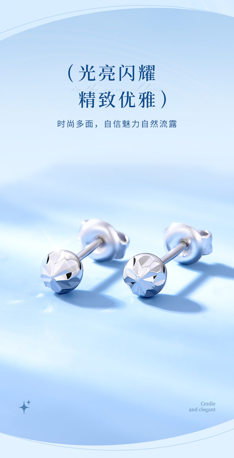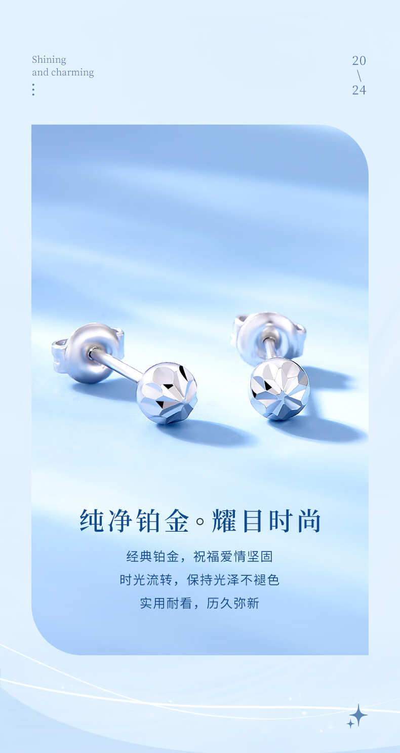 CHINA GOLD PT950 platinum round ball earrings 2025 new round earrings Valentine's Day birthday gift for girlfriend and wife PT950 platinum round ball earrings about 1.2g