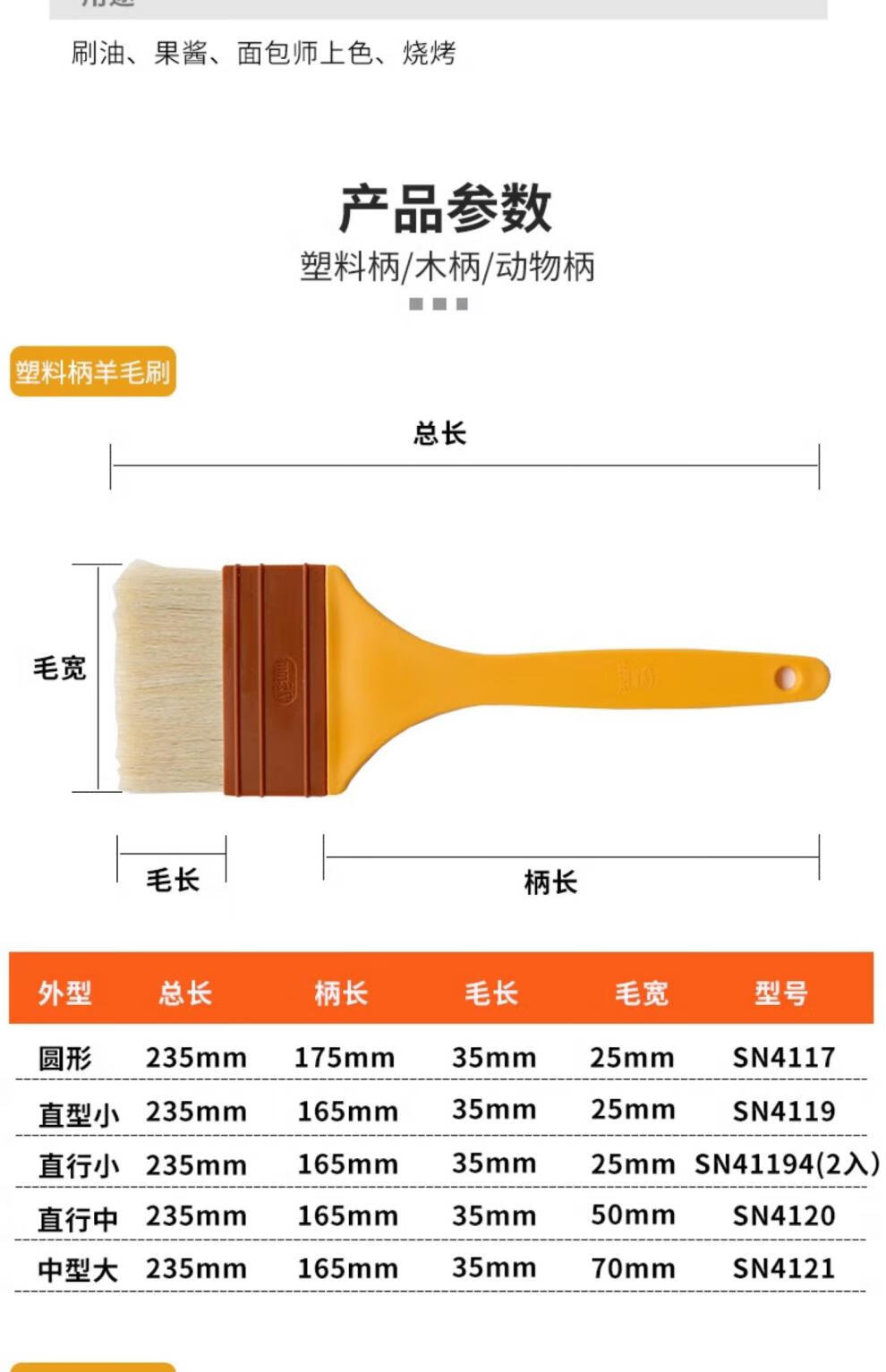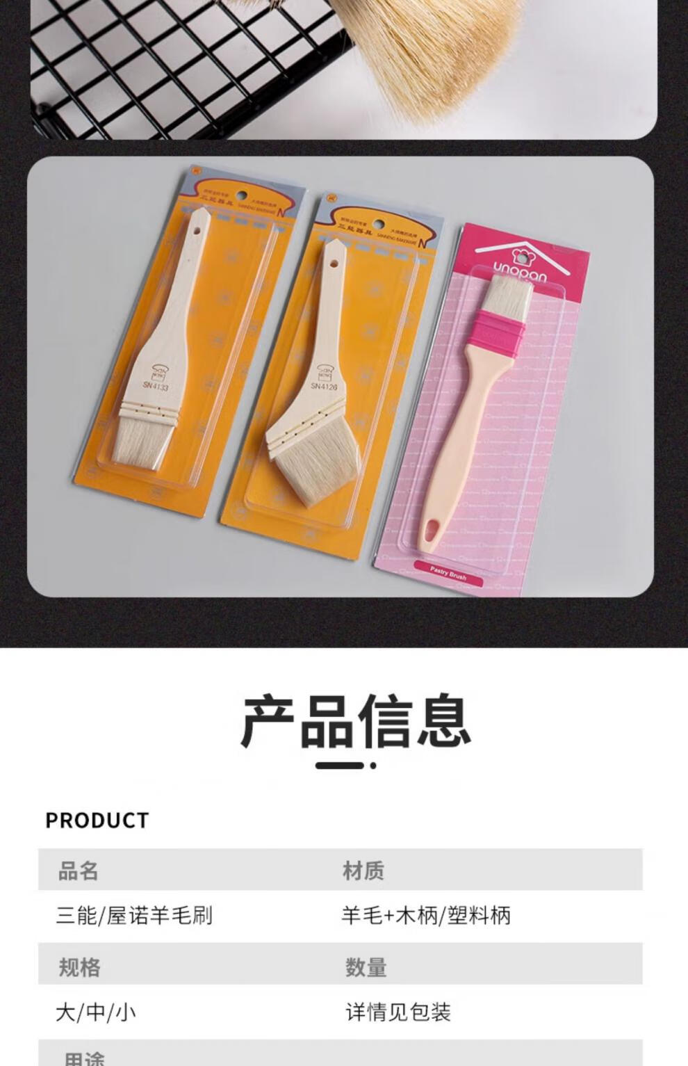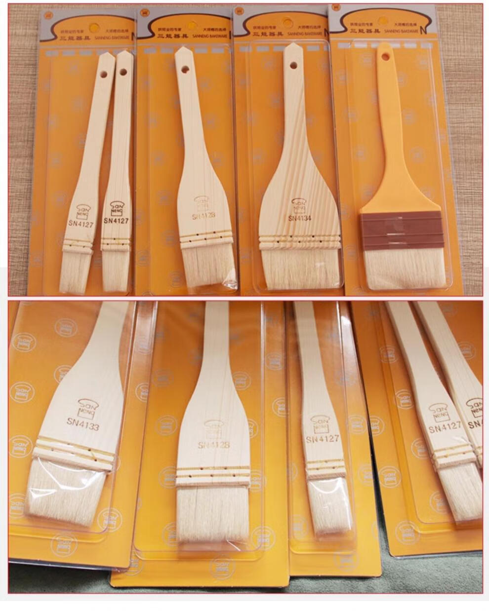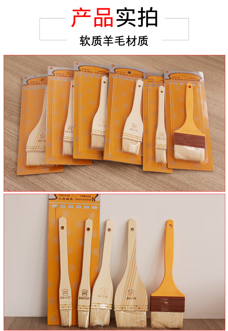Sanneng BBQ Brush Food Grade Non-shedding Wool Brush Baking Wooden Handle Wool Brush Soft Bristle Brush Baking Mooncake Egg Liquid Brush SN41274 (Small Size) (2 Packs) 30% Customer Choice