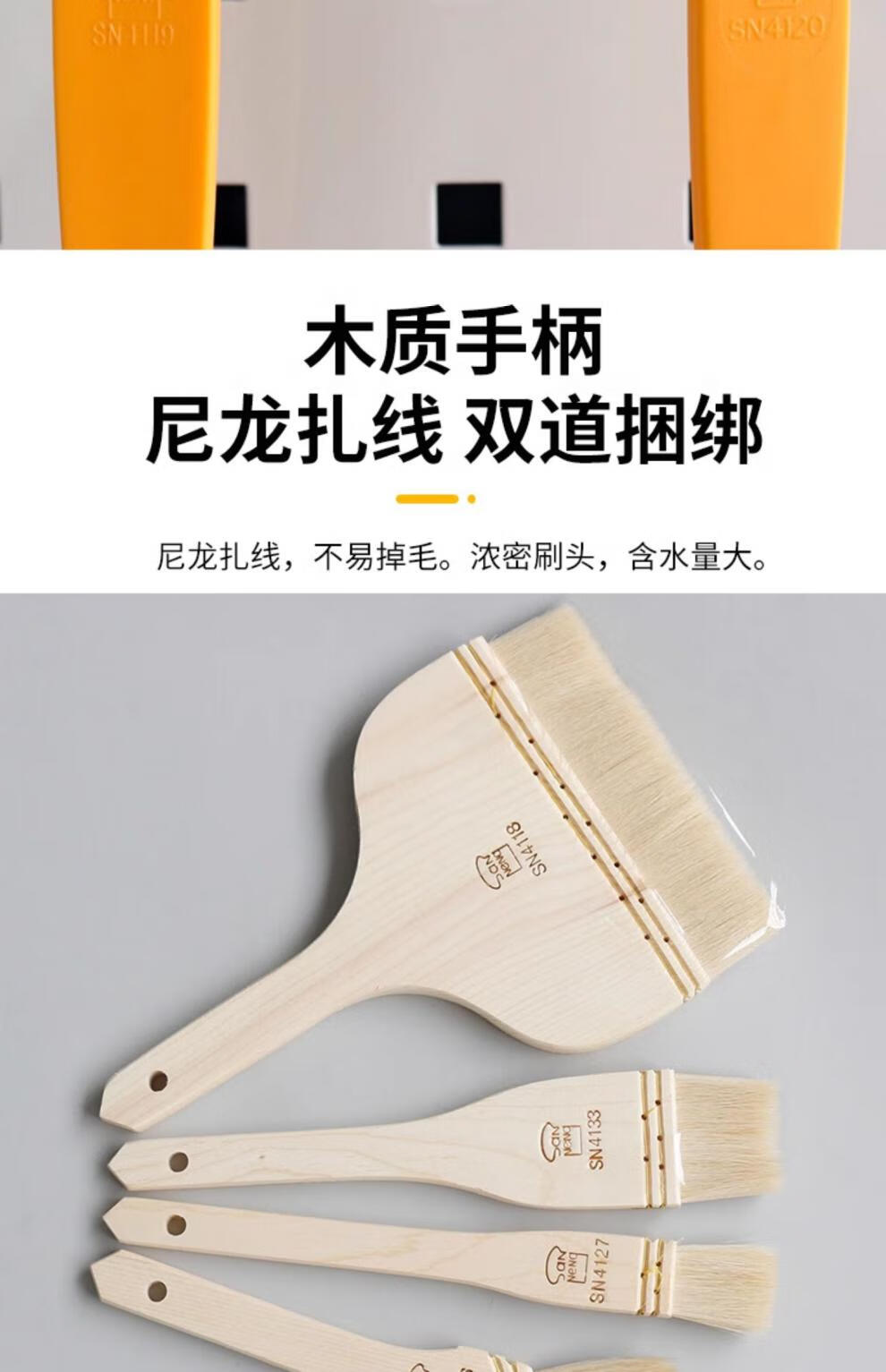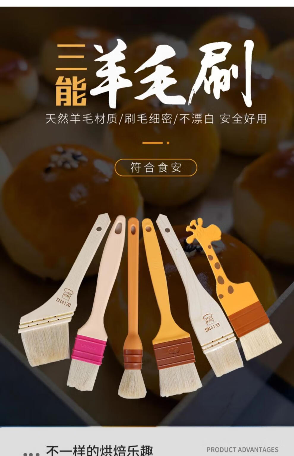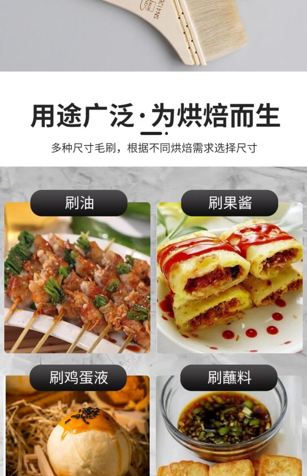 Sanneng BBQ Brush Food Grade Non-shedding Wool Brush Baking Wooden Handle Wool Brush Soft Bristle Brush Baking Mooncake Egg Liquid Brush SN41274 (Small Size) (2 Packs) 30% Customer Choice