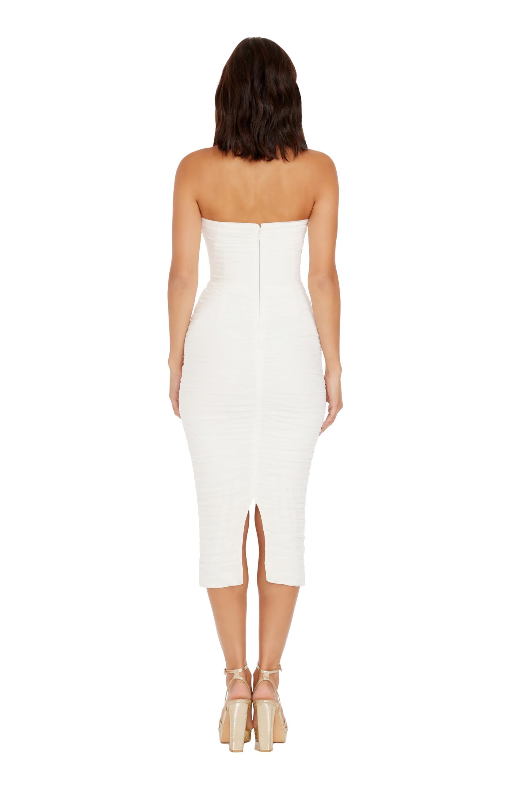 Dress the Population Women's Mixed Bodycon Midi Dress, White, XXL White XXL