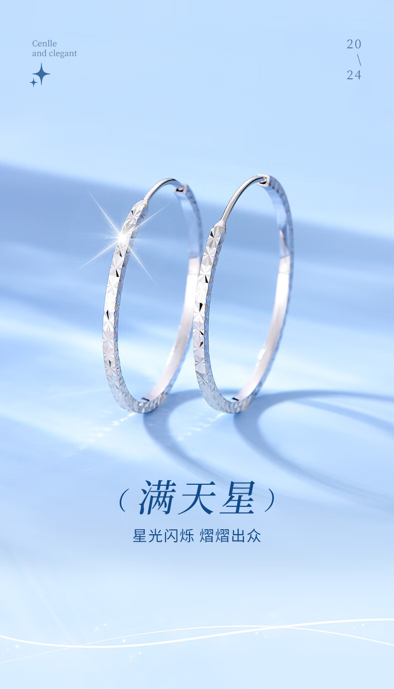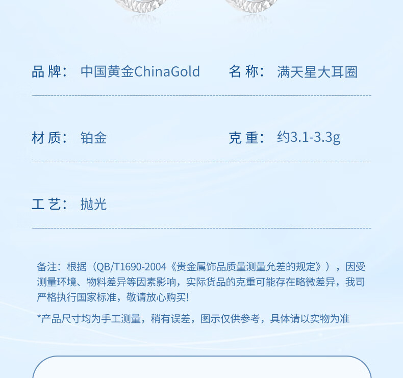 CHINA GOLD PT950 platinum baby's breath earrings large hoop earrings earrings Valentine's Day birthday gift for girlfriend and wife Platinum baby's breath earrings about 3.4g medium gold gift box