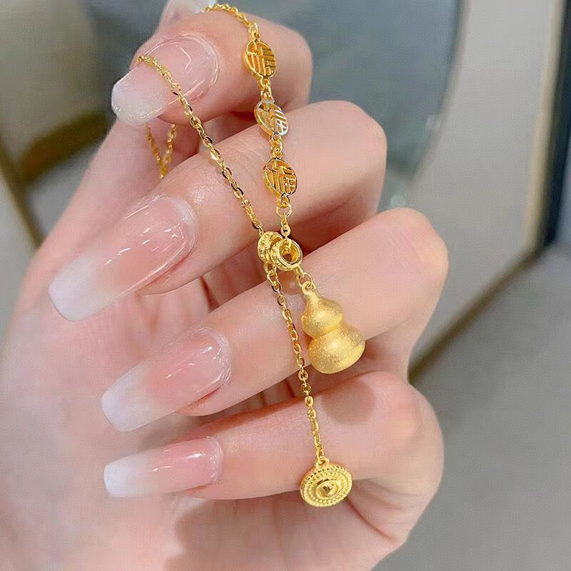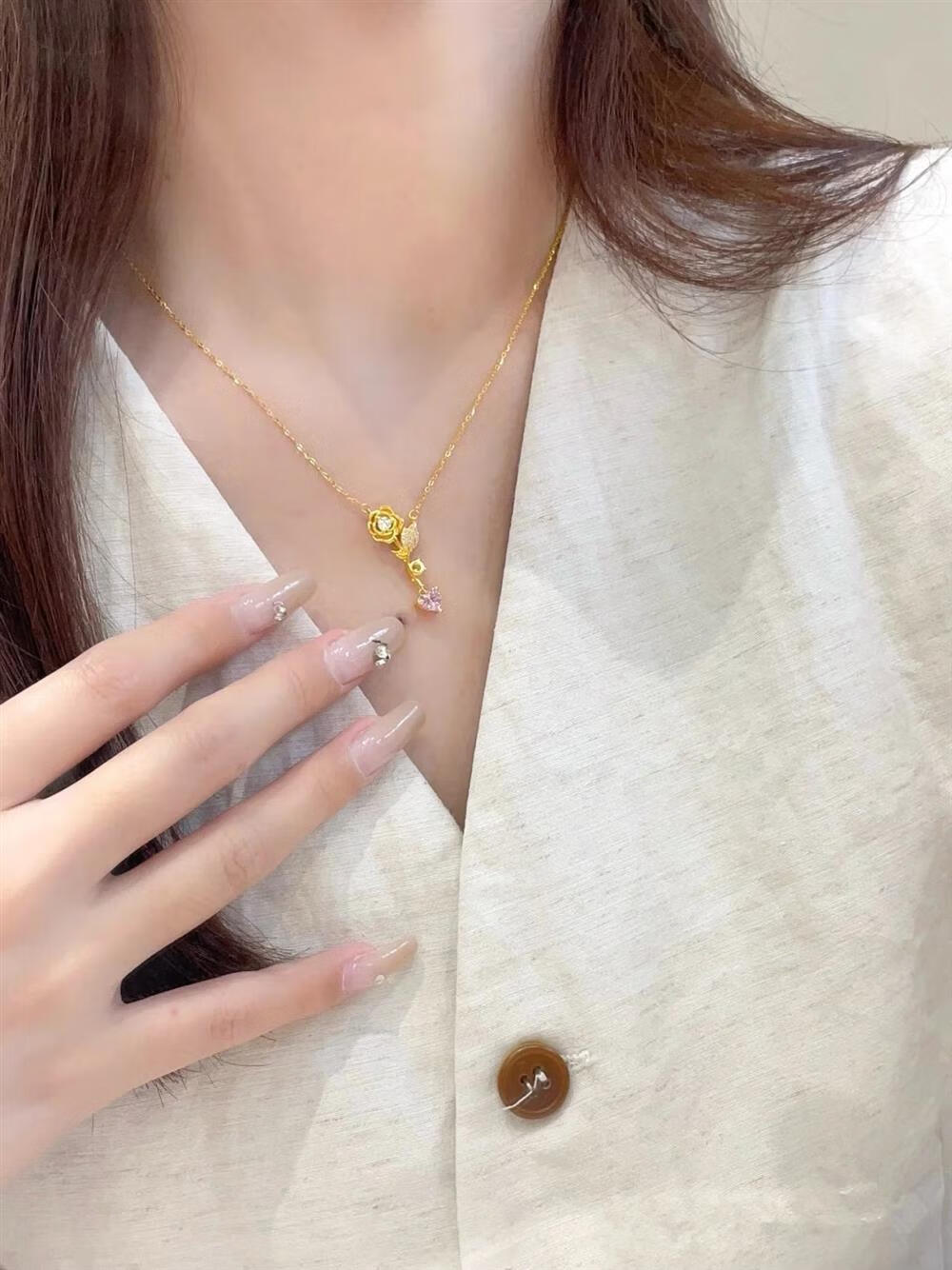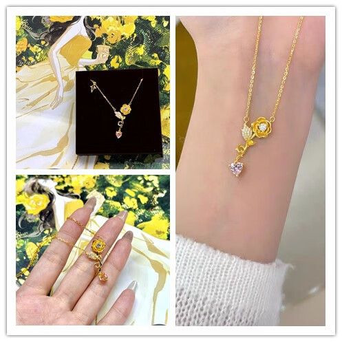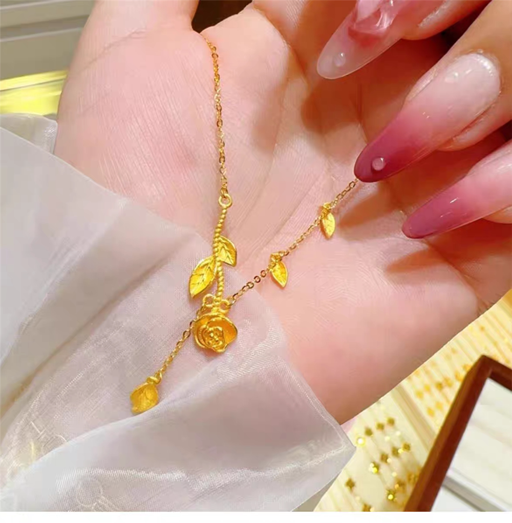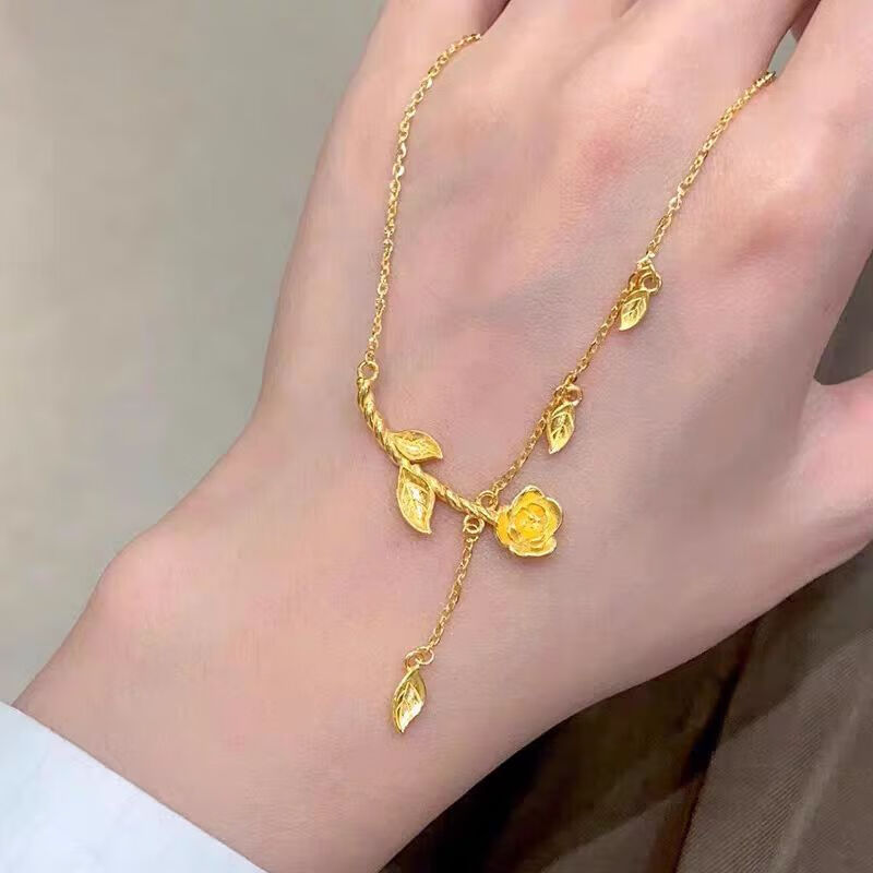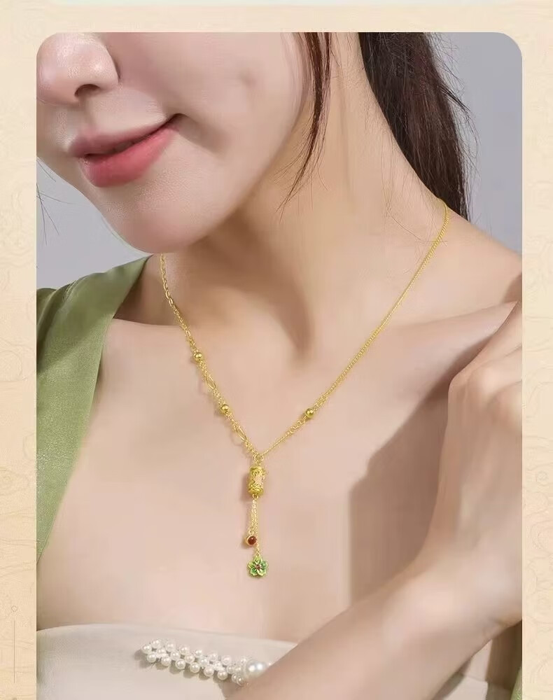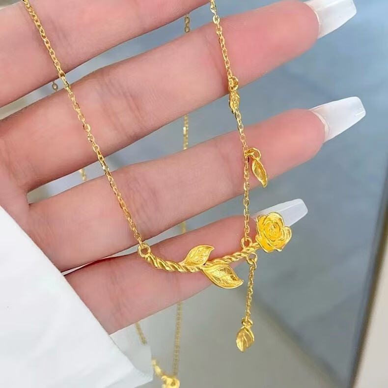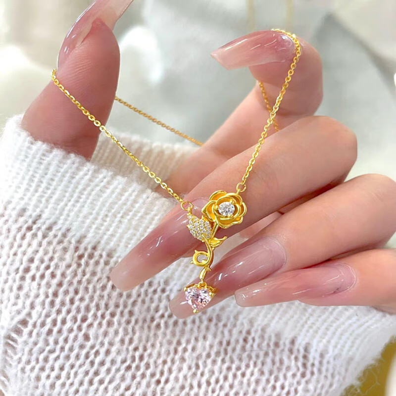 Red Shadow Gold Necklace Women's 18k Color Gold Plated Clavicle Chain 2025 New Gold Plated Gourd Pendant Girlfriend Romantic Lifelong Rose Necklace