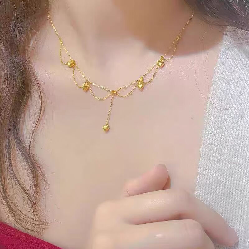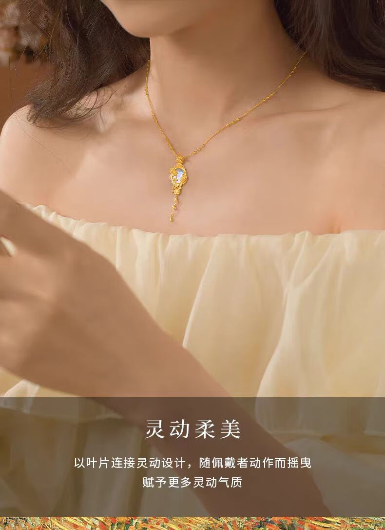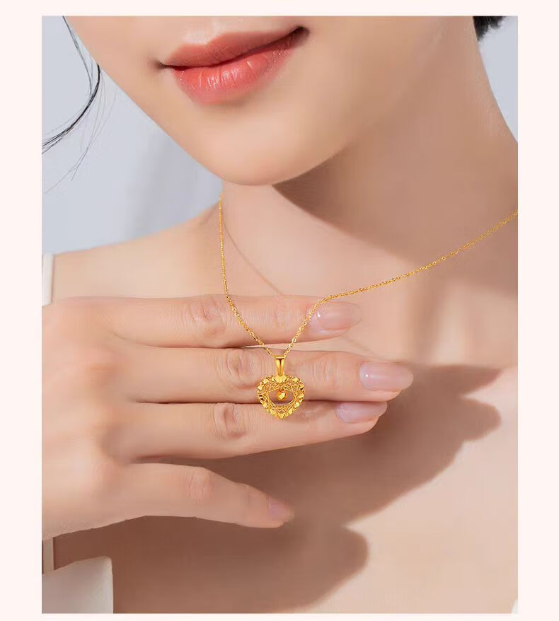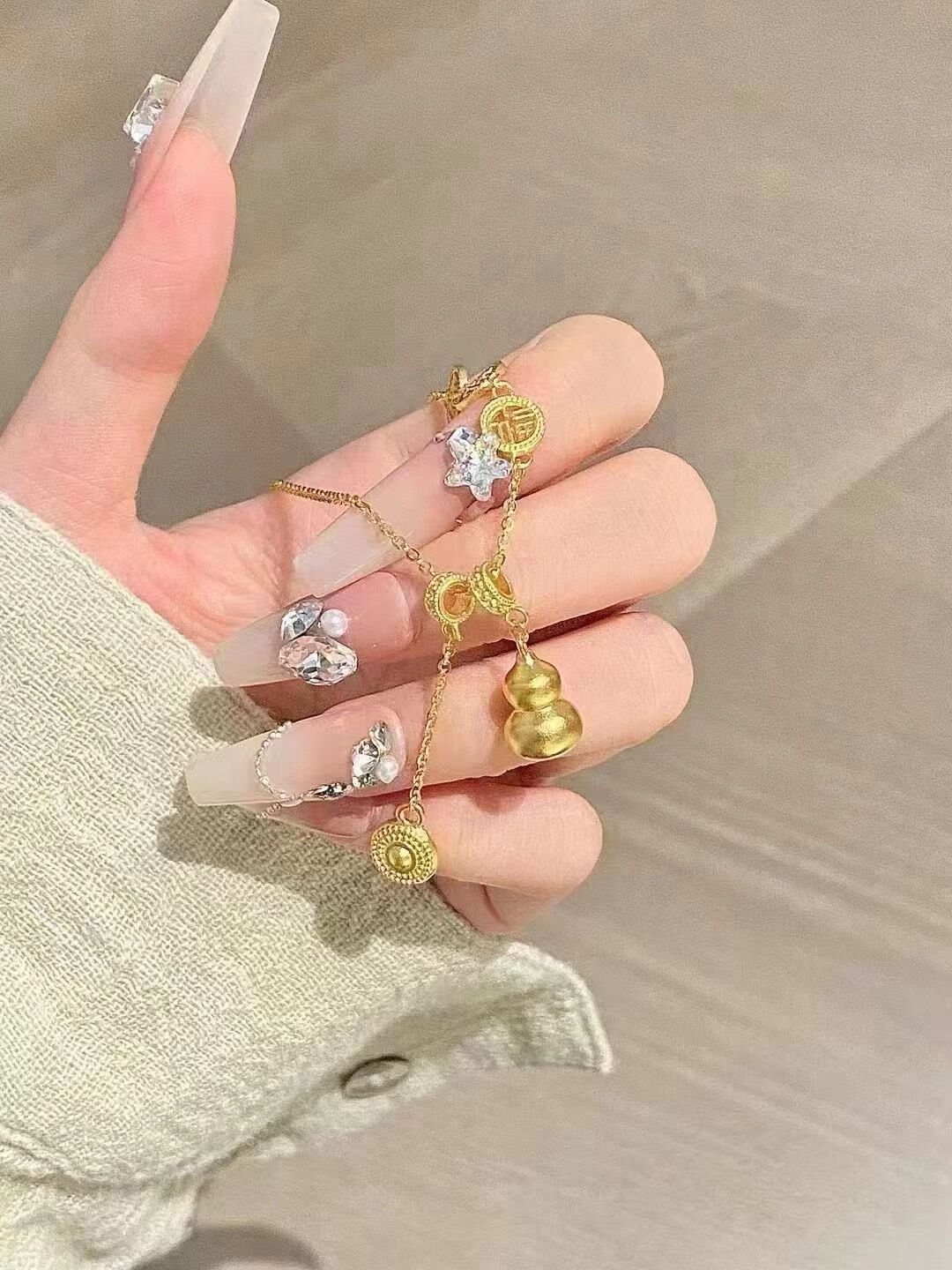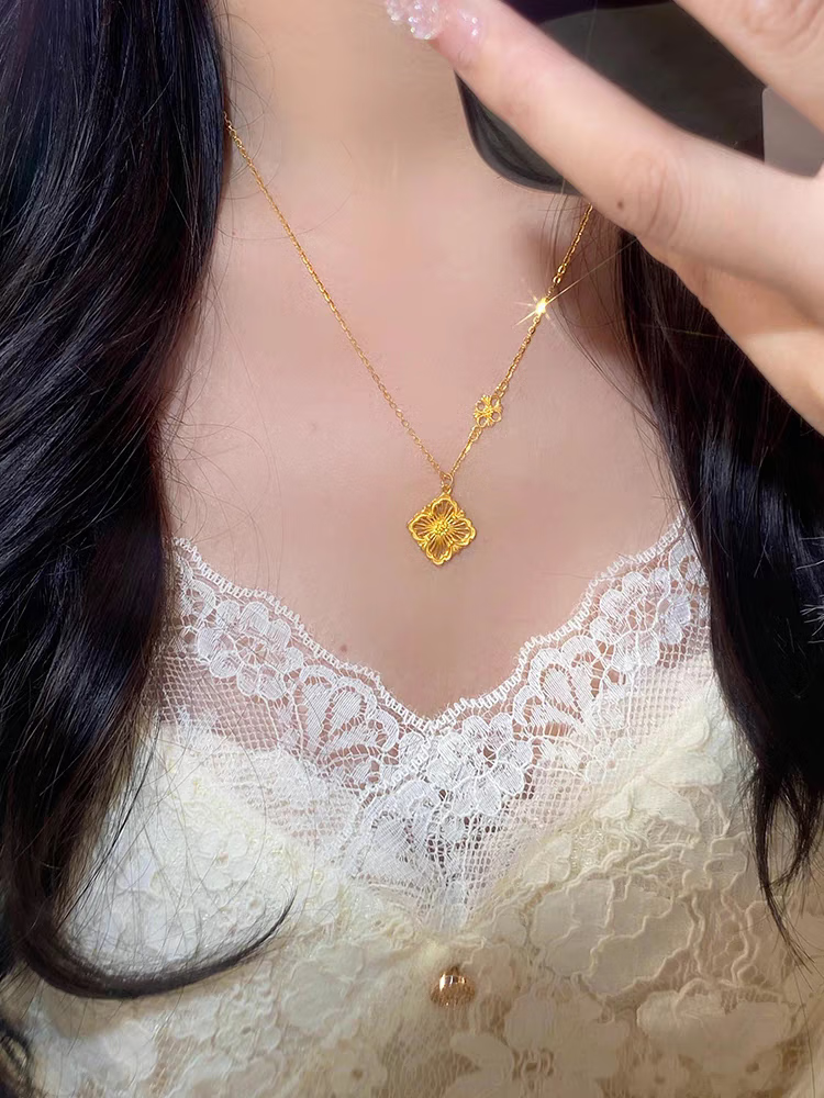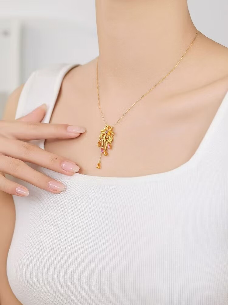 Red Shadow Gold Necklace Women's 18k Color Gold Plated Clavicle Chain 2025 New Gold Plated Gourd Pendant Girlfriend Romantic Lifelong Rose Necklace