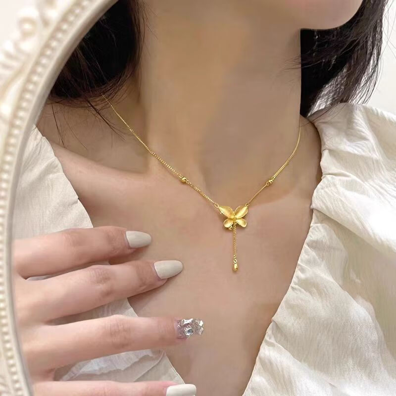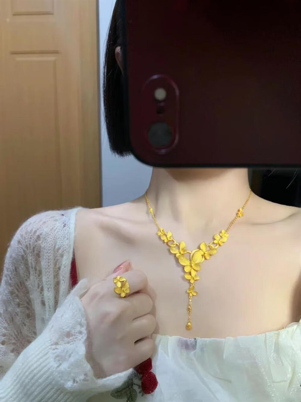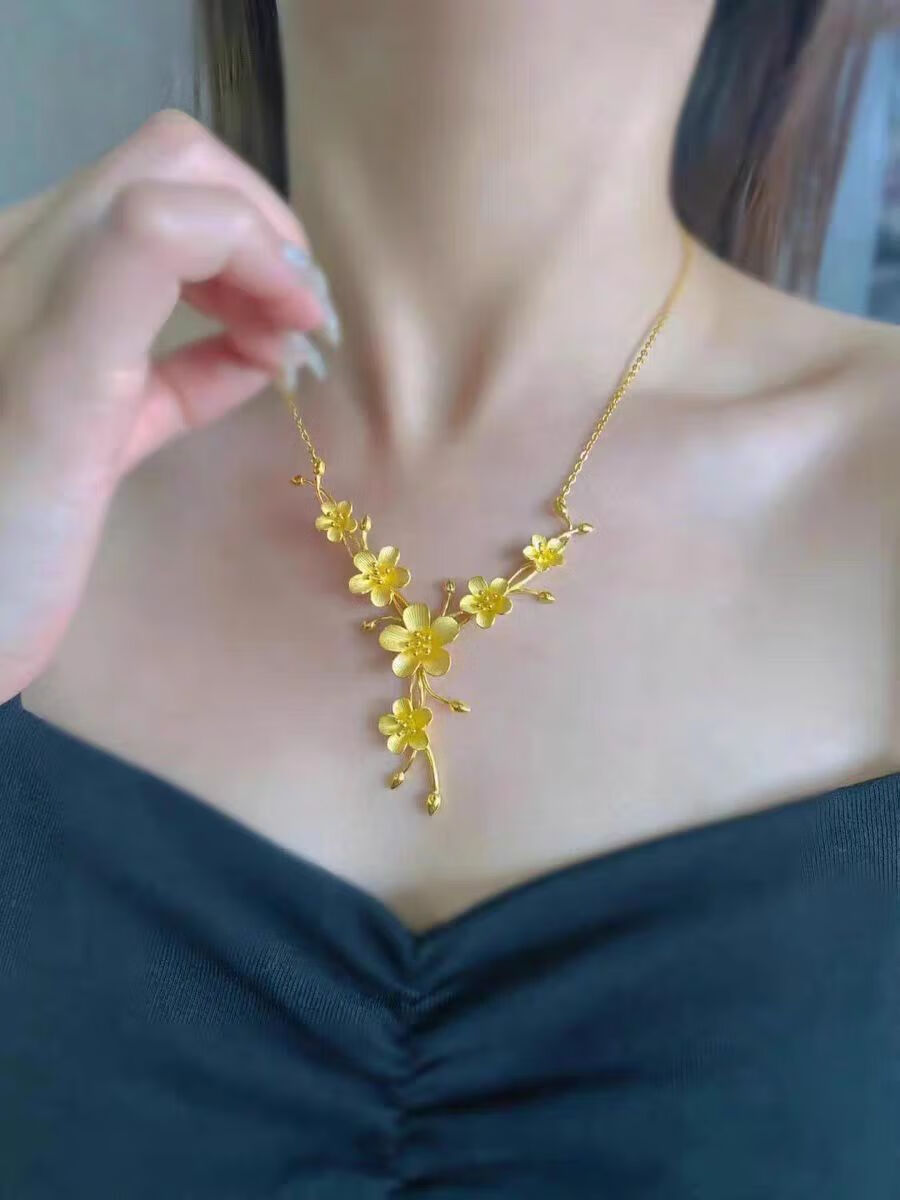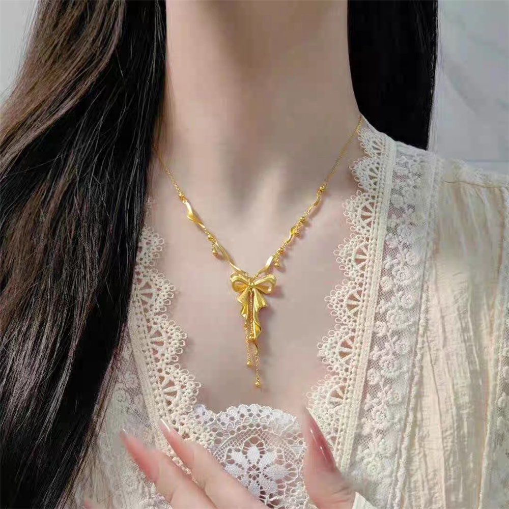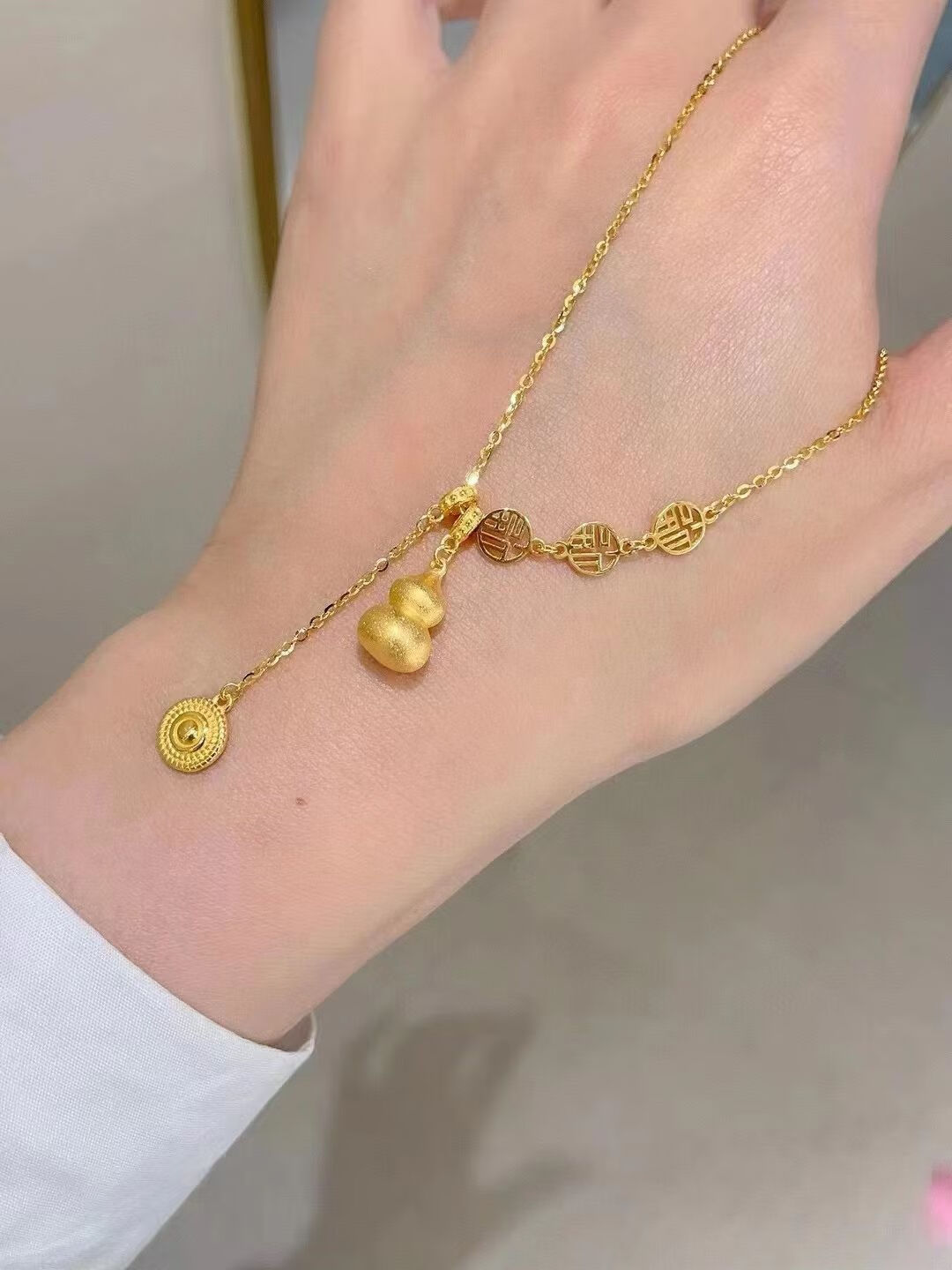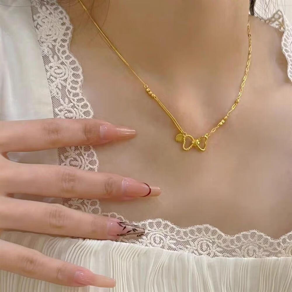 Red Shadow Gold Necklace Women's 18k Color Gold Plated Clavicle Chain 2025 New Gold Plated Gourd Pendant Girlfriend Romantic Lifelong Rose Necklace
