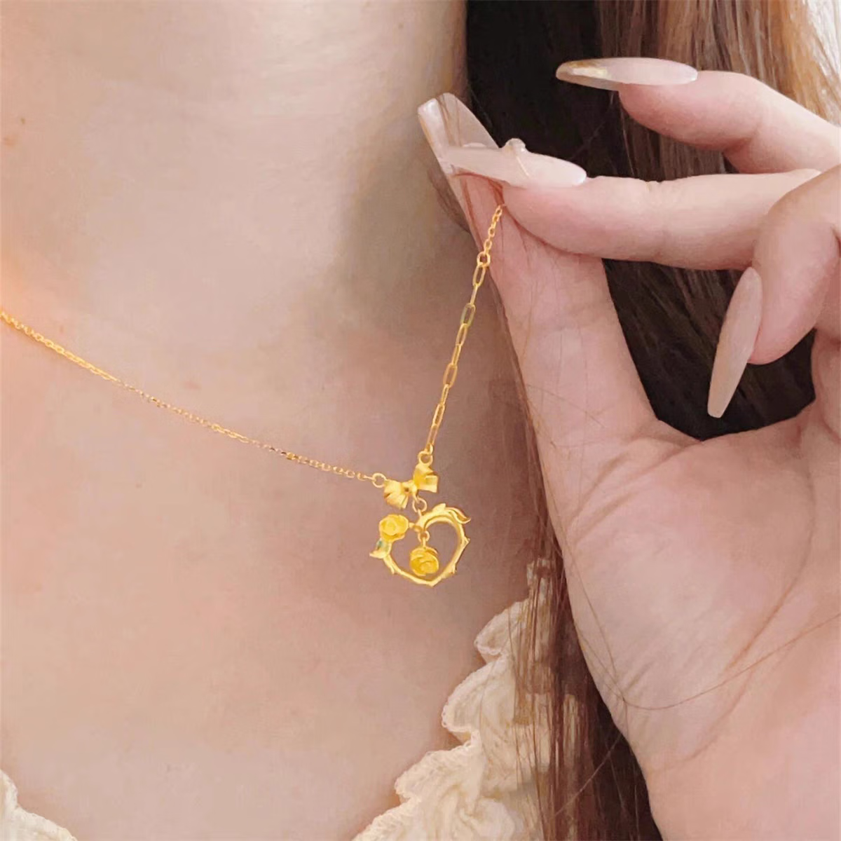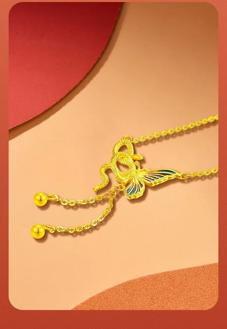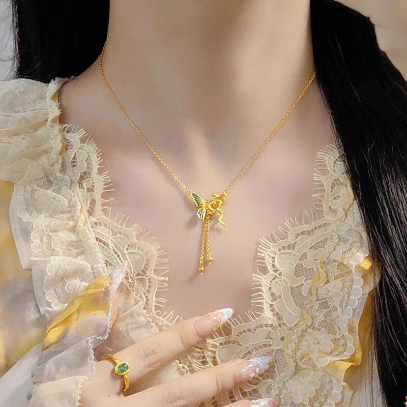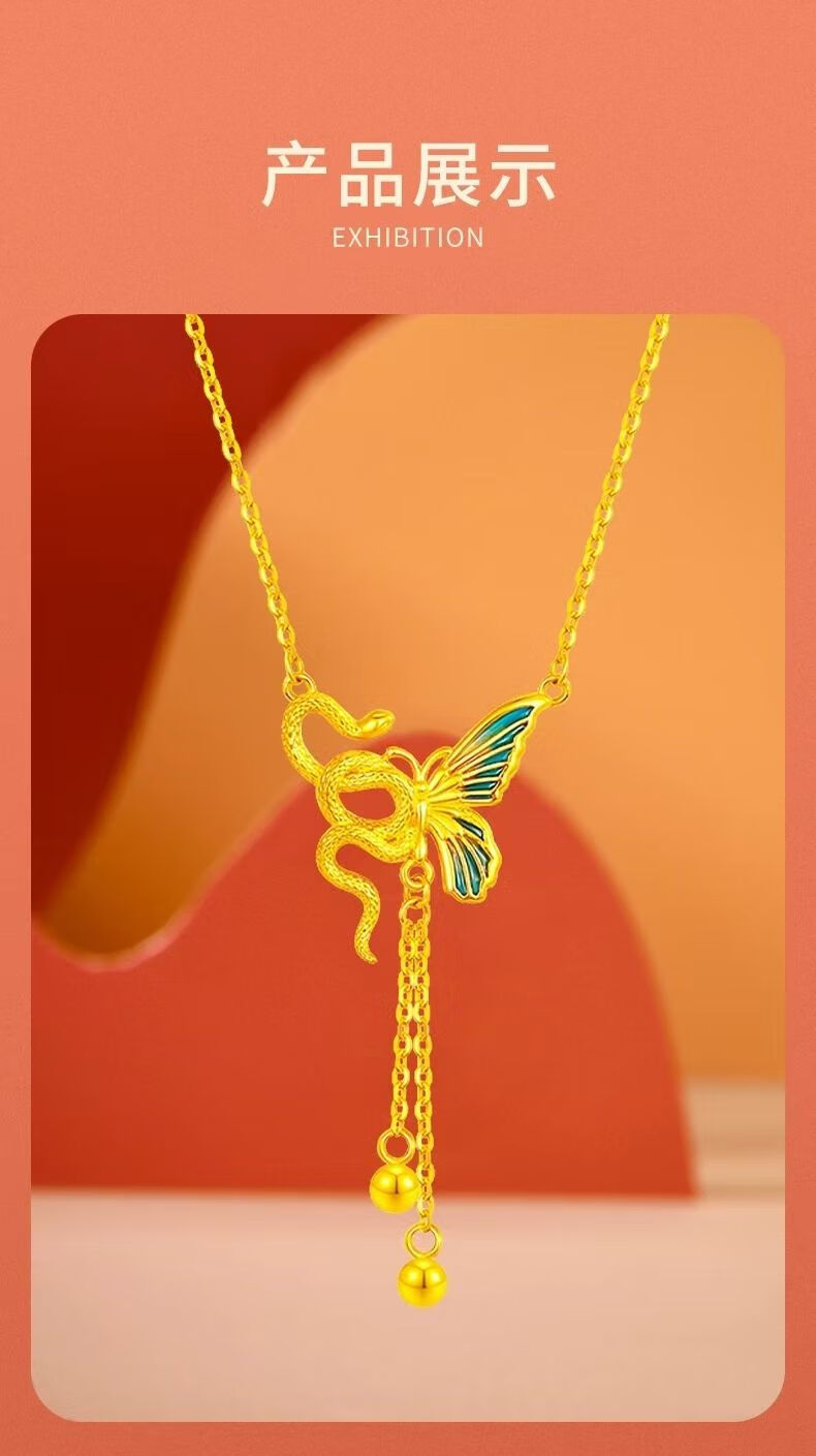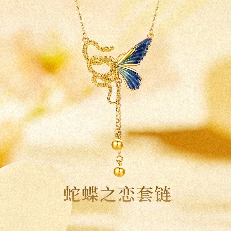 Red Shadow Gold Butterfly and Snake Necklace for Women Sand Gold Pendant 2025 New Ladies High-end Clavicle Chain for Girlfriend Summer Butterfly and Snake Love Necklace S