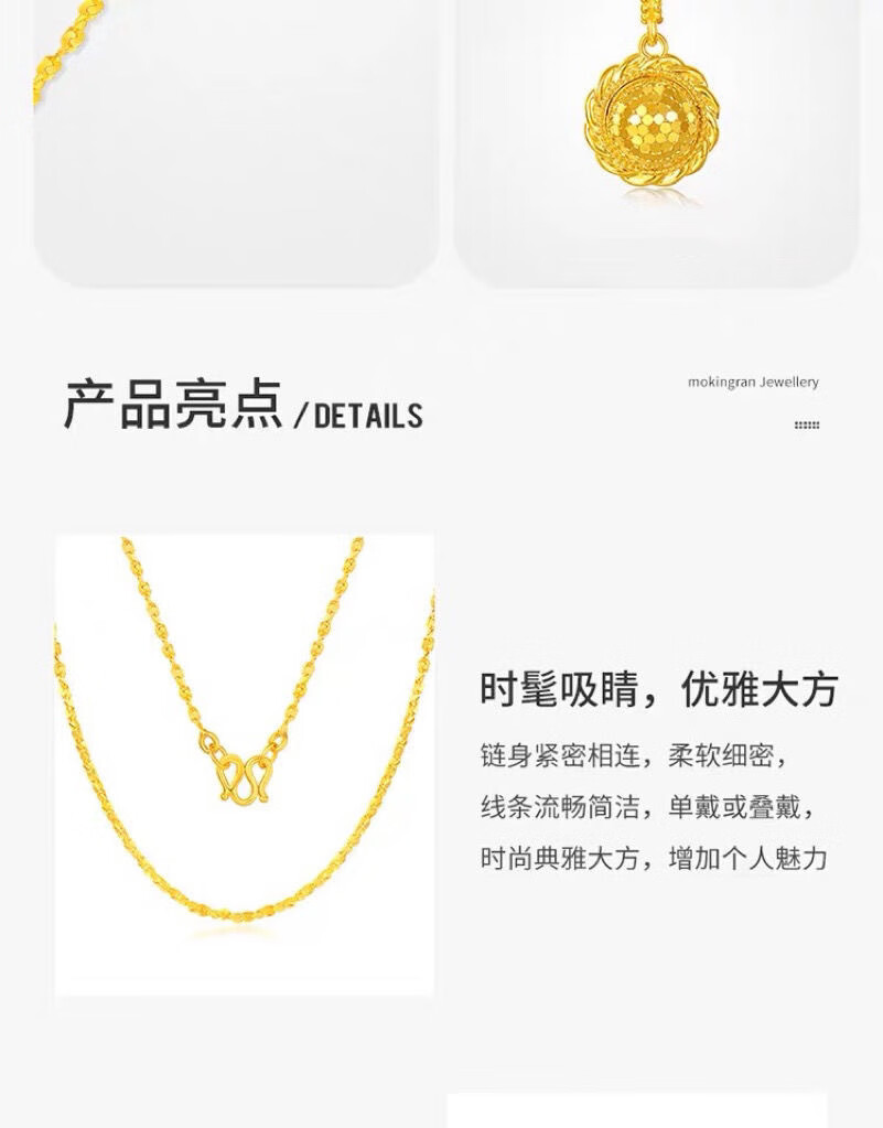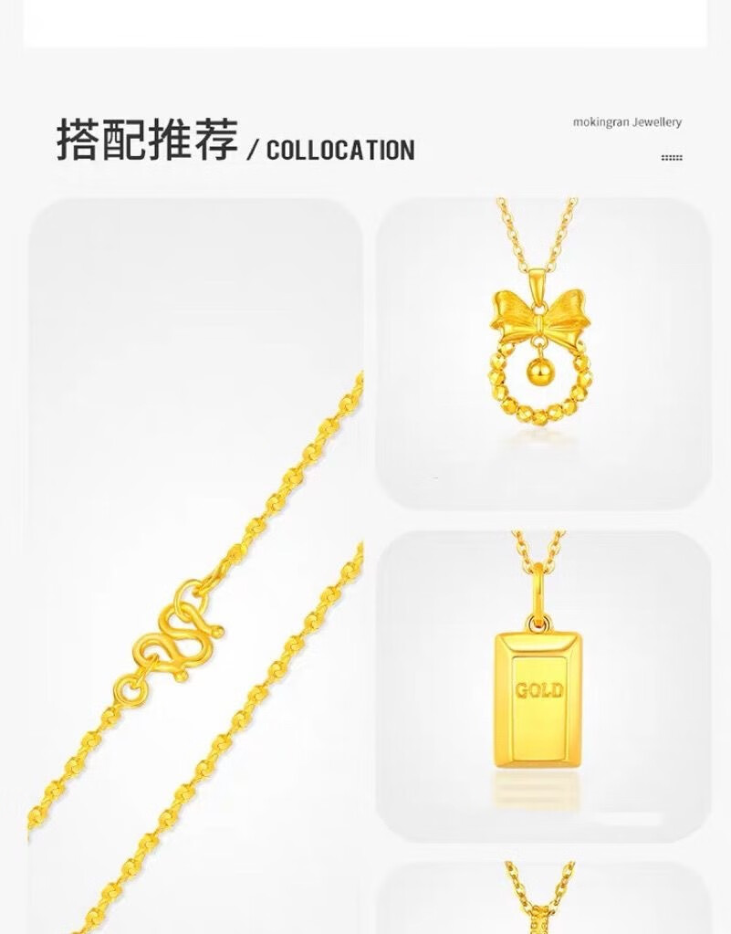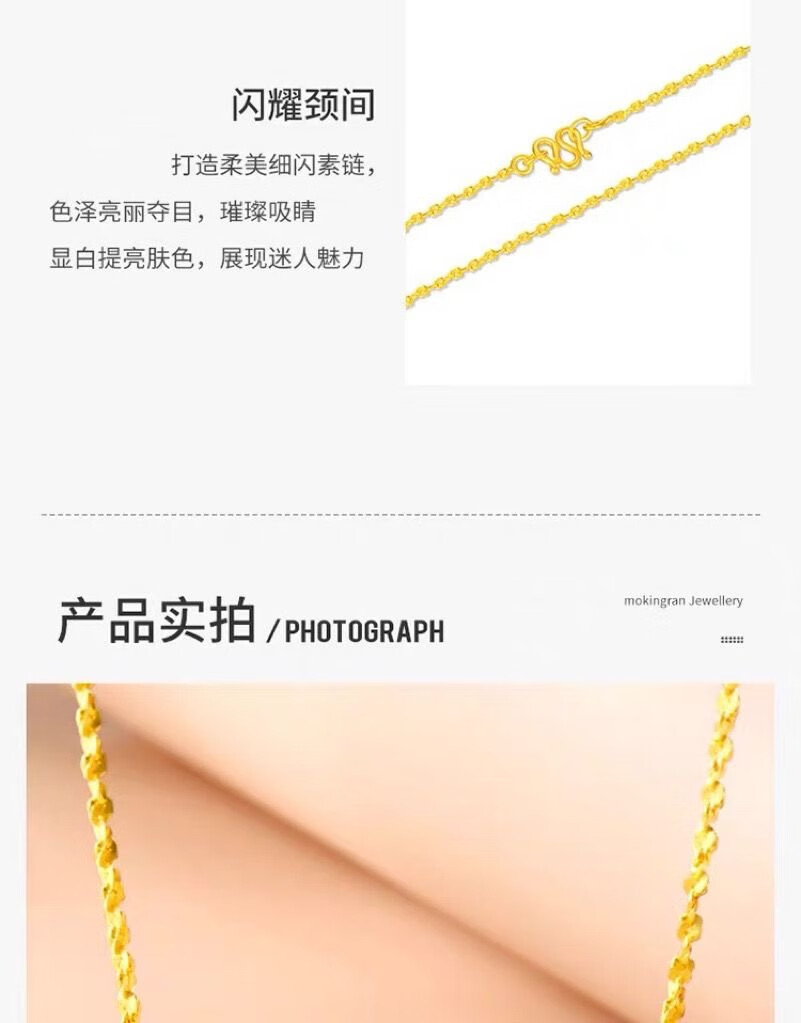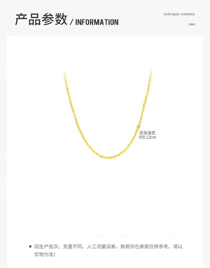 Wanmu gold necklace new style 999 pure gold baby's breath chain sparkling fine gold-plated necklace women's clavicle chain baby's breath necklace 4.52g