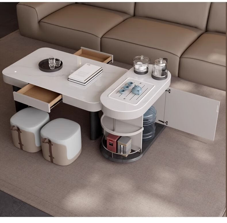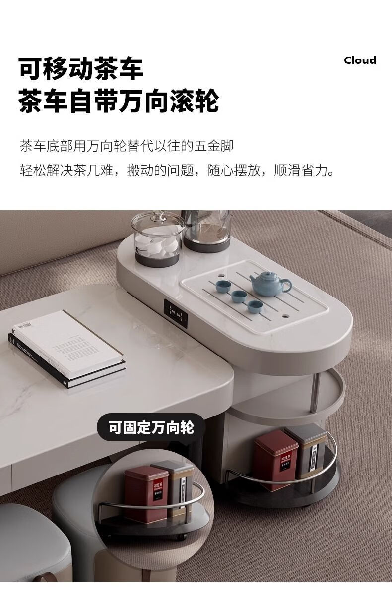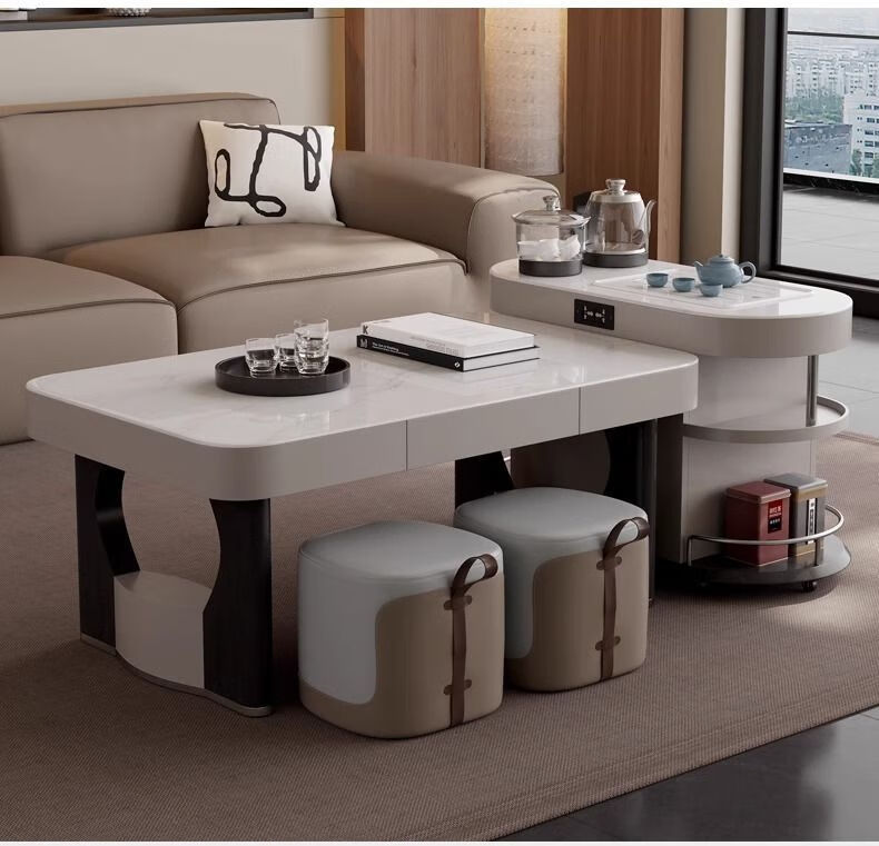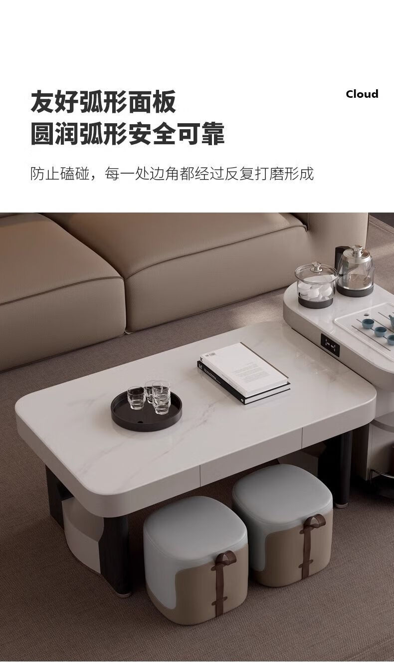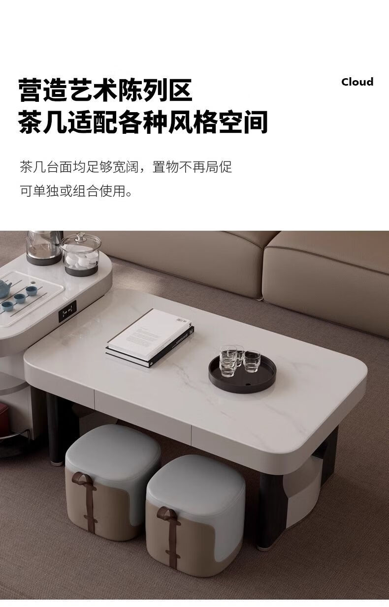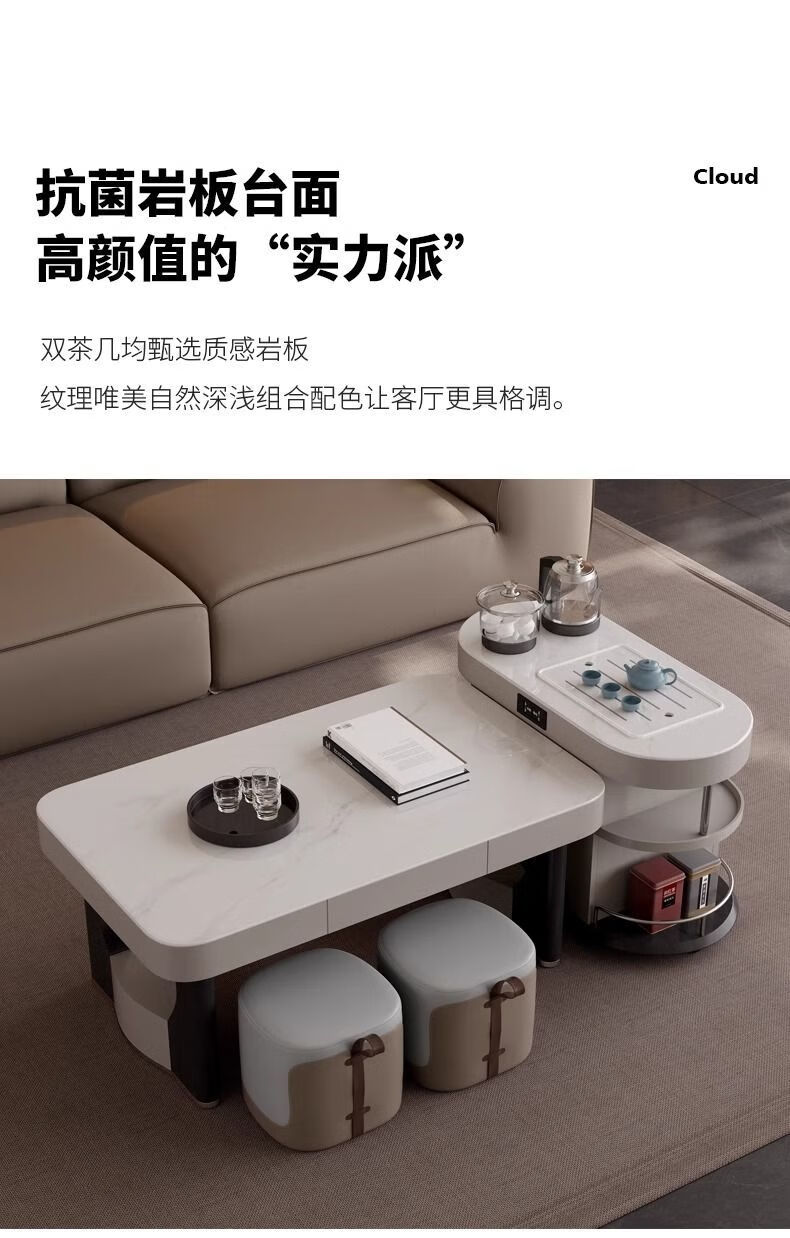 Yijing style multifunctional microcrystalline stone retractable kungfu coffee table modern living room household high-end kettle integrated tea table multifunctional kungfu coffee table with socket comes with kettle + purified water bucket + waste water bucket + 2 stools