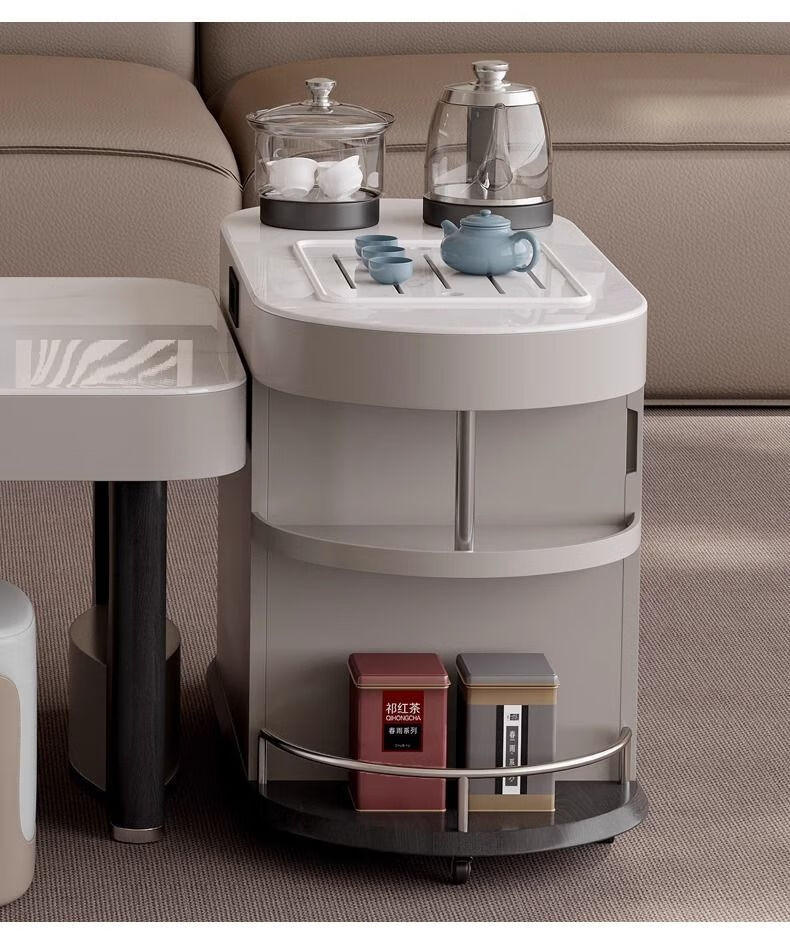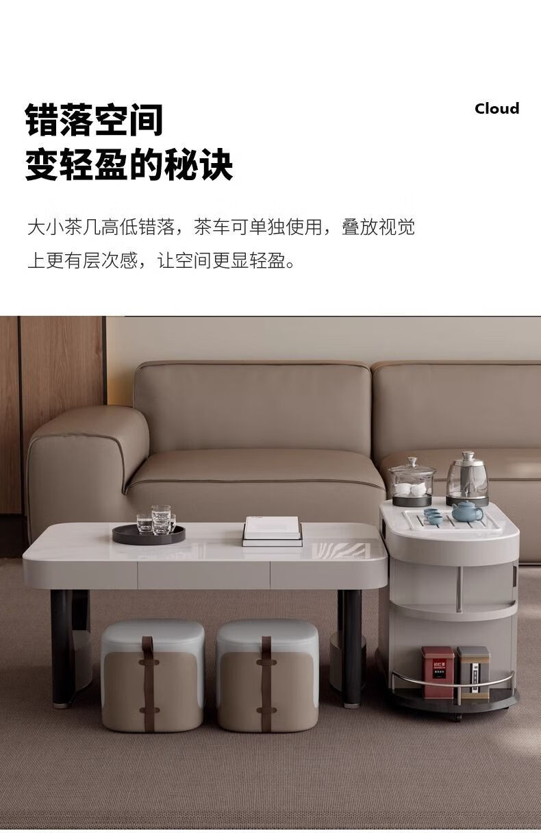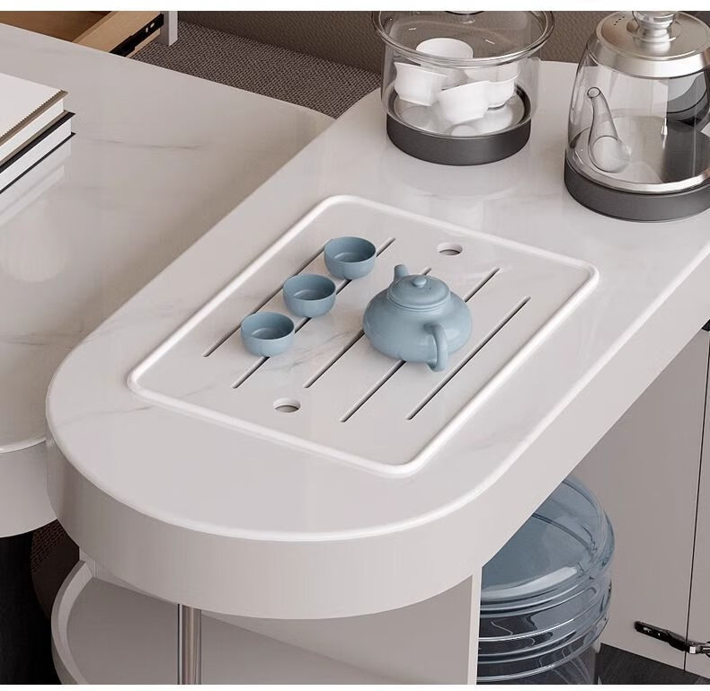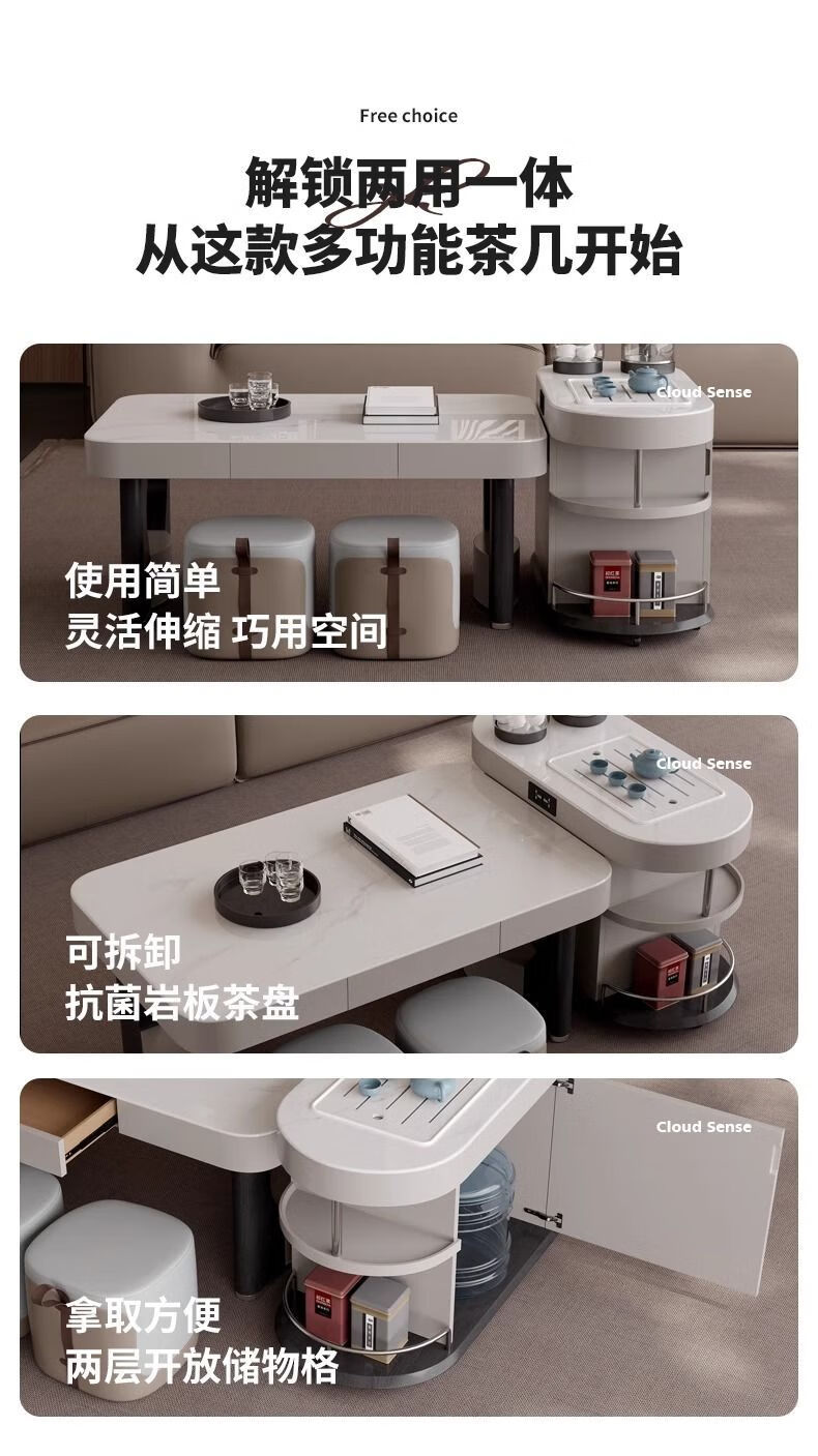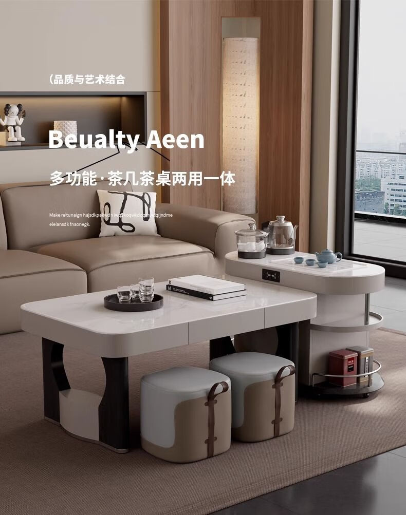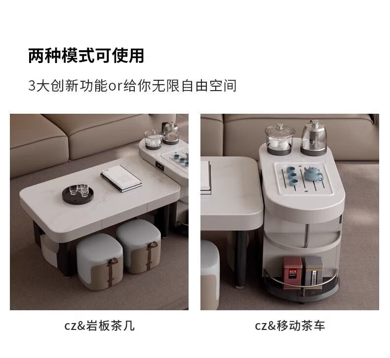 Yijing style multifunctional microcrystalline stone retractable kungfu coffee table modern living room household high-end kettle integrated tea table multifunctional kungfu coffee table with socket comes with kettle + purified water bucket + waste water bucket + 2 stools