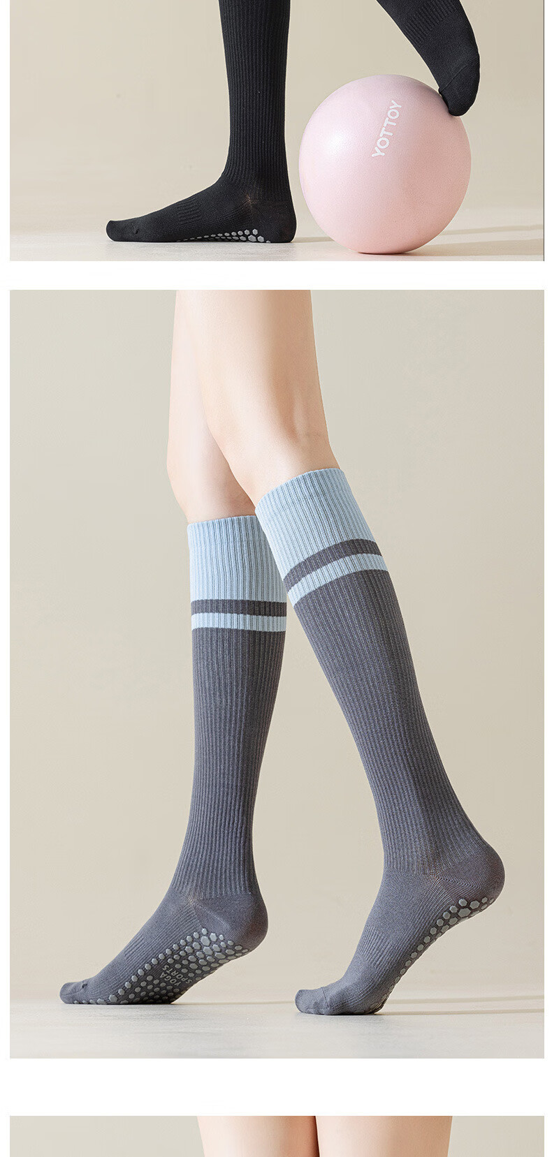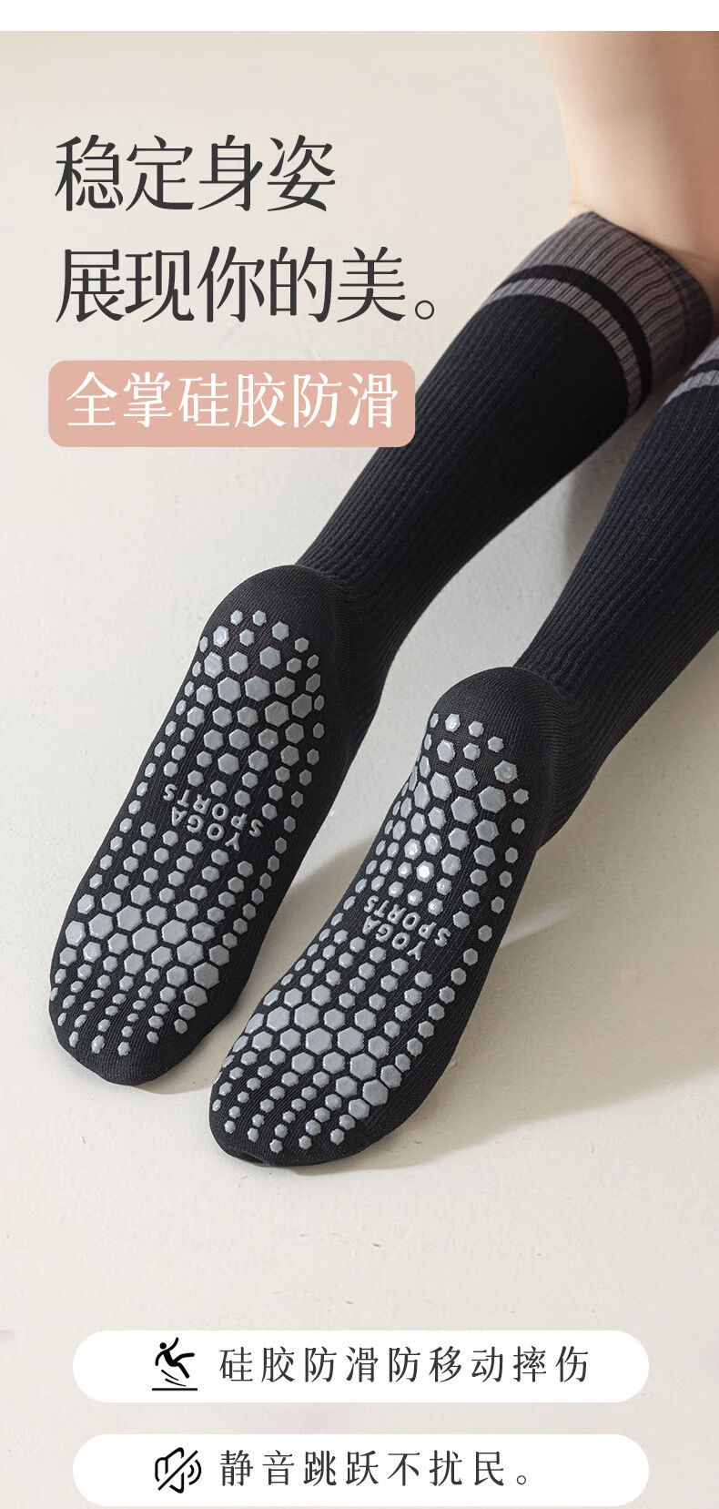 Ruiqe Yoga Socks Summer Thin Non-Slip Mid-Tube Professional Pressure Calf Pilates Summer Jump Rope Running Sports Fitness Yoga Socks Black 1 Pair One Size