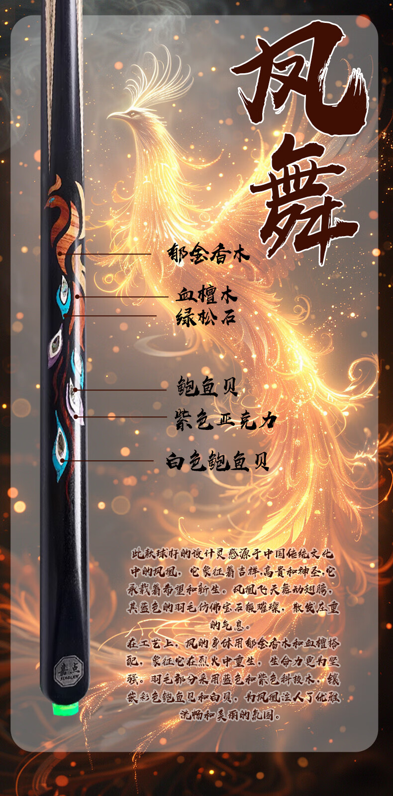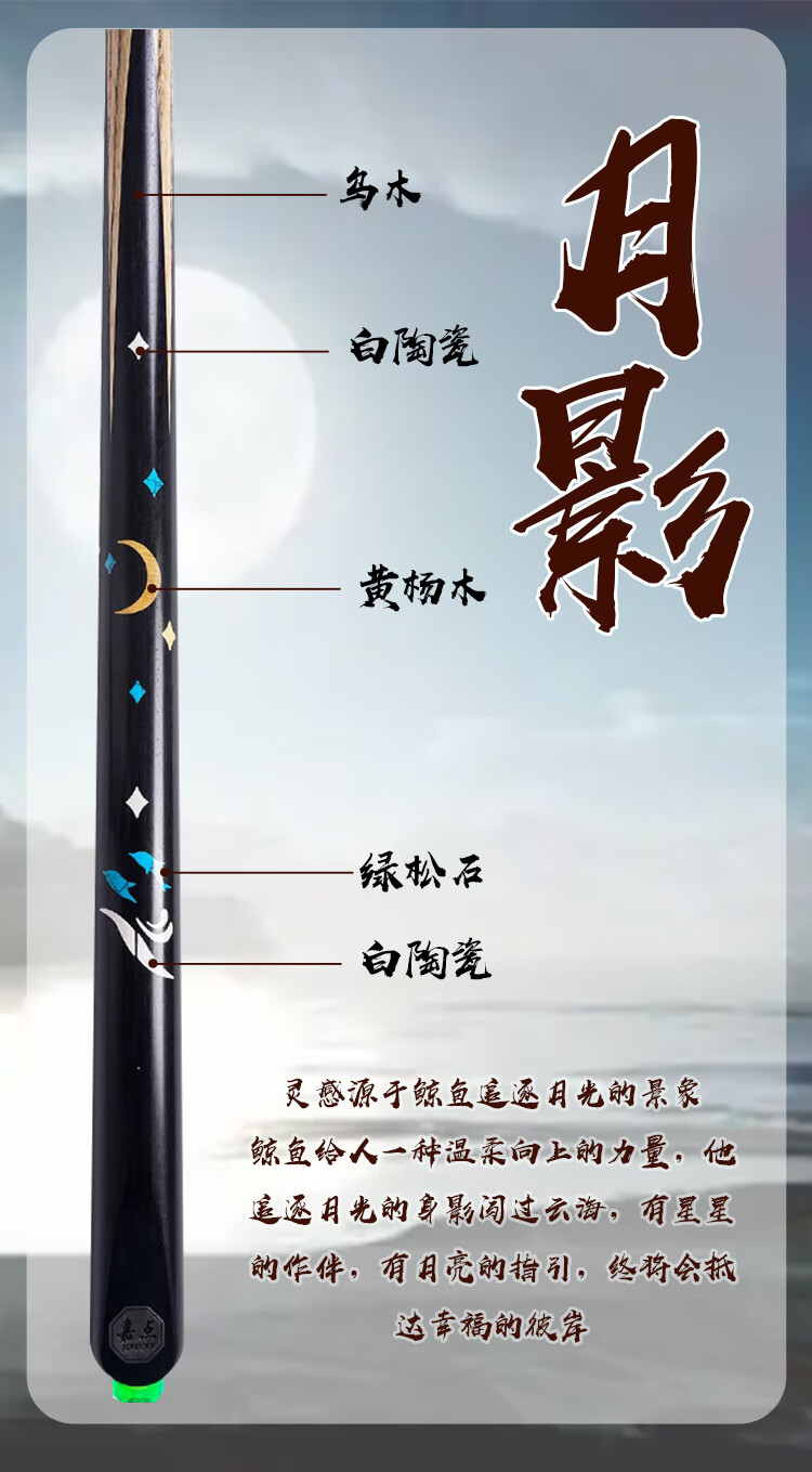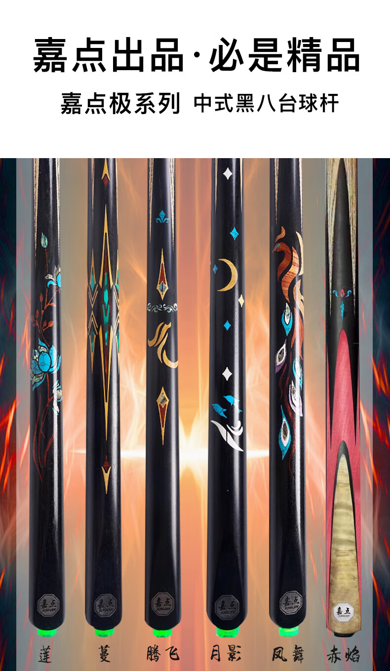 Jiadian Moon Shadow Phoenix Dances Soaring Lotus Mannequin Billiard Cue Small Head Chinese Nine-Ball and Eight-Ball One-Piece Billiard Cue pole series Jiadian Tengfei Aluminum Alloy Rod Box