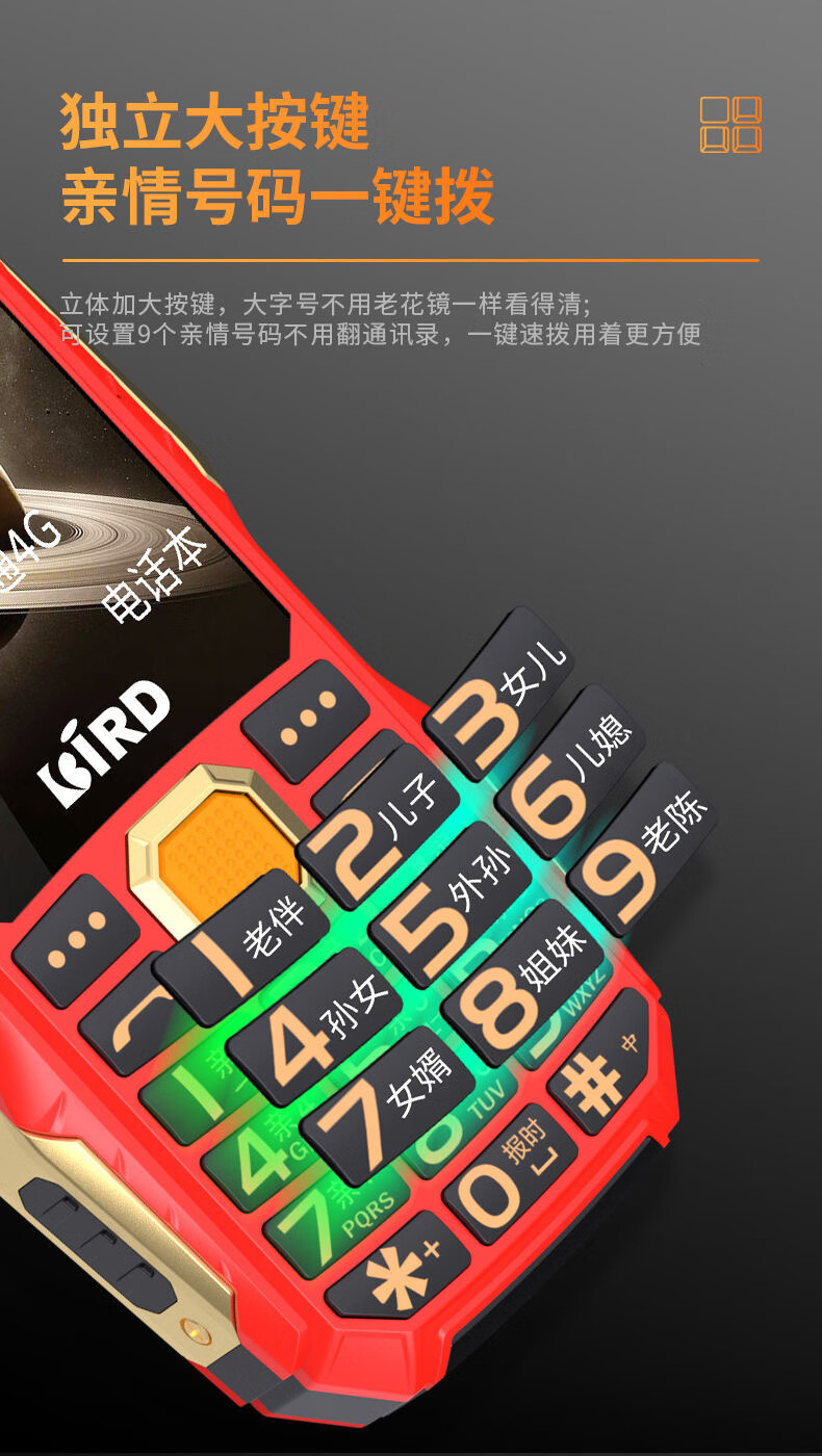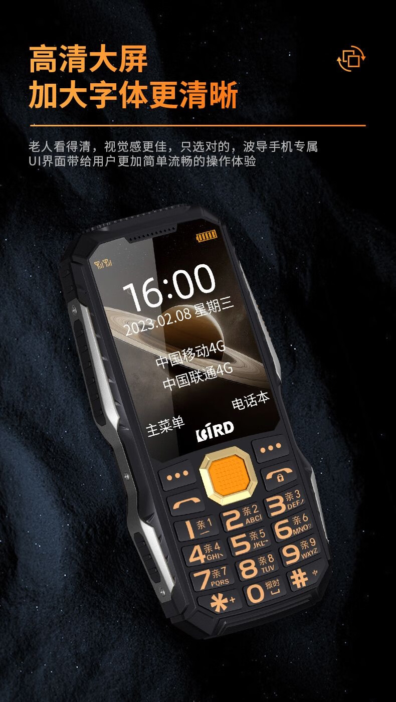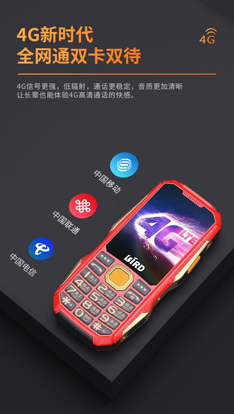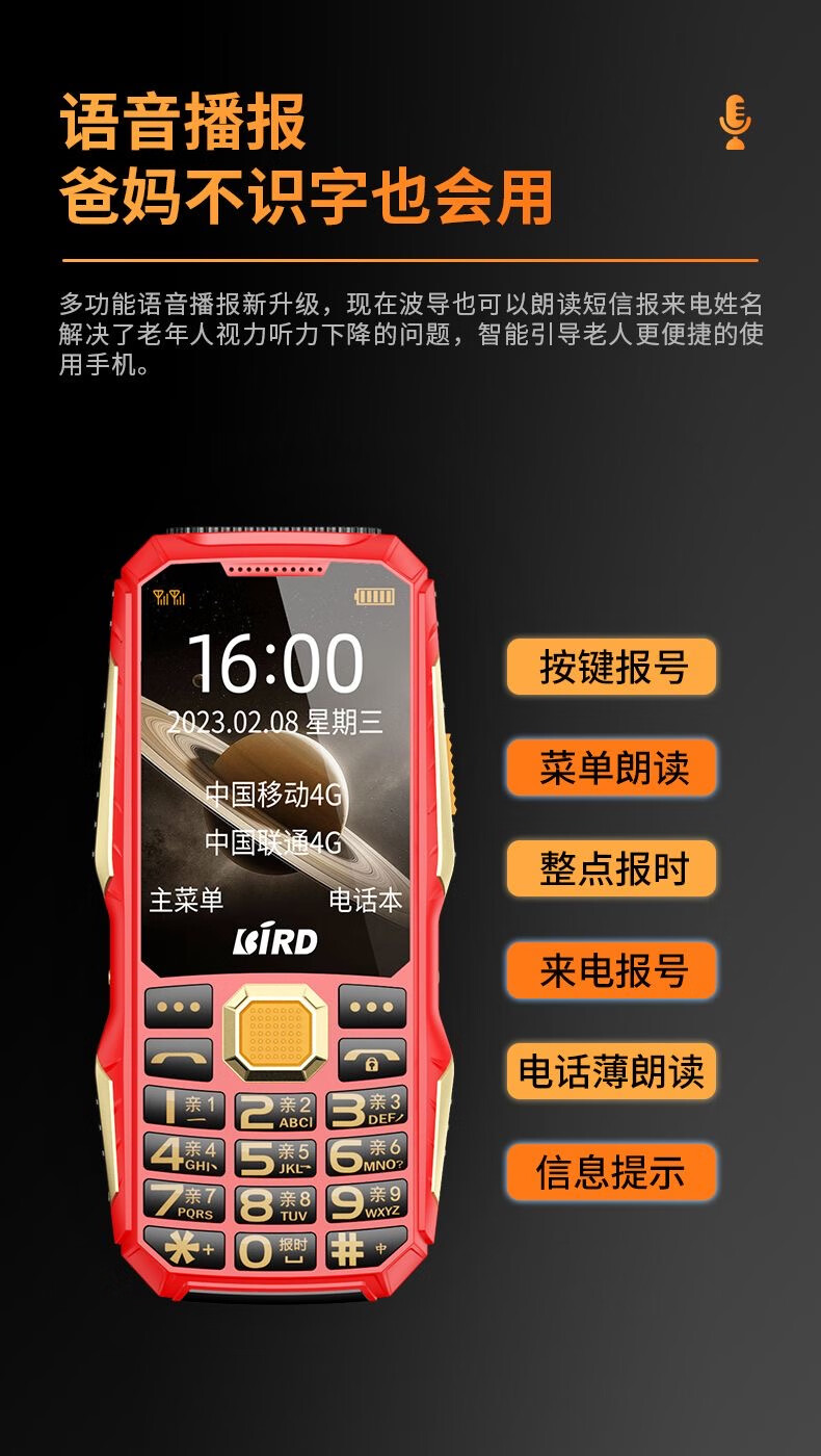 Bird (BiRD) 4G full network three-proof mobile phone for the elderly suitable for 5G card anti-fall and durable elderly phone super long standby large volume large font waterproof anti-fall anti-stranger phone function phone black