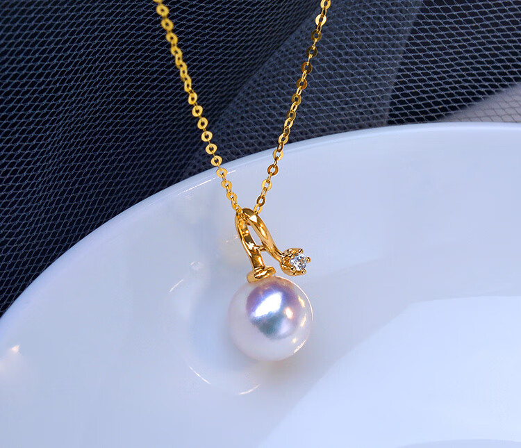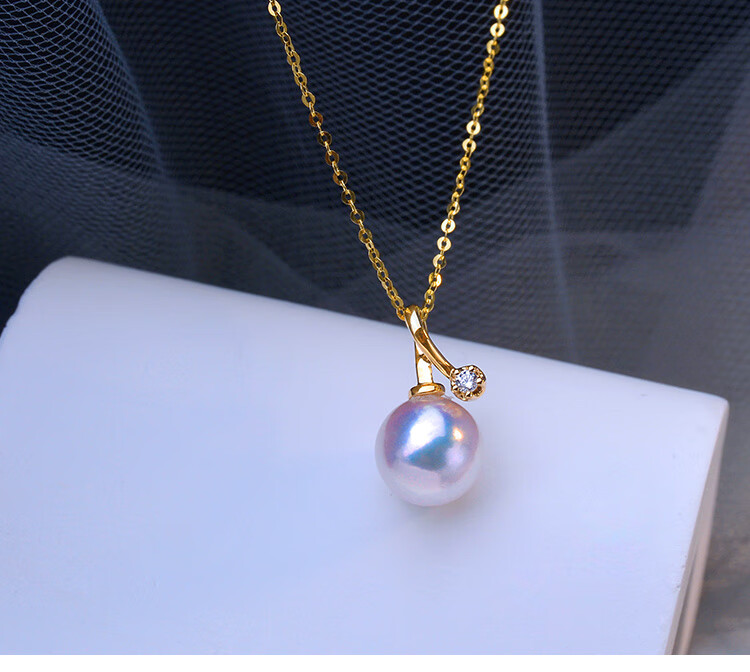 DR GRAFFCARNY natural Japanese akoya freshwater pearl pendant 18K flower bead goddess necklace clavicle chain gift 18K diamond goddess grade 7.5-8mm