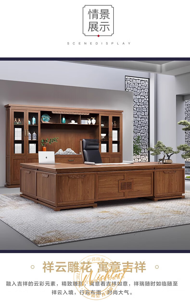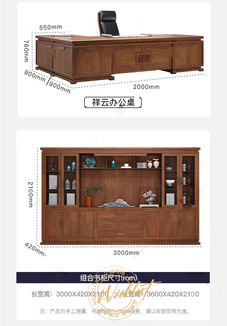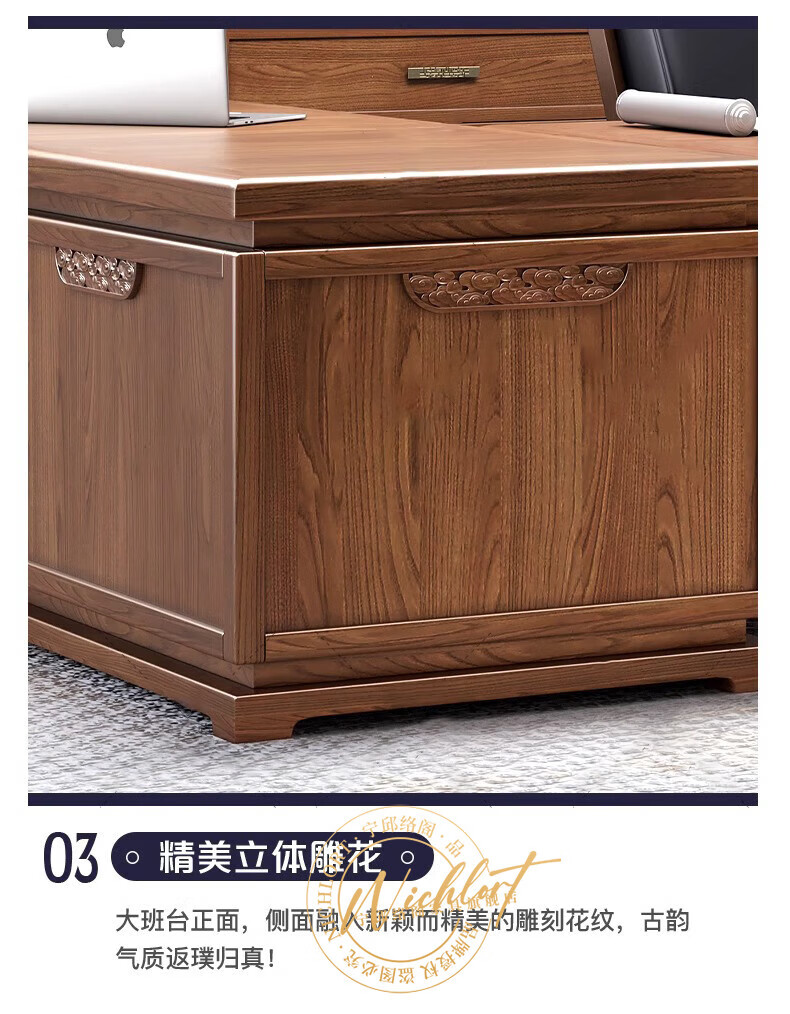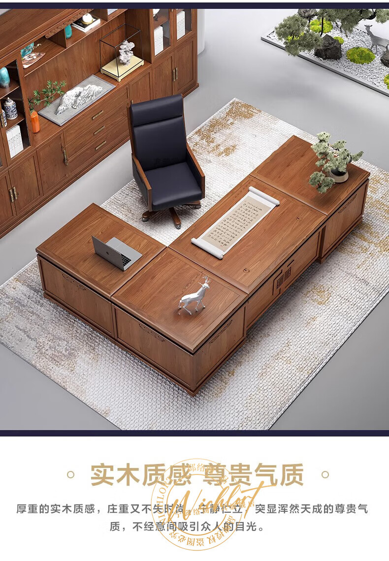 Ningqiu Luoge (NICHLORT) new Chinese style boss desk and chair combination solid wood president desk bookcase high-end office chairman executive desk 3.2 meters desk