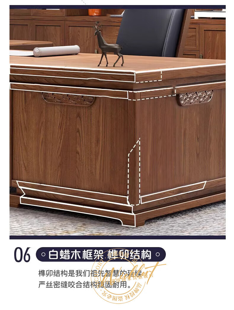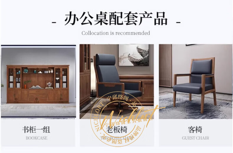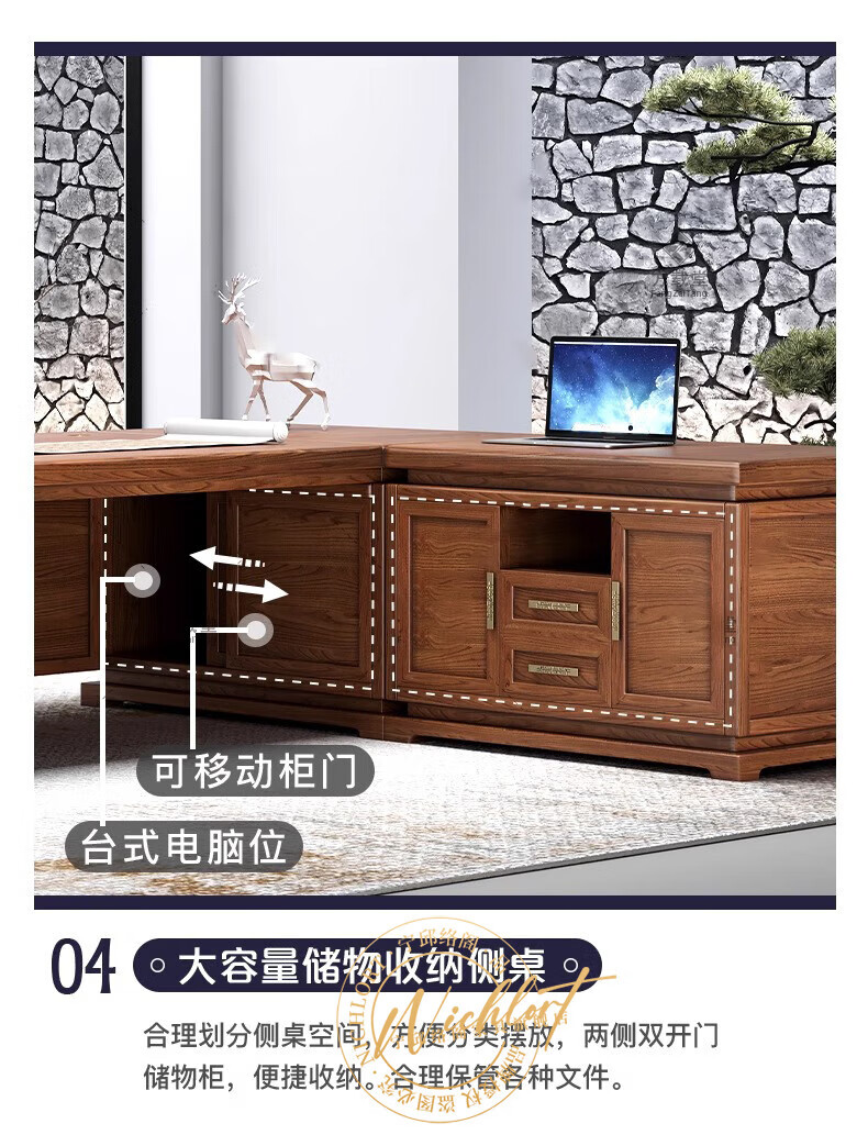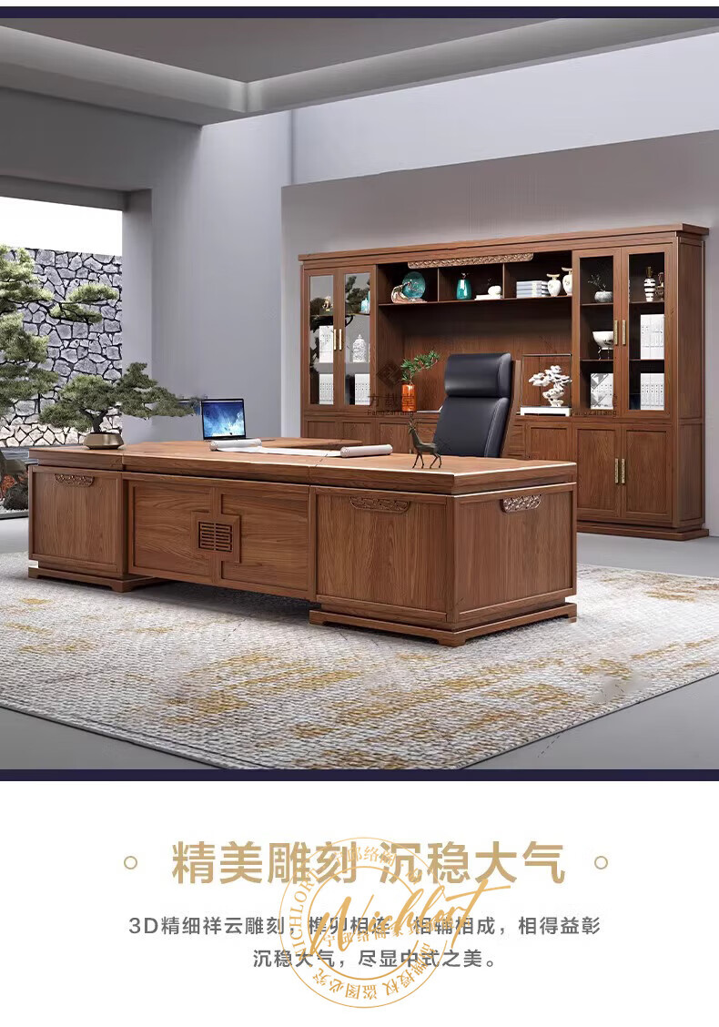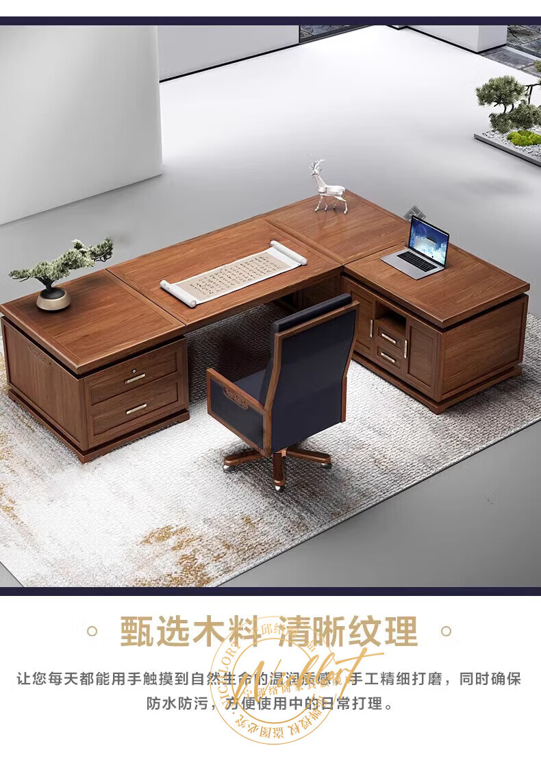 Ningqiu Luoge (NICHLORT) new Chinese style boss desk and chair combination solid wood president desk bookcase high-end office chairman executive desk 3.2 meters desk