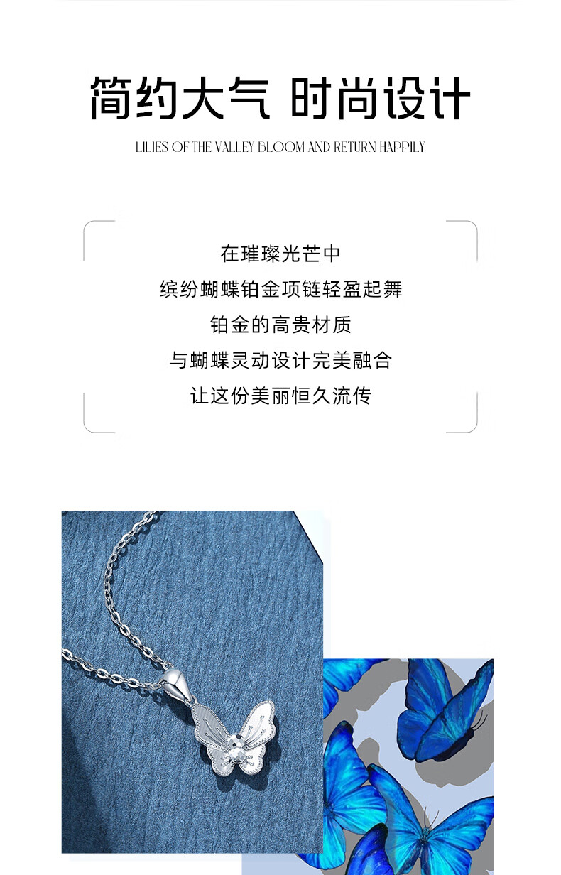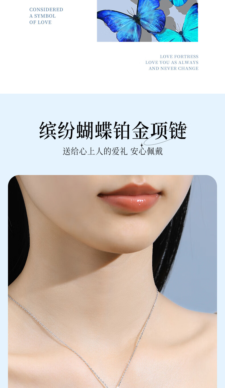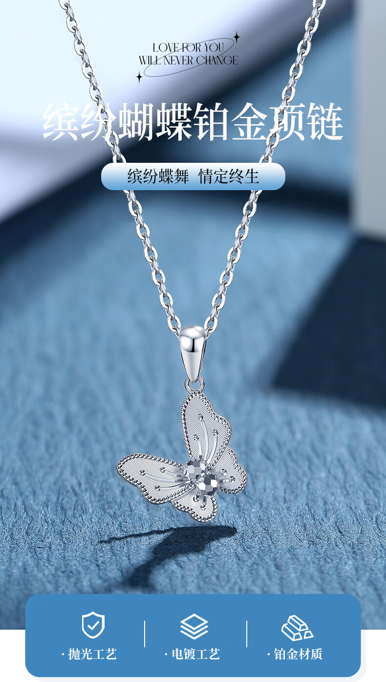 CHINA GOLD Colorful Butterfly PT950 Platinum Necklace for Women Platinum Pendant Birthday Gift for Girlfriend and Wife Pendant*Platinum Weight Approximately 1.4g Free Silver Chain