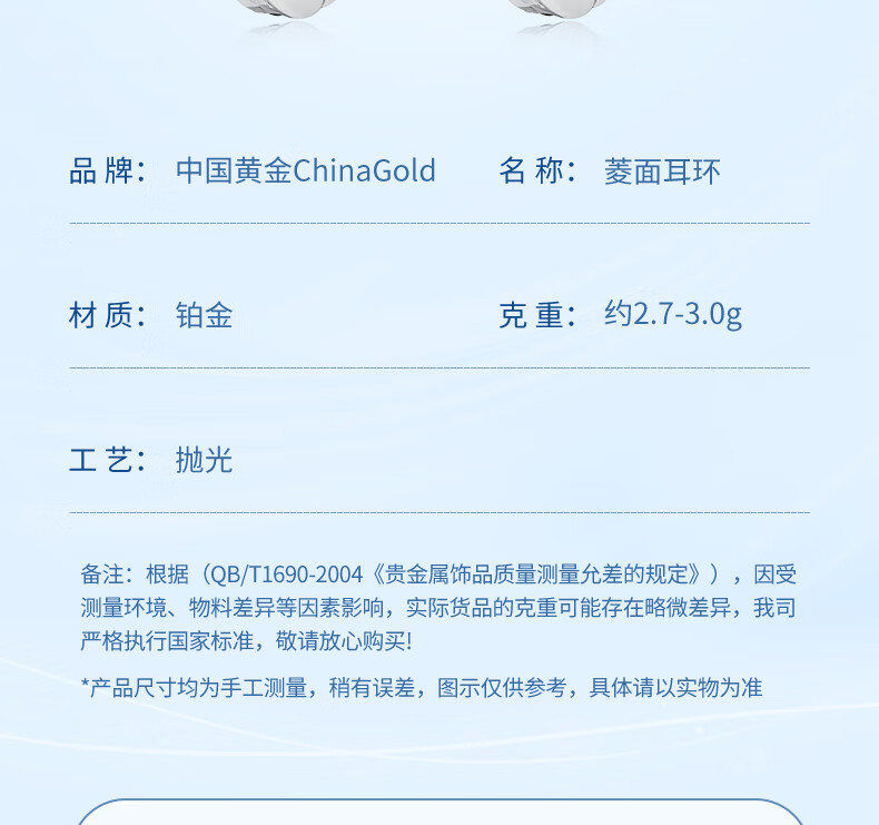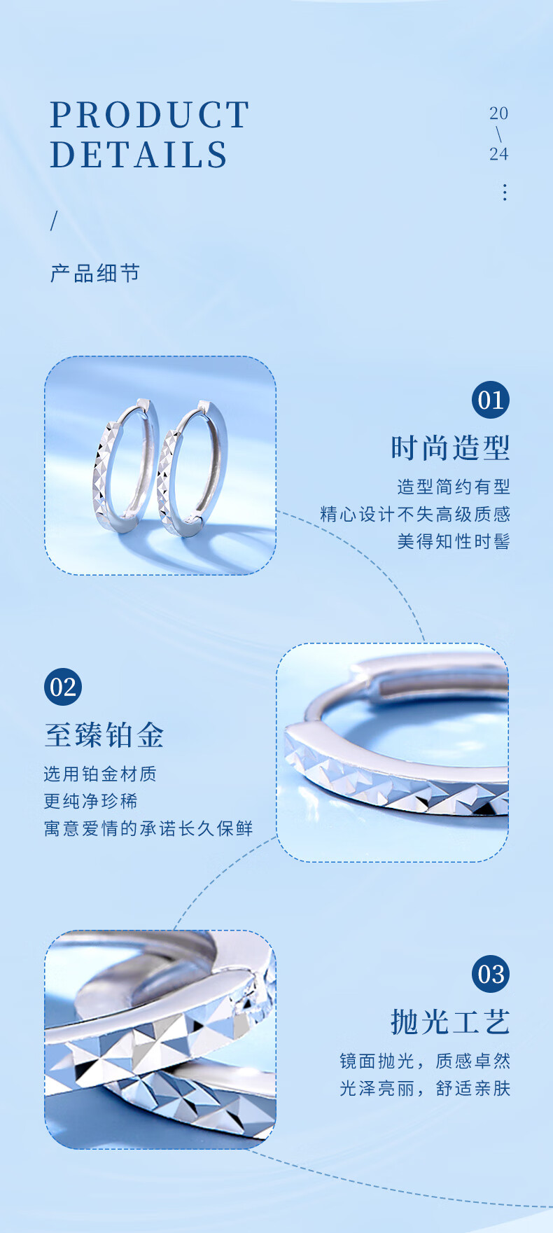 CHINA GOLD PT950 platinum hoop earrings plain hoop earrings for women new Valentine's Day birthday gift for girlfriend and wife Platinum hoop earrings about 2.7g