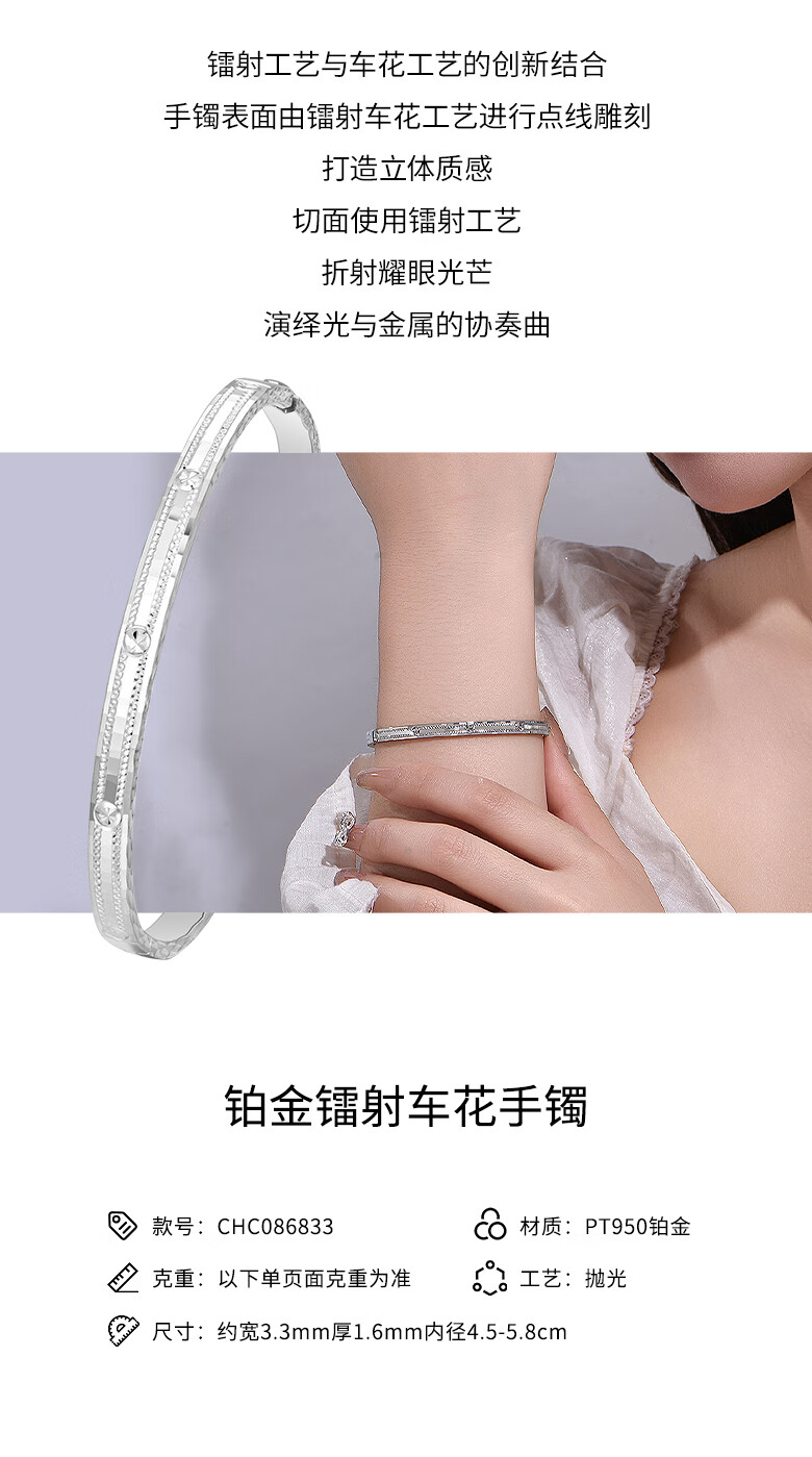 Cuihua Platinum Bracelet Birthday Gift Valentine's Day Gift Confession Wedding Gift Gift for Girlfriend and Wife Platinum Bracelet (Total Weight Approximately 13g) #54