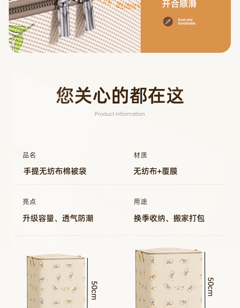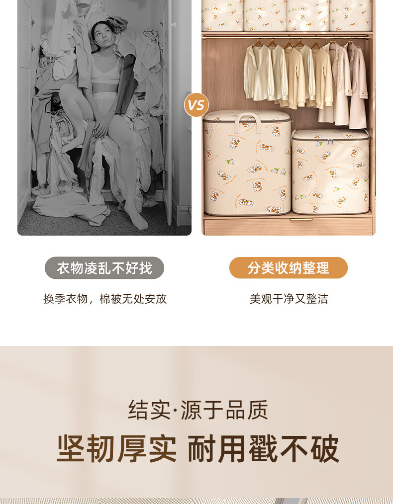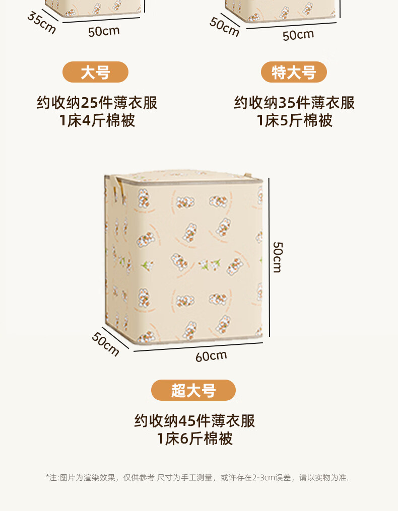 Youna Clothes and Quilts Storage Box Extra Large Capacity Box Wardrobe Storage Artifact Moving and Packing Special Clothing Organizing Bag Extra Large 50*50*60cm