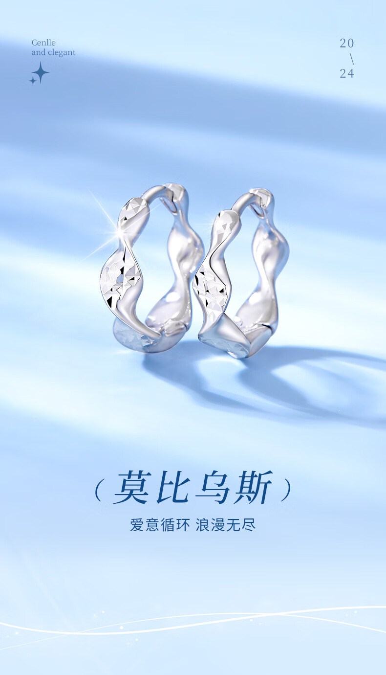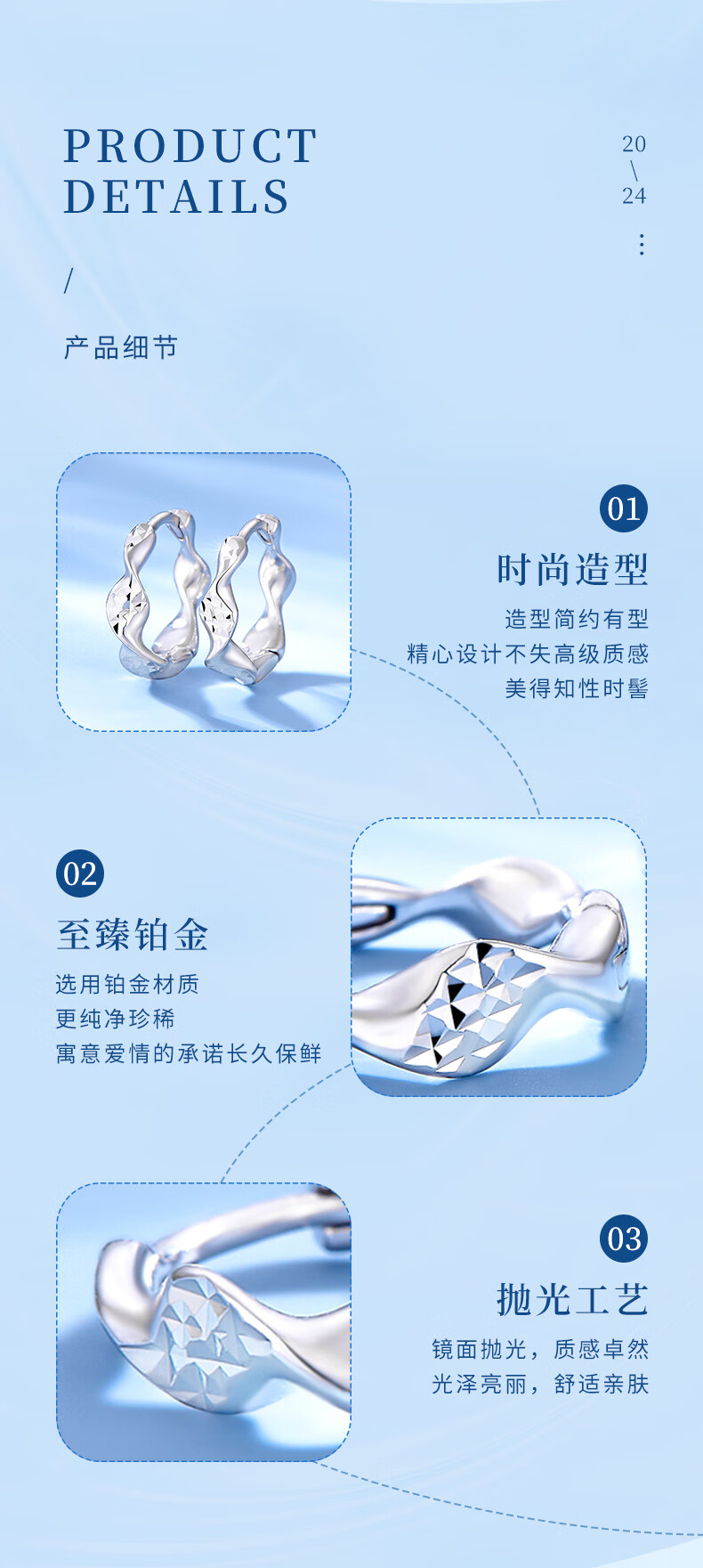 CHINA GOLD PT950 platinum Möbius earrings 2025 new earrings Valentine's Day birthday gift for girlfriend and wife PT950 platinum Möbius earrings about 3.6g