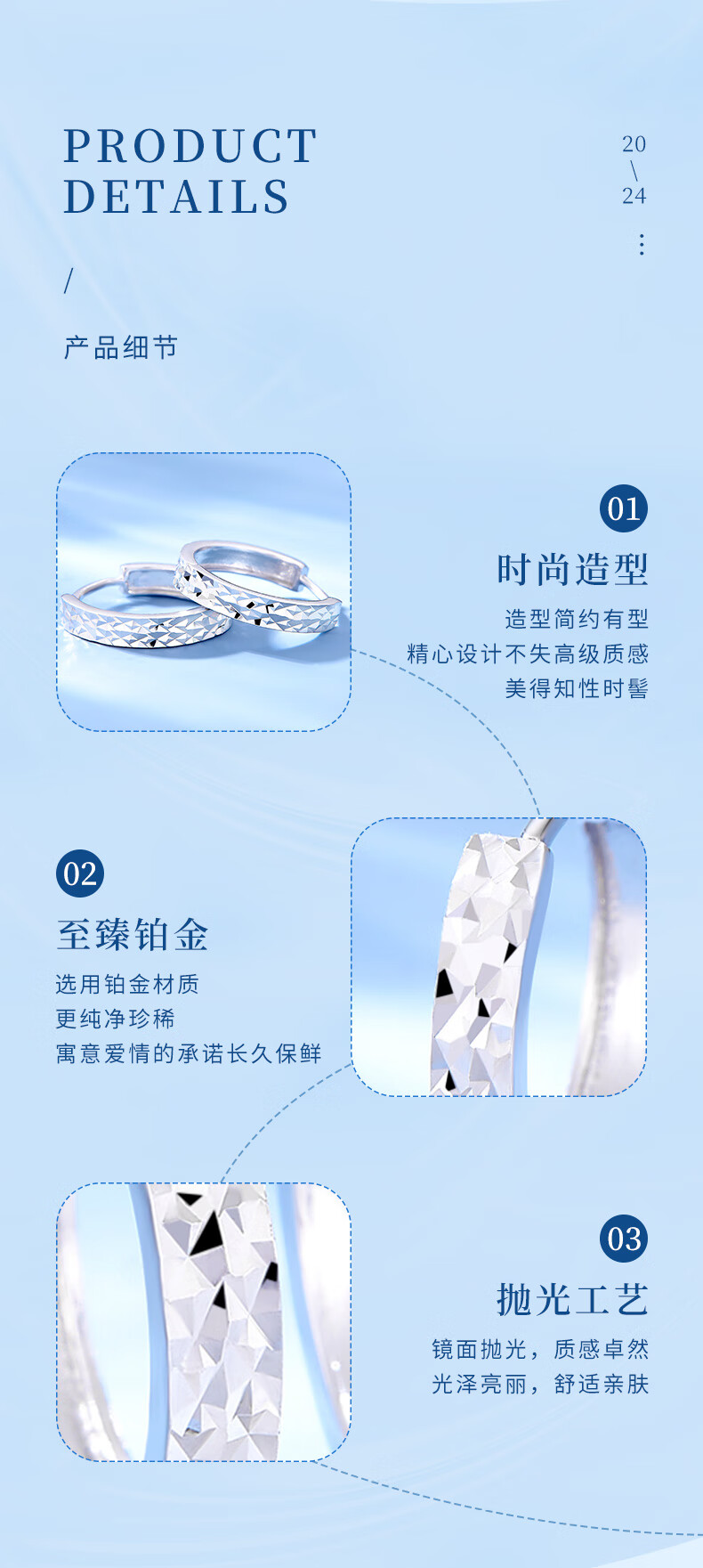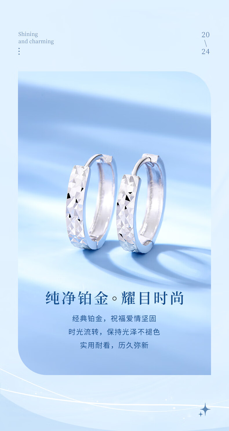 CHINA GOLD PT950 platinum mirror-gloss rhombus earrings, earrings for women, high-end Valentine's Day birthday gifts for girlfriends and wives. Platinum mirror-gloss rhombus earrings, about 2.7g.