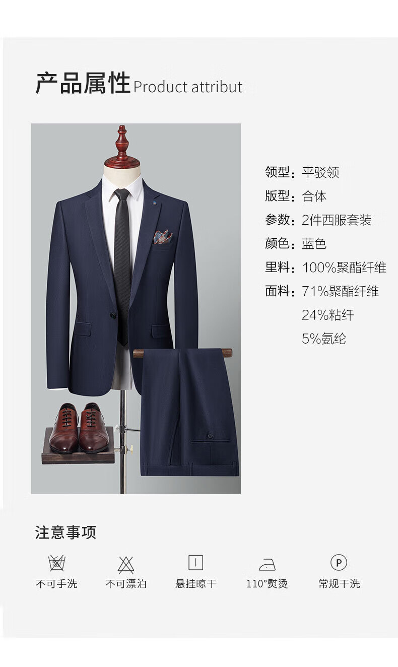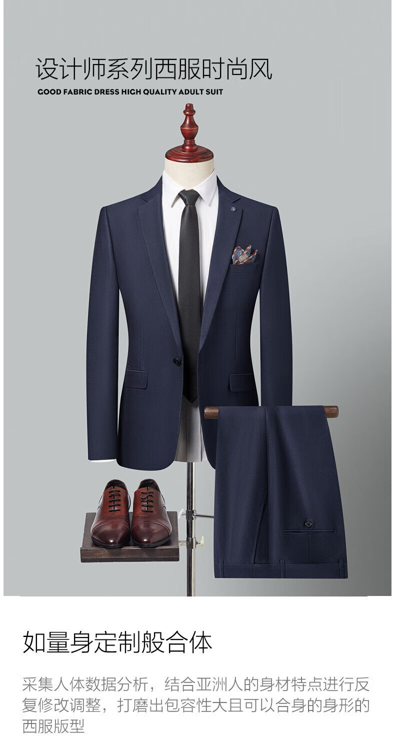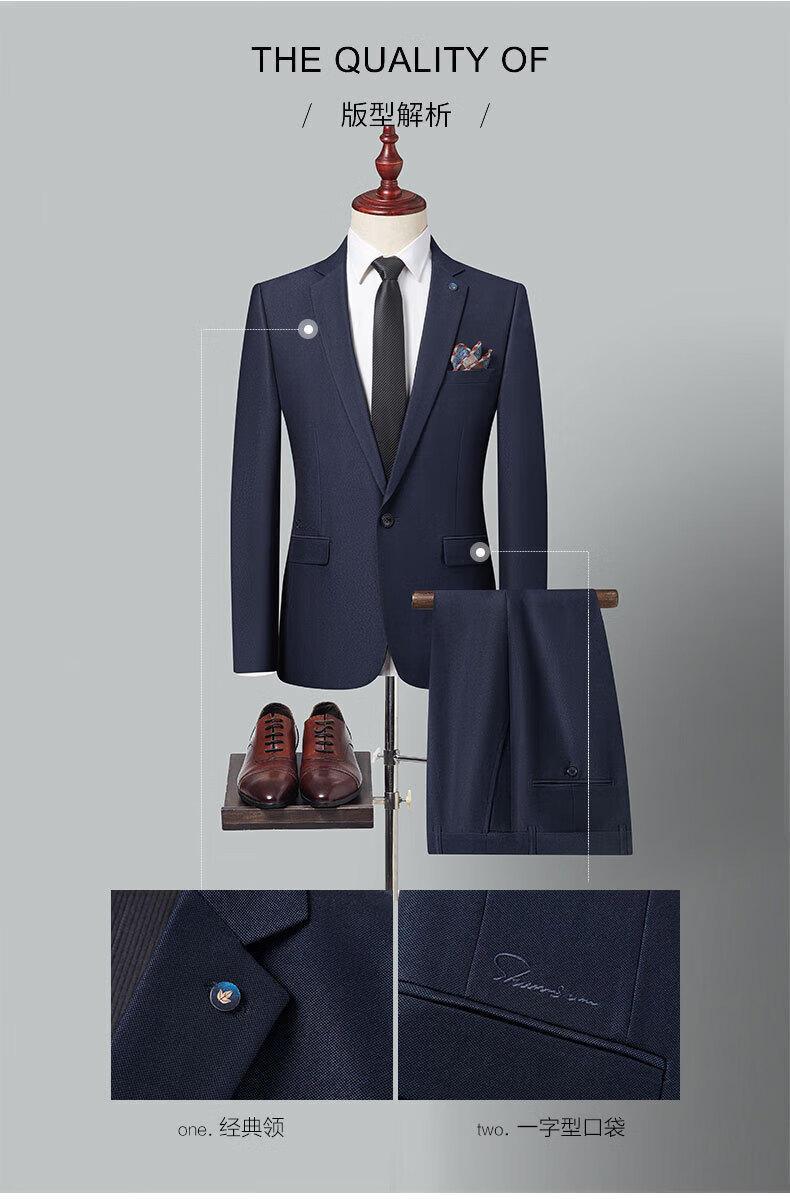 Shanshan (SHANSHAN) light luxury brand men's suit two-piece business casual fashion wedding slim suit dress navy blue XL 180