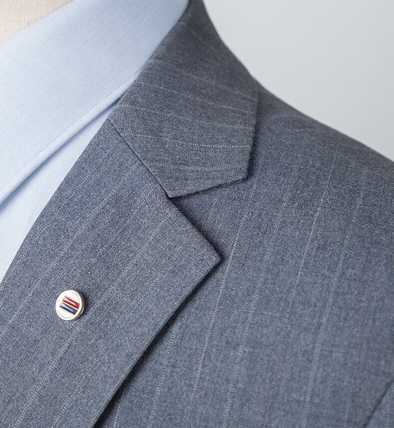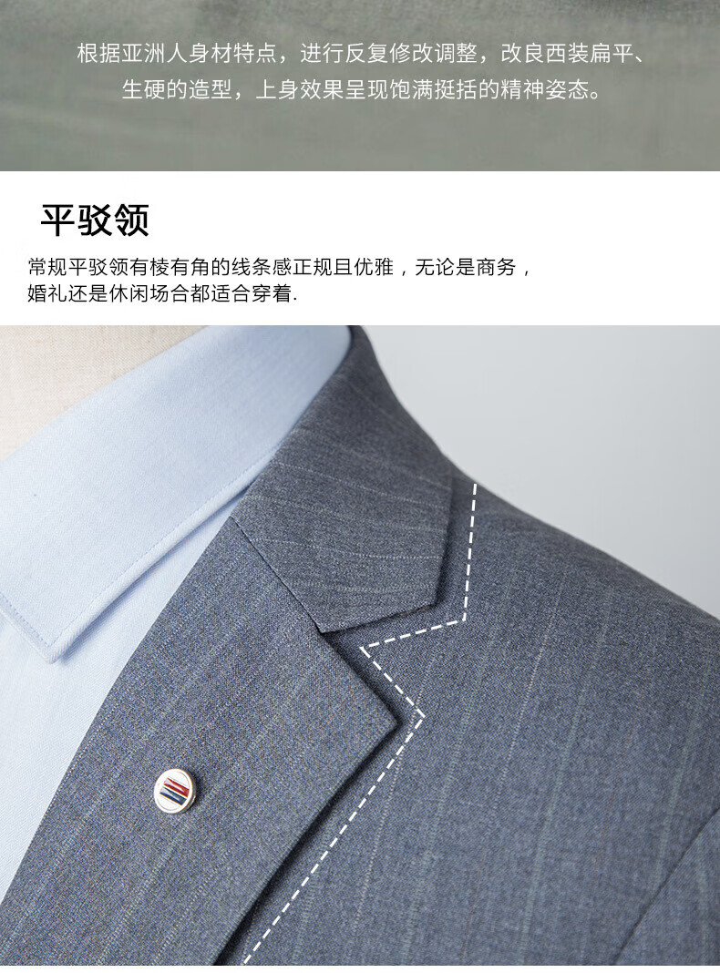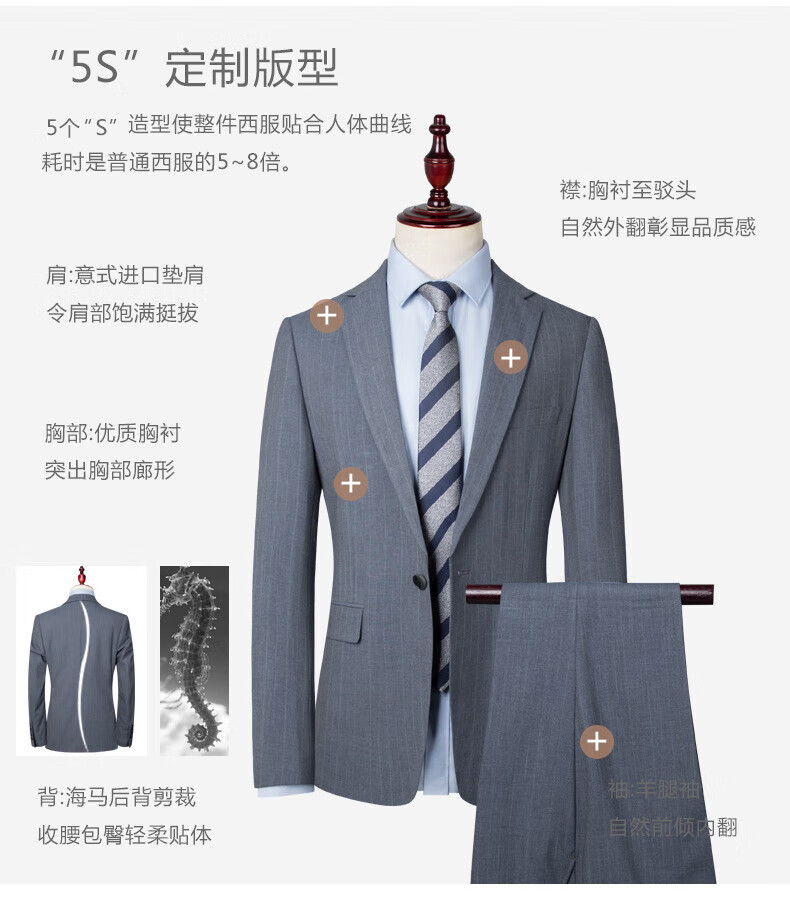 SHANSHAN light luxury brand 2025 new men's suit suit two-piece business casual wedding groomsmen dress blue gray stripes XL 180/50