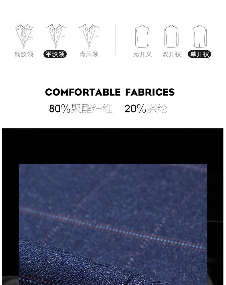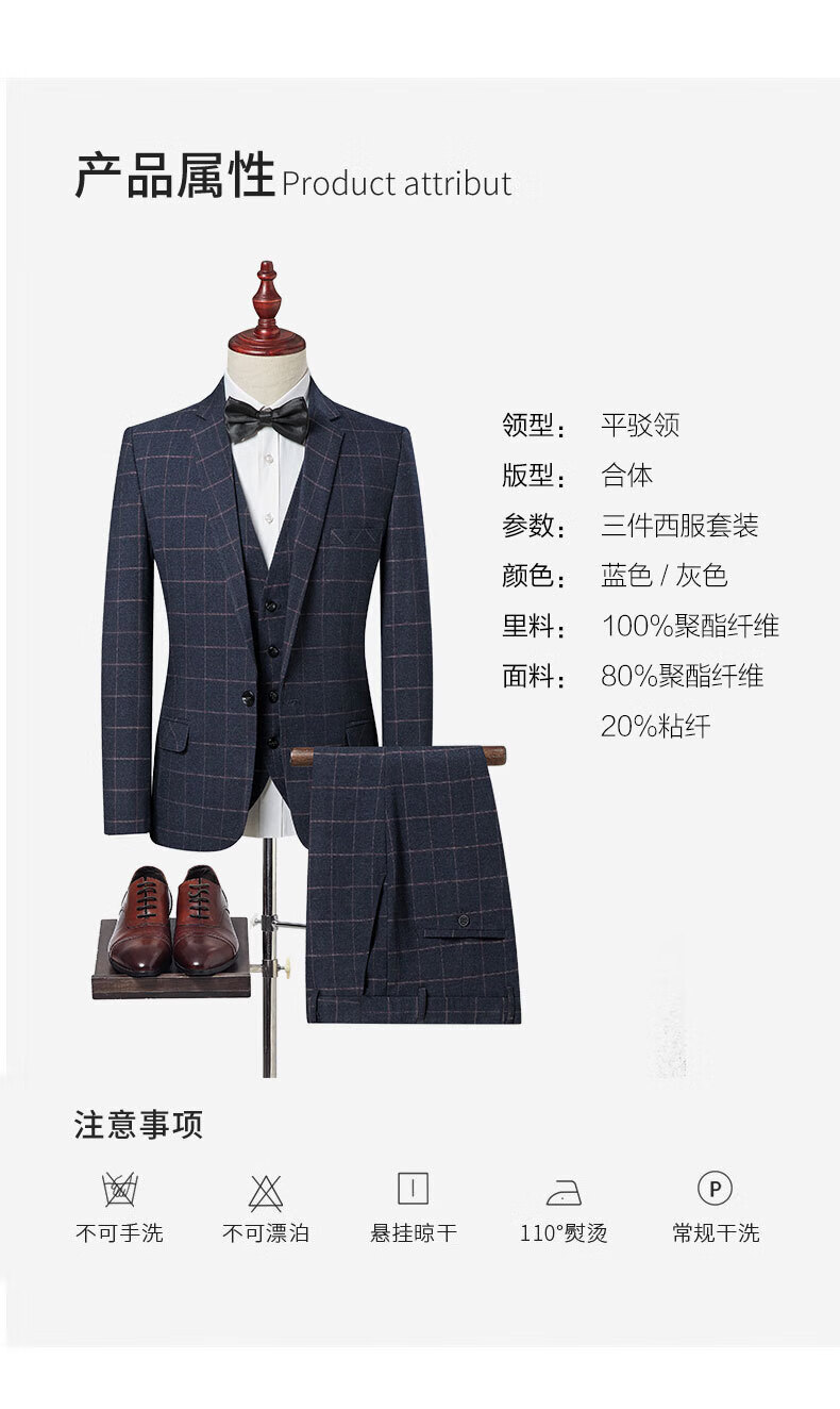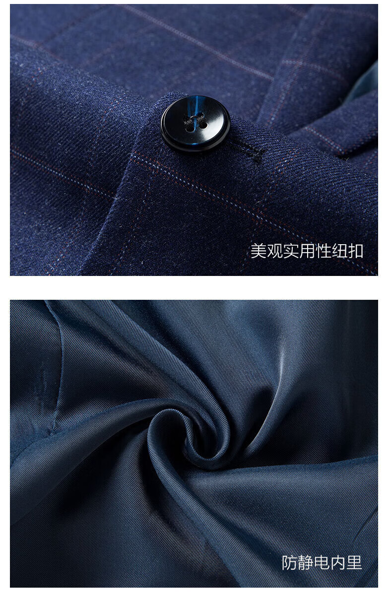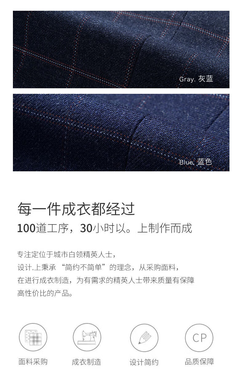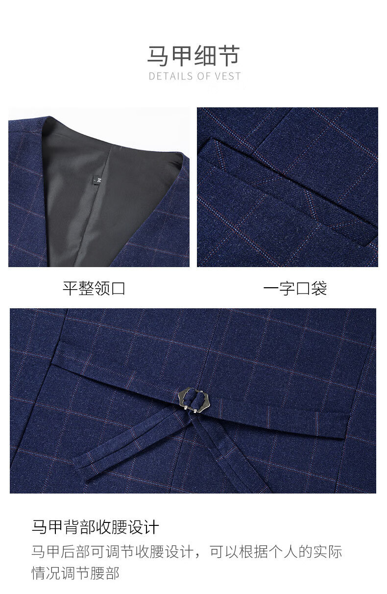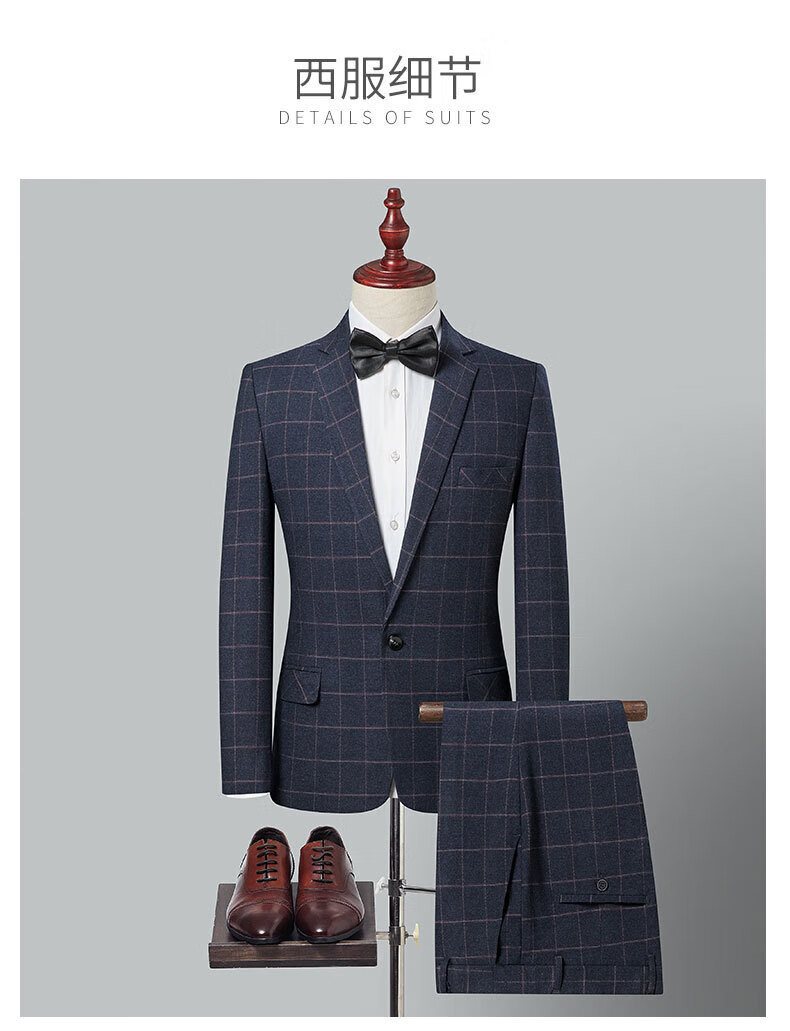 SHANSHAN light luxury brand men's suit wedding dress slim plaid business casual suit for men blue plaid L 170
