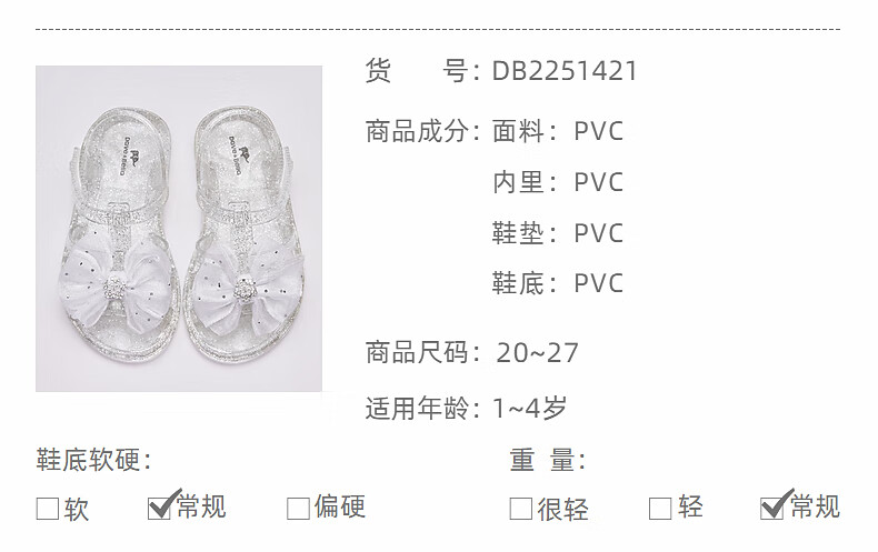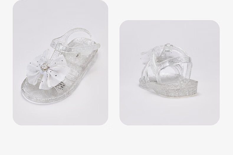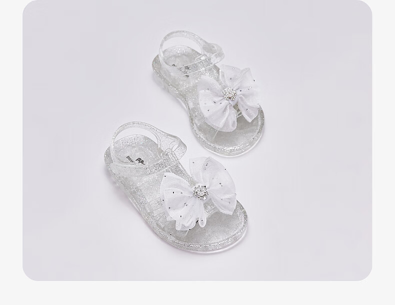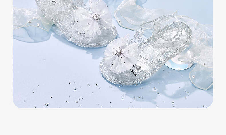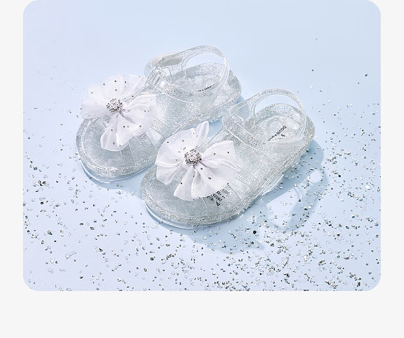 DAVE&BELLA children's sandals summer new girls transparent princess shoes baby girl open toe shoes children's casual shoes crystal silver ready stock 22