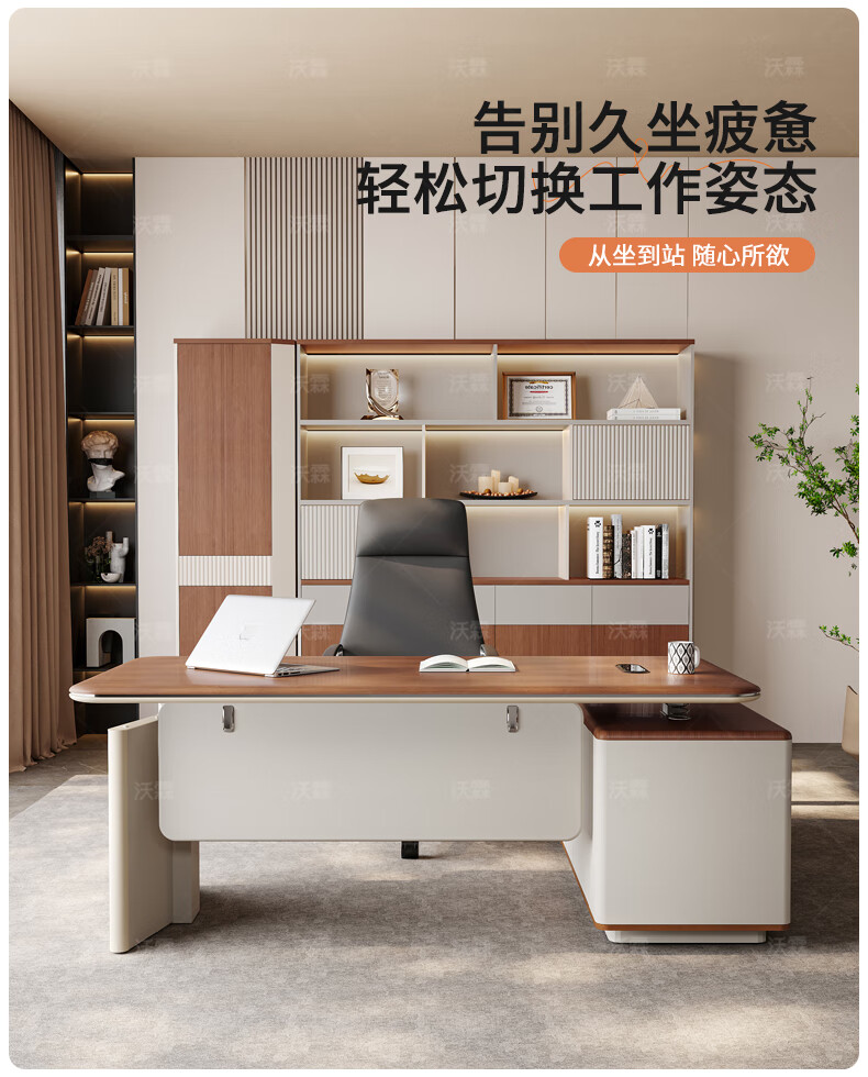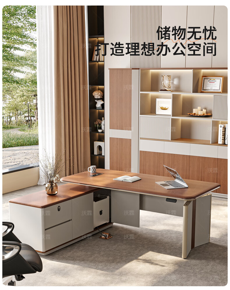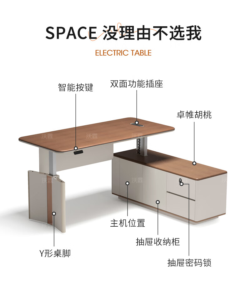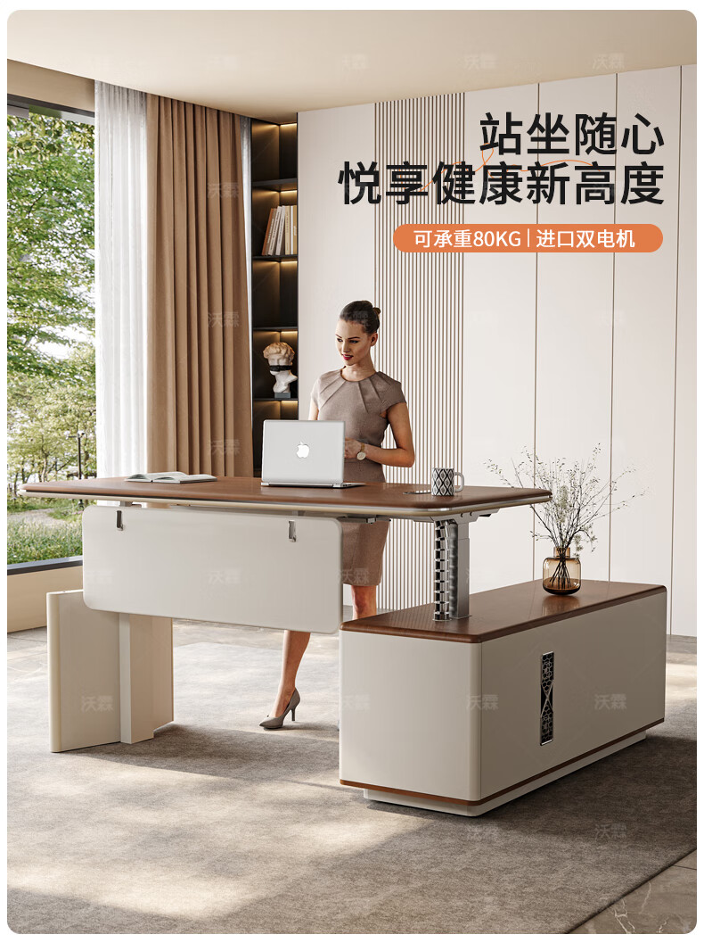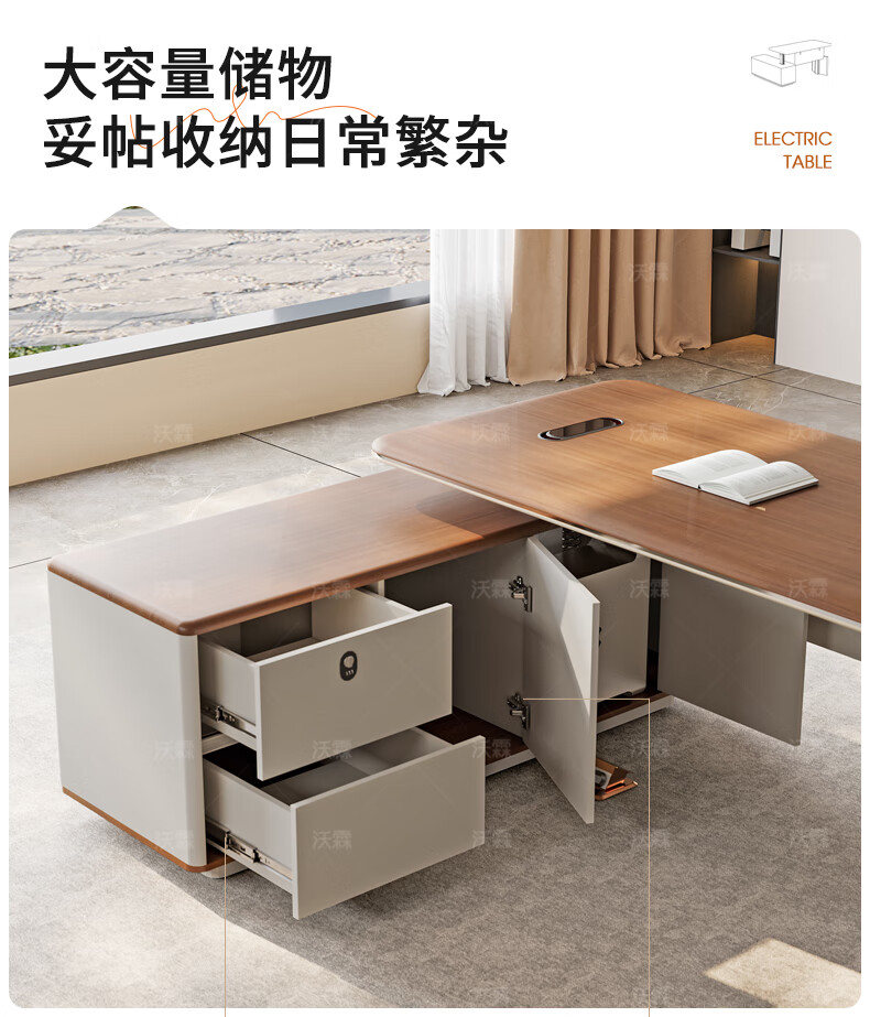 Wolin E0 class electric lift desk boss desk office modern simple smart adjustable manager desk chair 2.0 meter table dual motor + 2.6 meter filing cabinet