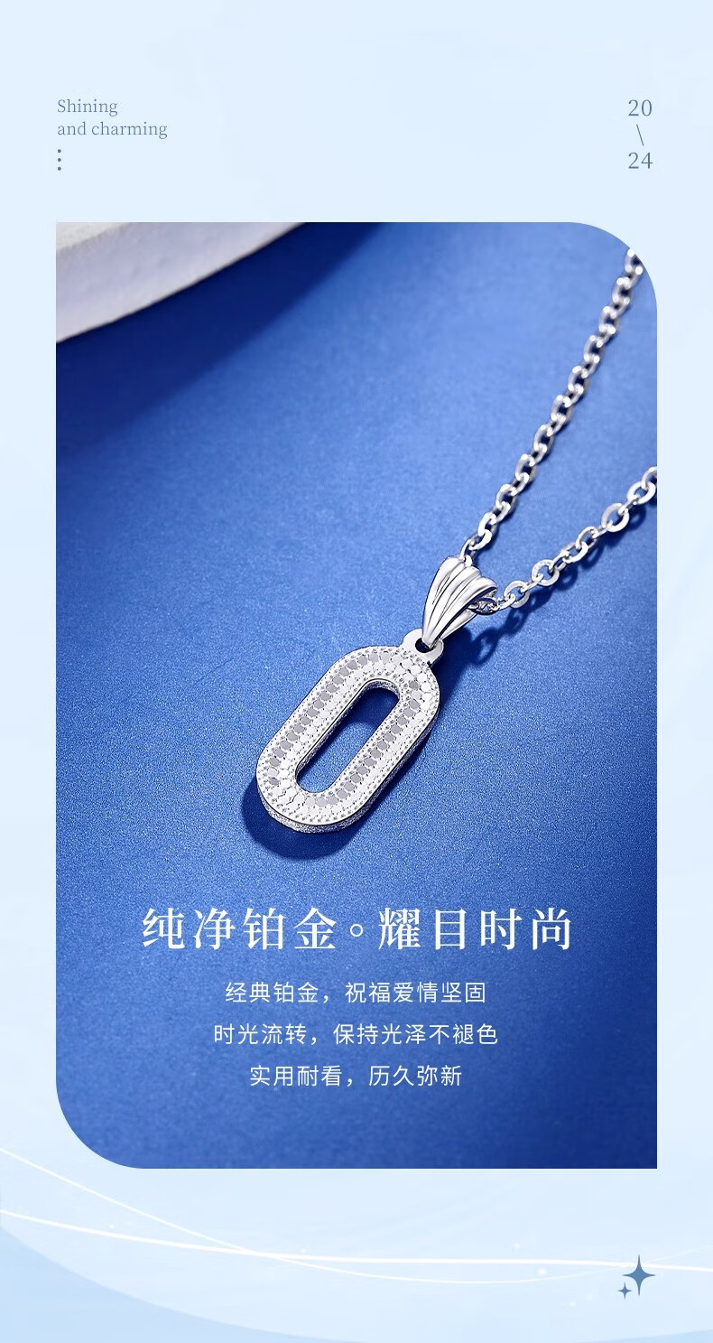 Lao Fengxiang PT950 platinum necklace for women 2025 new platinum round pendant clavicle chain birthday gift for lady for girlfriend PT950 platinum round pendant (gift silver chain) about 1.7g