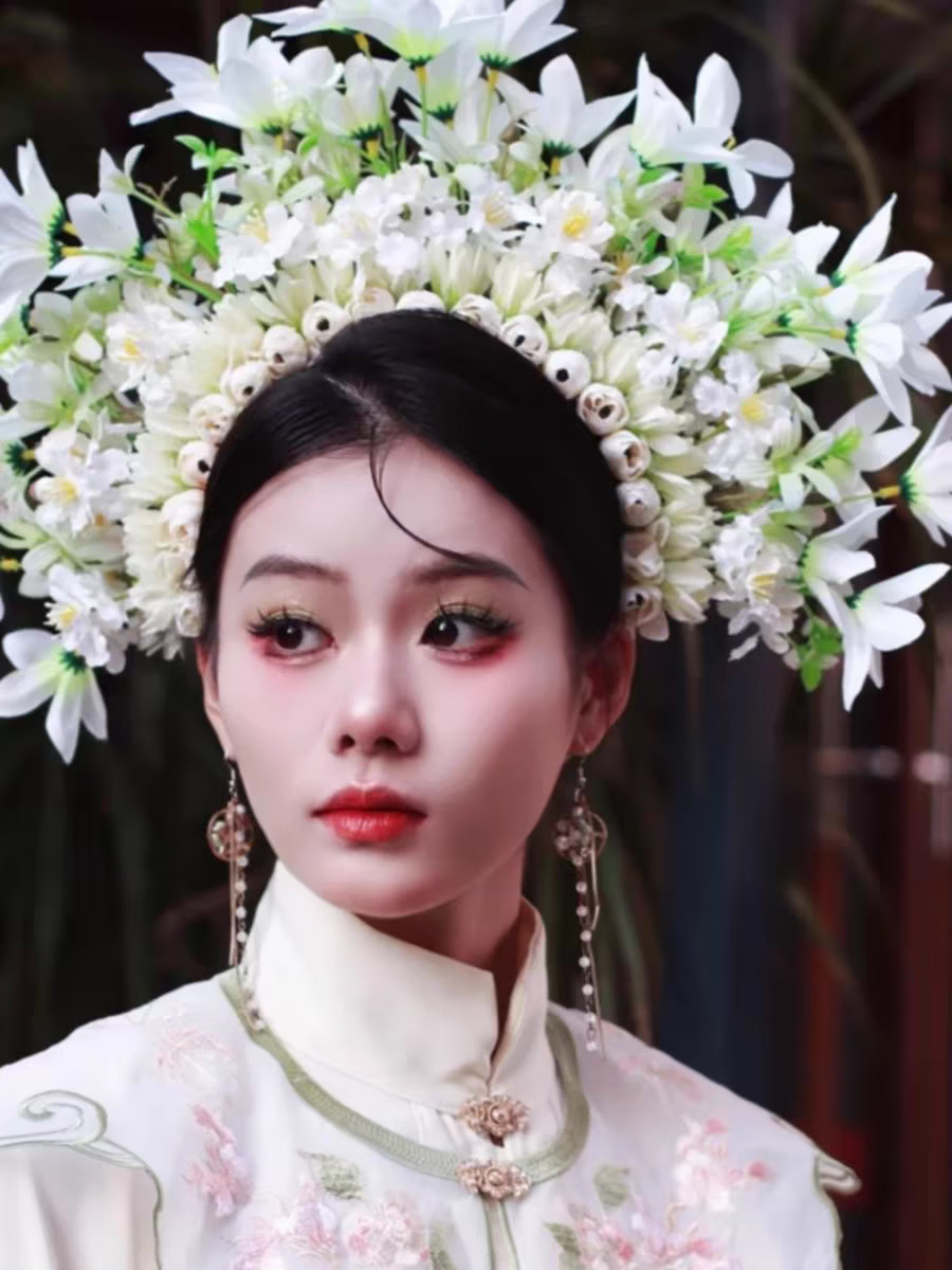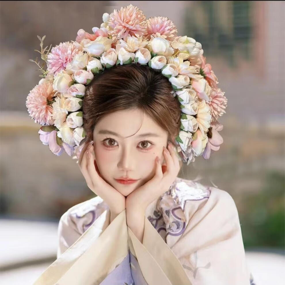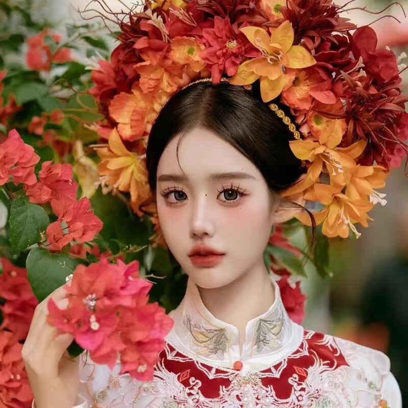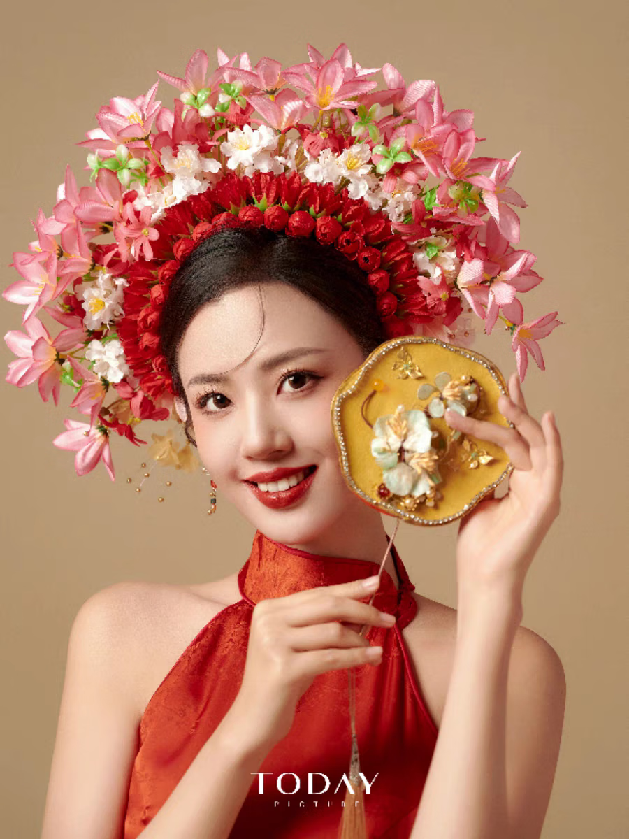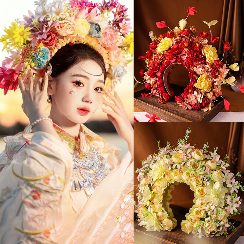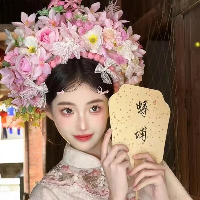 Shijun (SHIJUN) hairpin headdress ethnic style photo props Xunpu women Quanzhou folk characteristics Xunpu women's hairpins and garland hair accessories 18# red - finished product