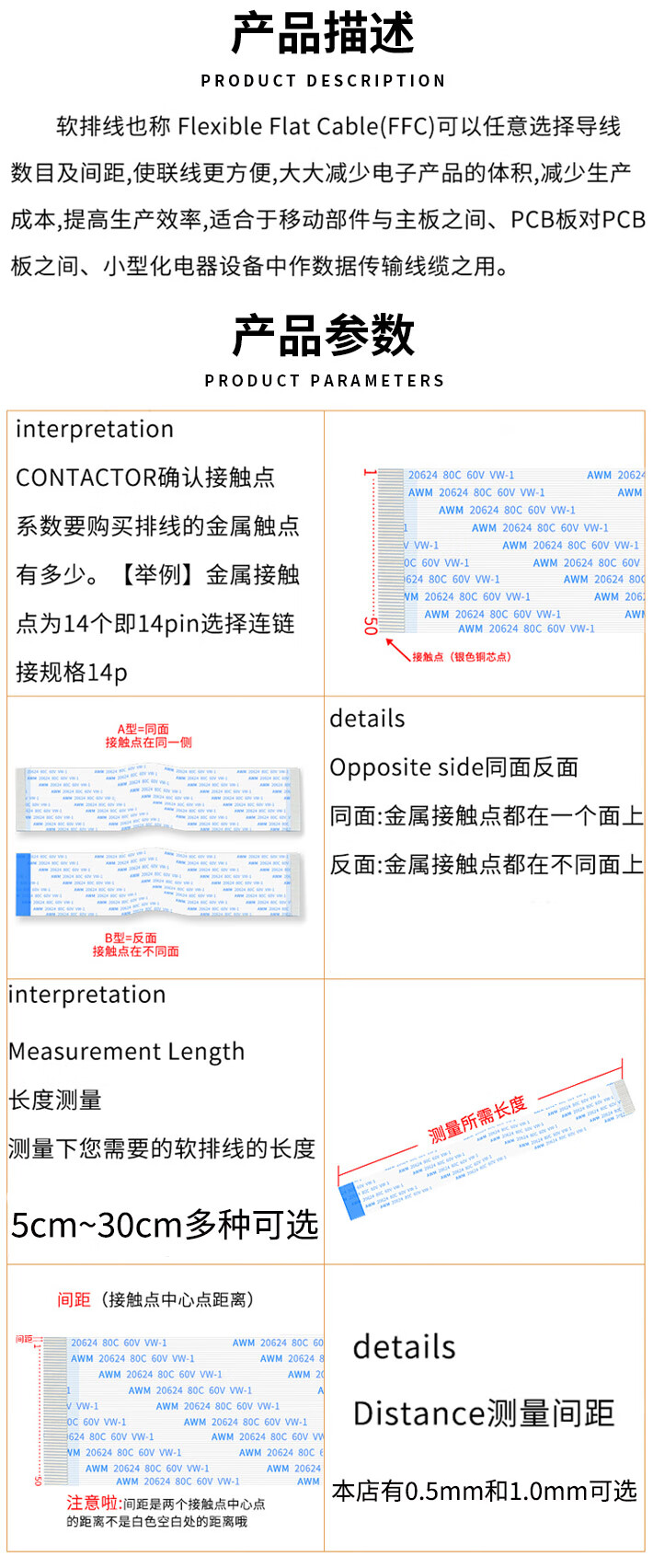 FFC/FPC flexible flat cable LCD flat cable 1.0mm pitch same direction reverse 4/6/8/14-40P 20P same direction 1.0mm pitch length 200mm (5 lines) others