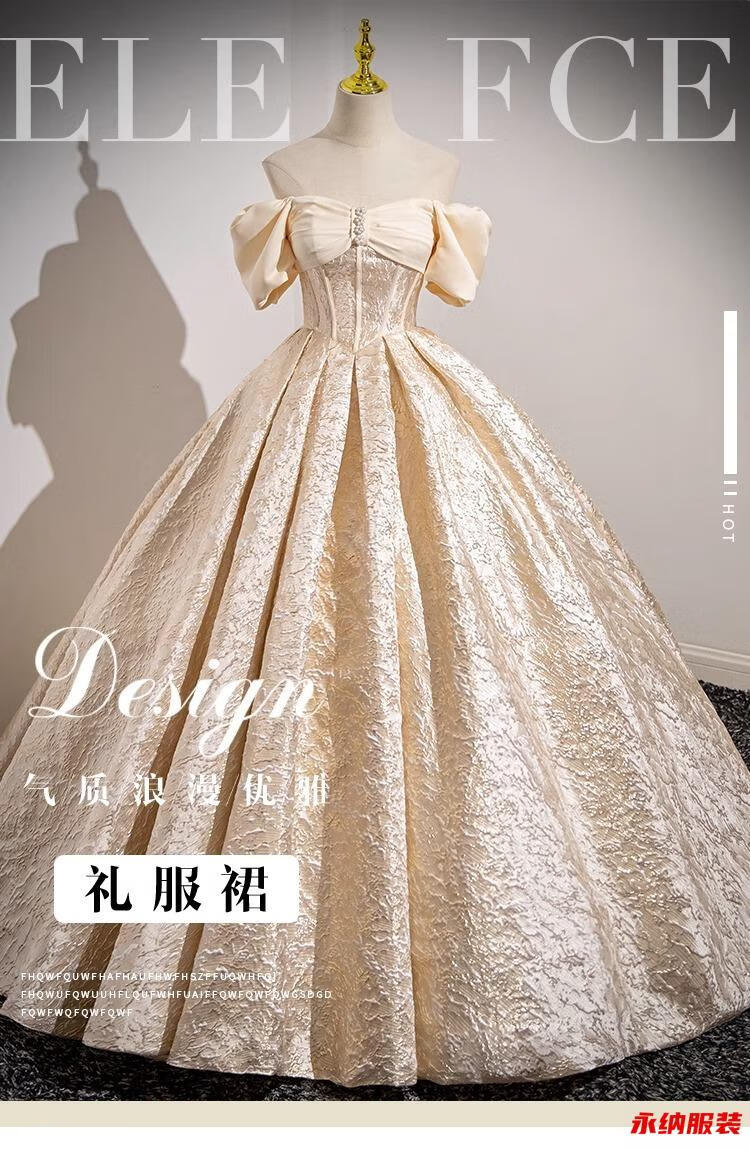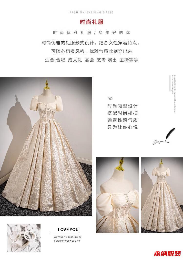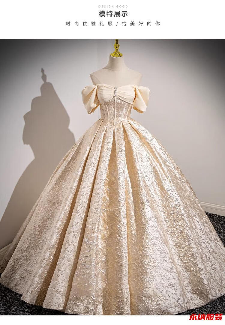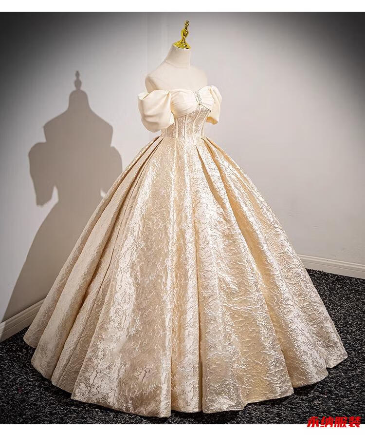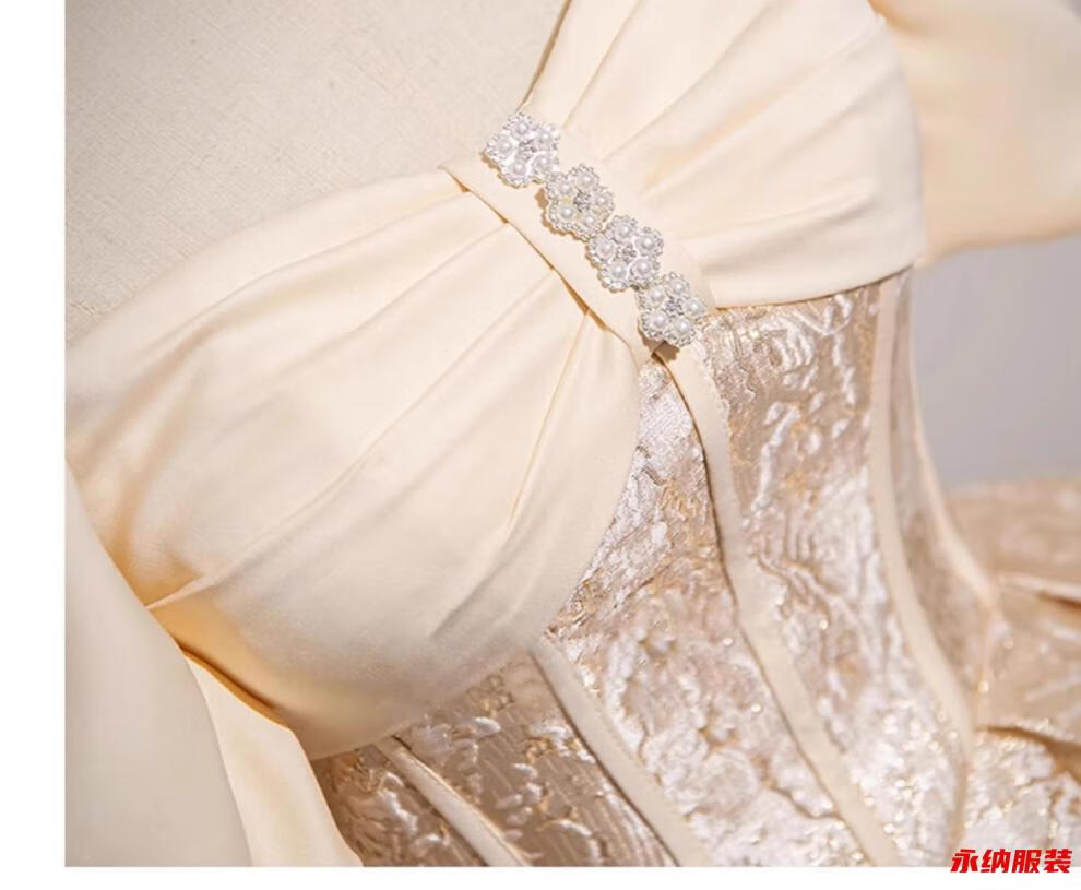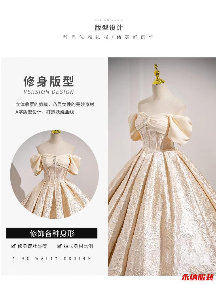 Xuan Tuya palace style evening dress for women champagne color adult ceremony birthday art test fluffy princess dress high-end toast new annual party champagne color dress without skirt XL