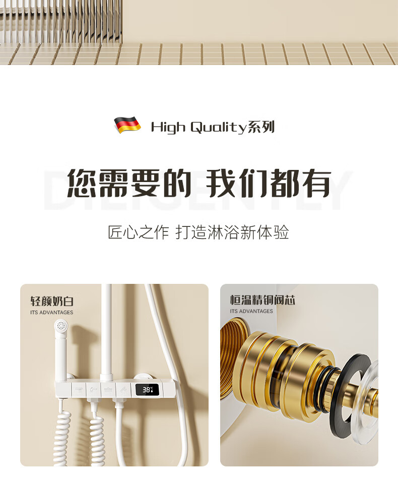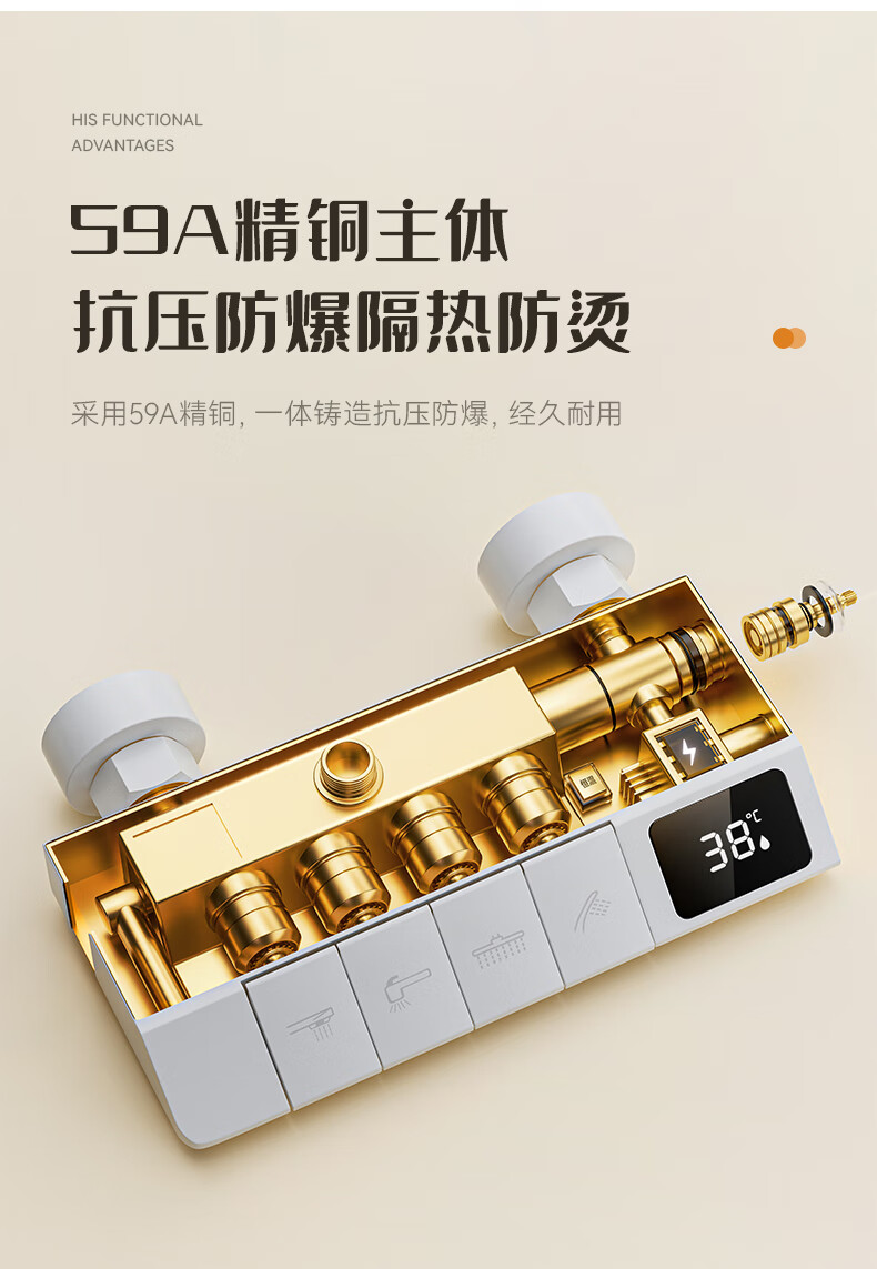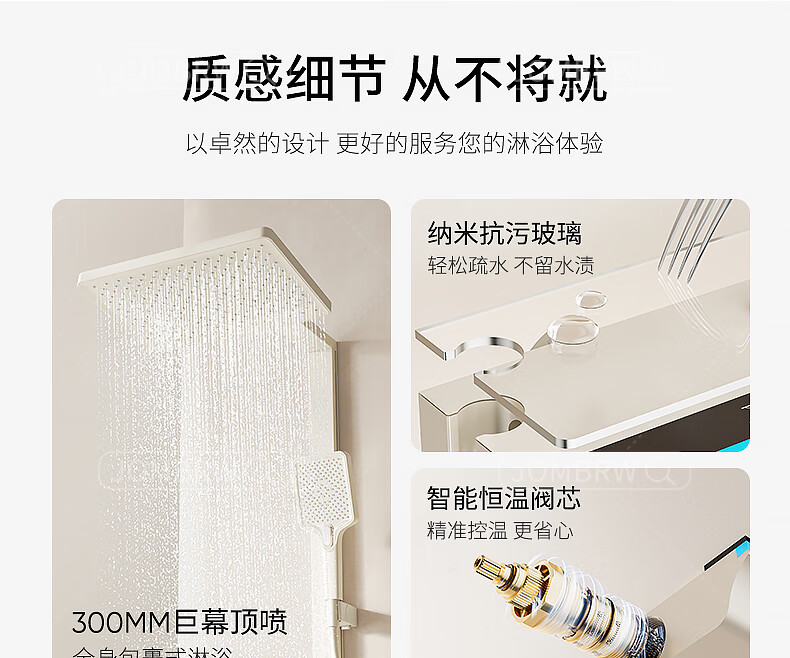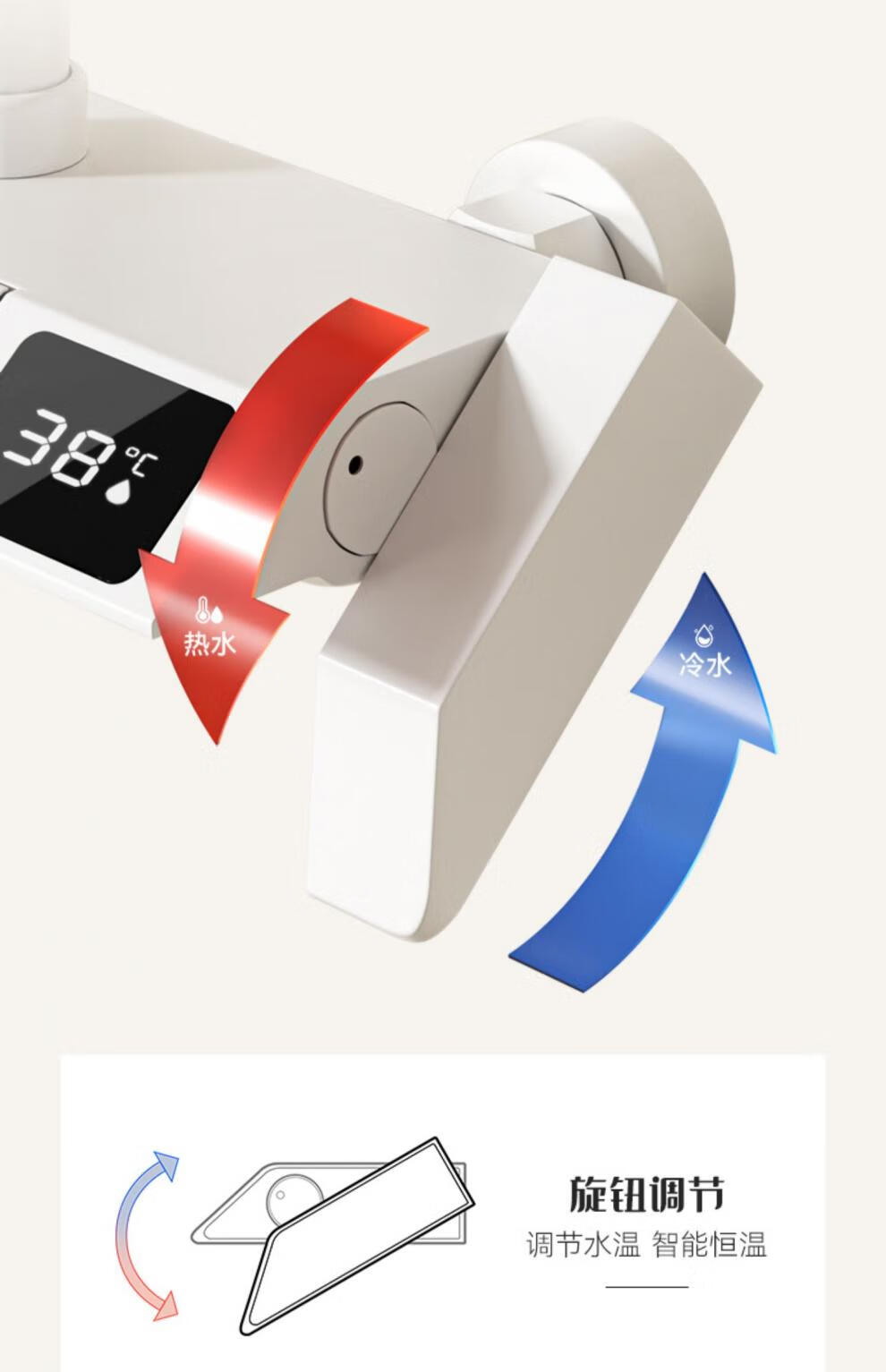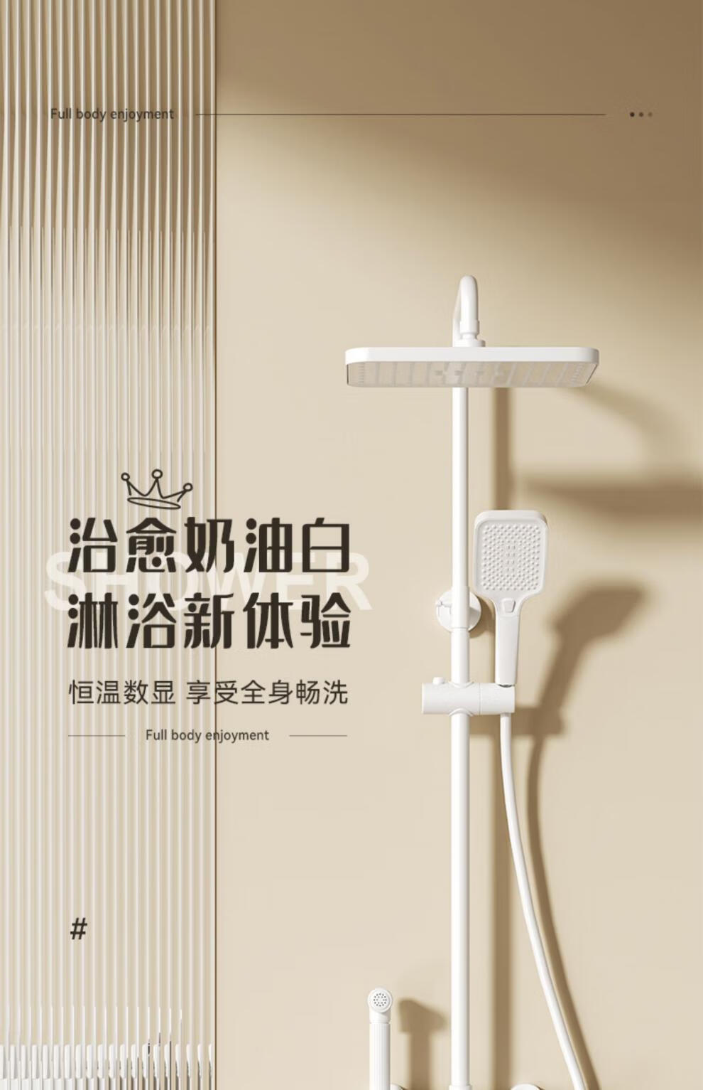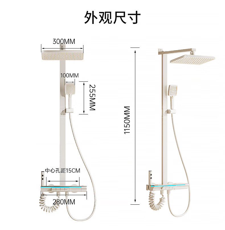 JOMOO official flagship 100% all-copper cream style white shower set shower bathroom home piano key shower shower cream white (piano style/square shower head) constant temperature model