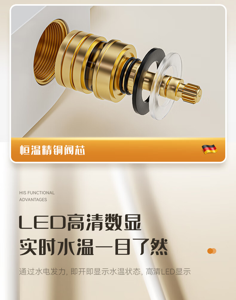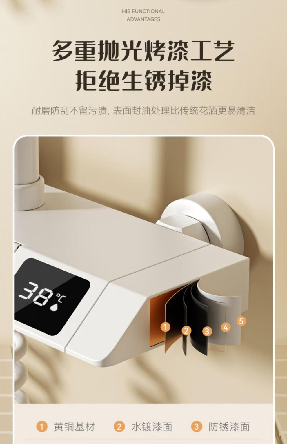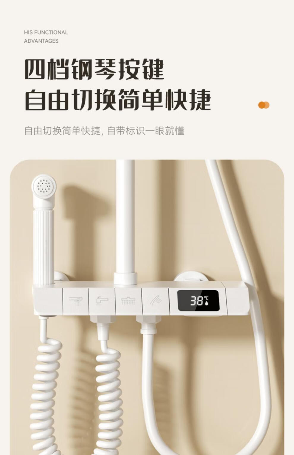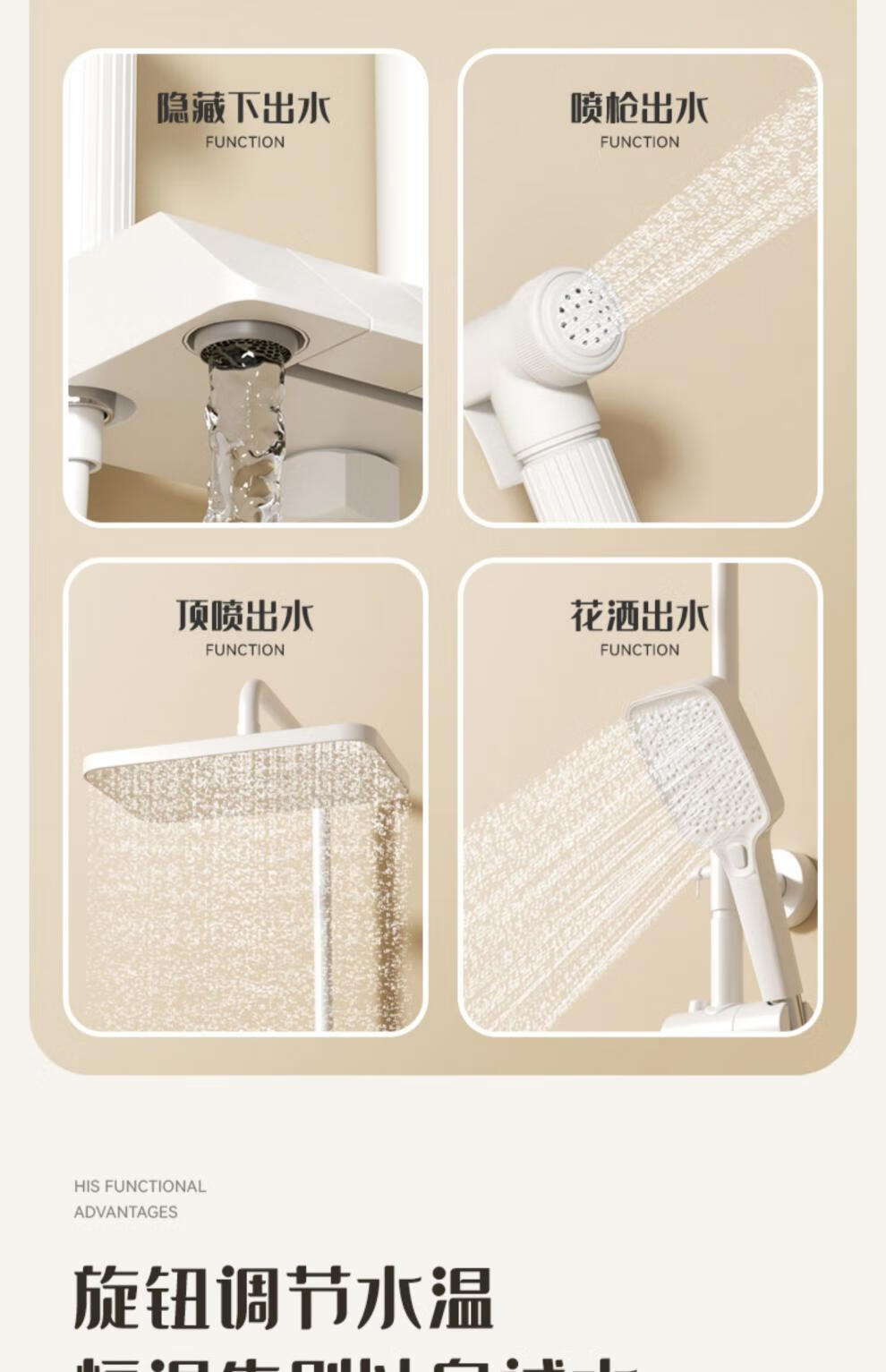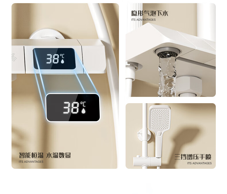 JOMOO official flagship 100% all-copper cream style white shower set shower bathroom home piano key shower shower cream white (piano style/square shower head) constant temperature model