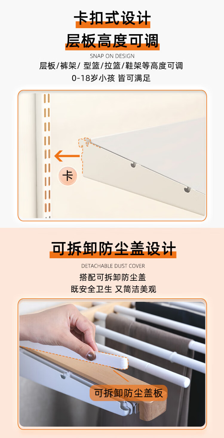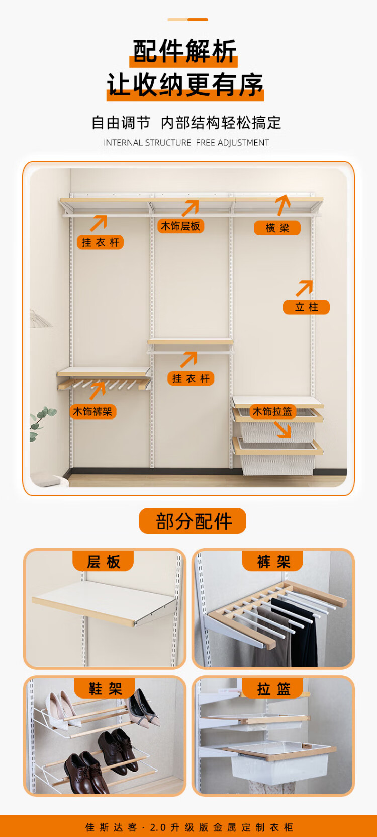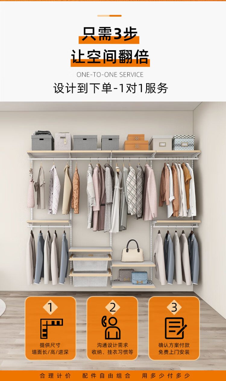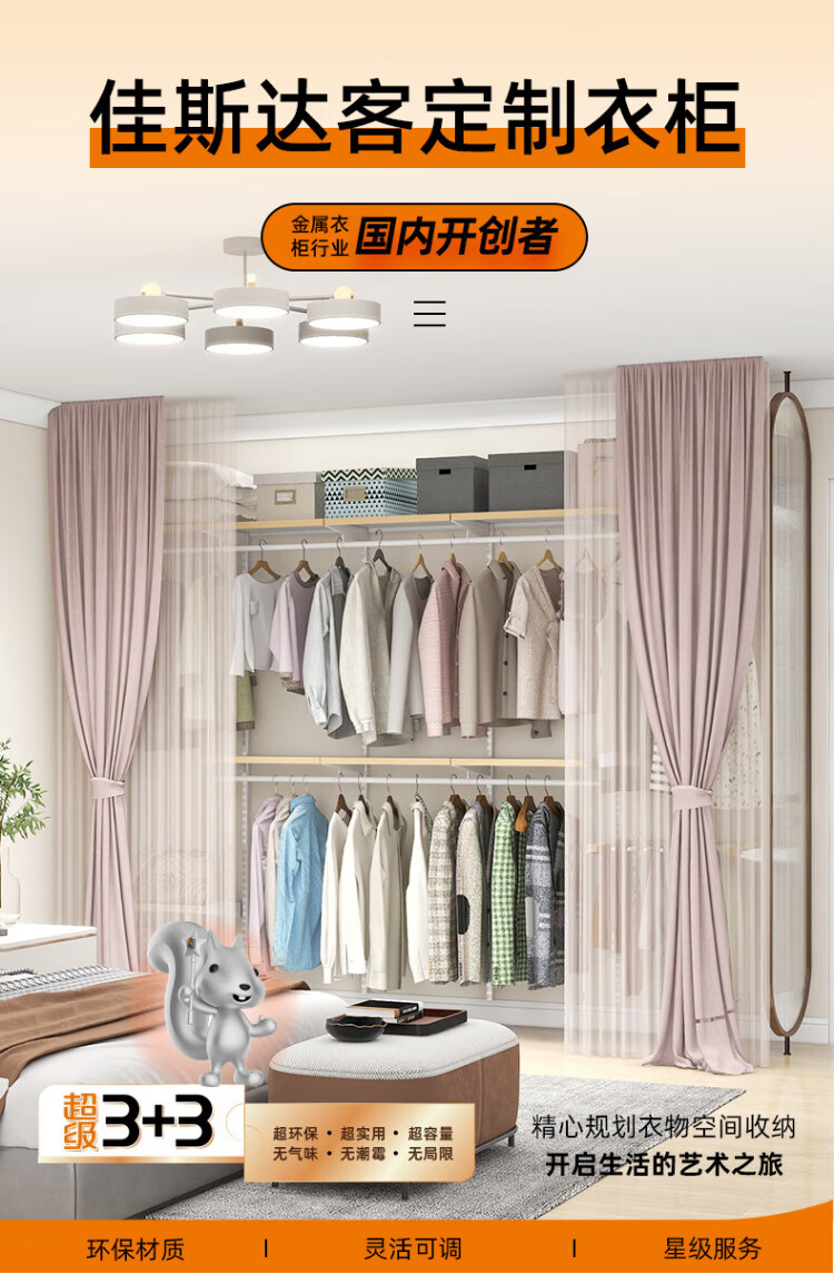 Jiastarke metal wardrobe customized bedroom whole house wall wardrobe shelf walk-in steel frame wall hanging laminate + wood decorative wardrobe metal wardrobe, the price is subject to the design plan