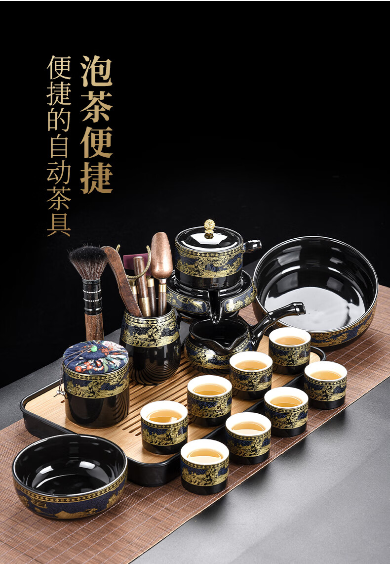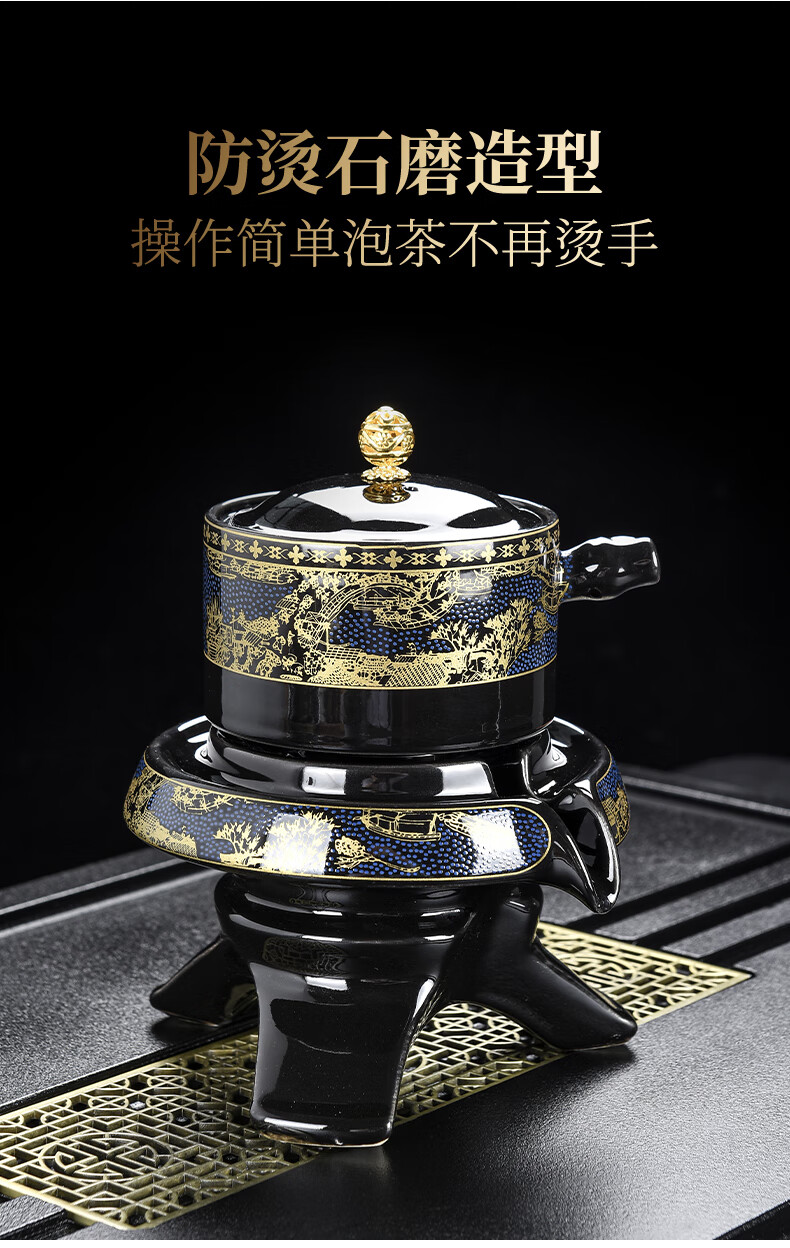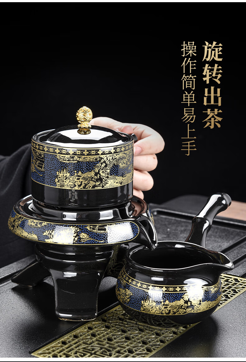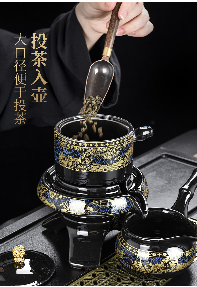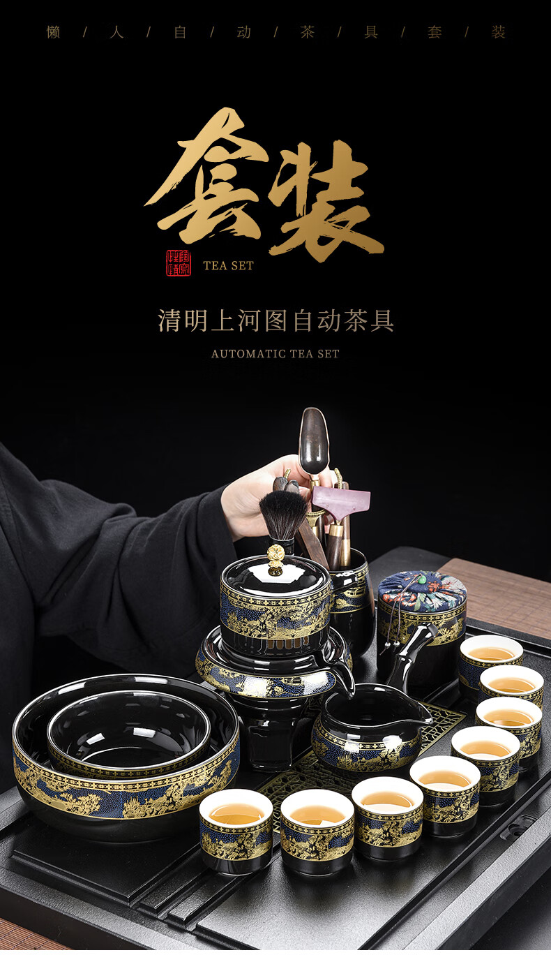 Songyun Qing Lazy Tea Set 2025 New Household Tea Drinking Artifact Ceramic Kung Fu Teacup Stone-Ground Teapot Semi-automatic Qingming Riverside Scene Automatic (6 cups) 8 heads 10 pieces