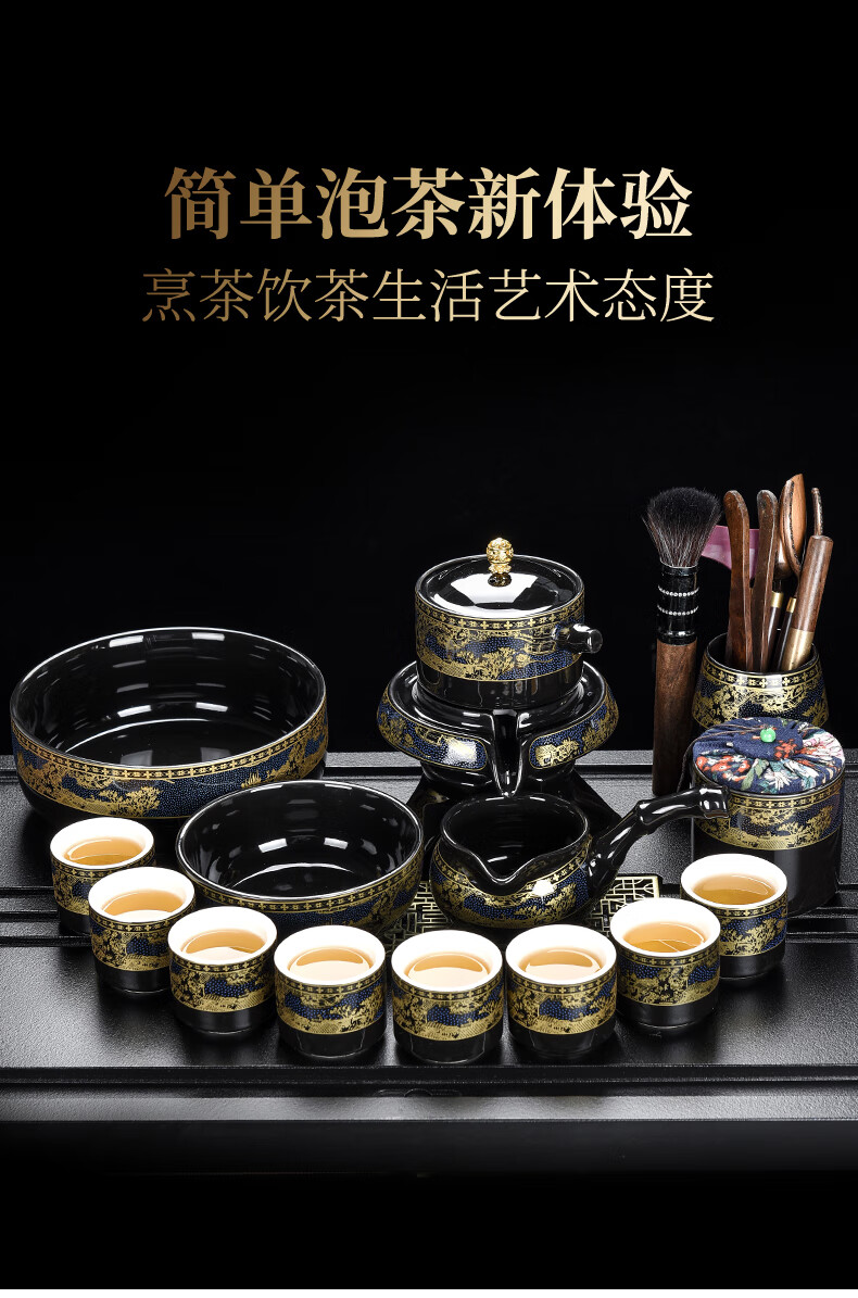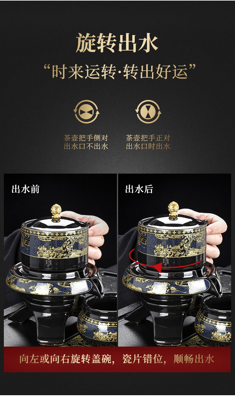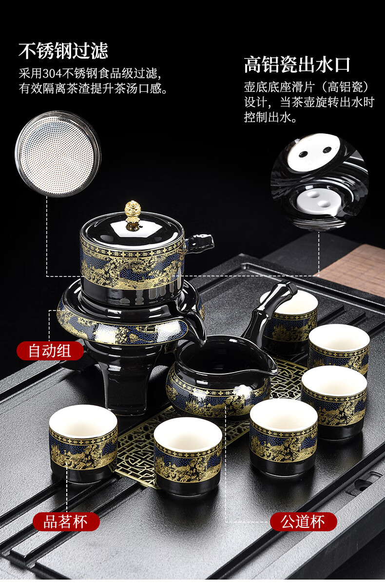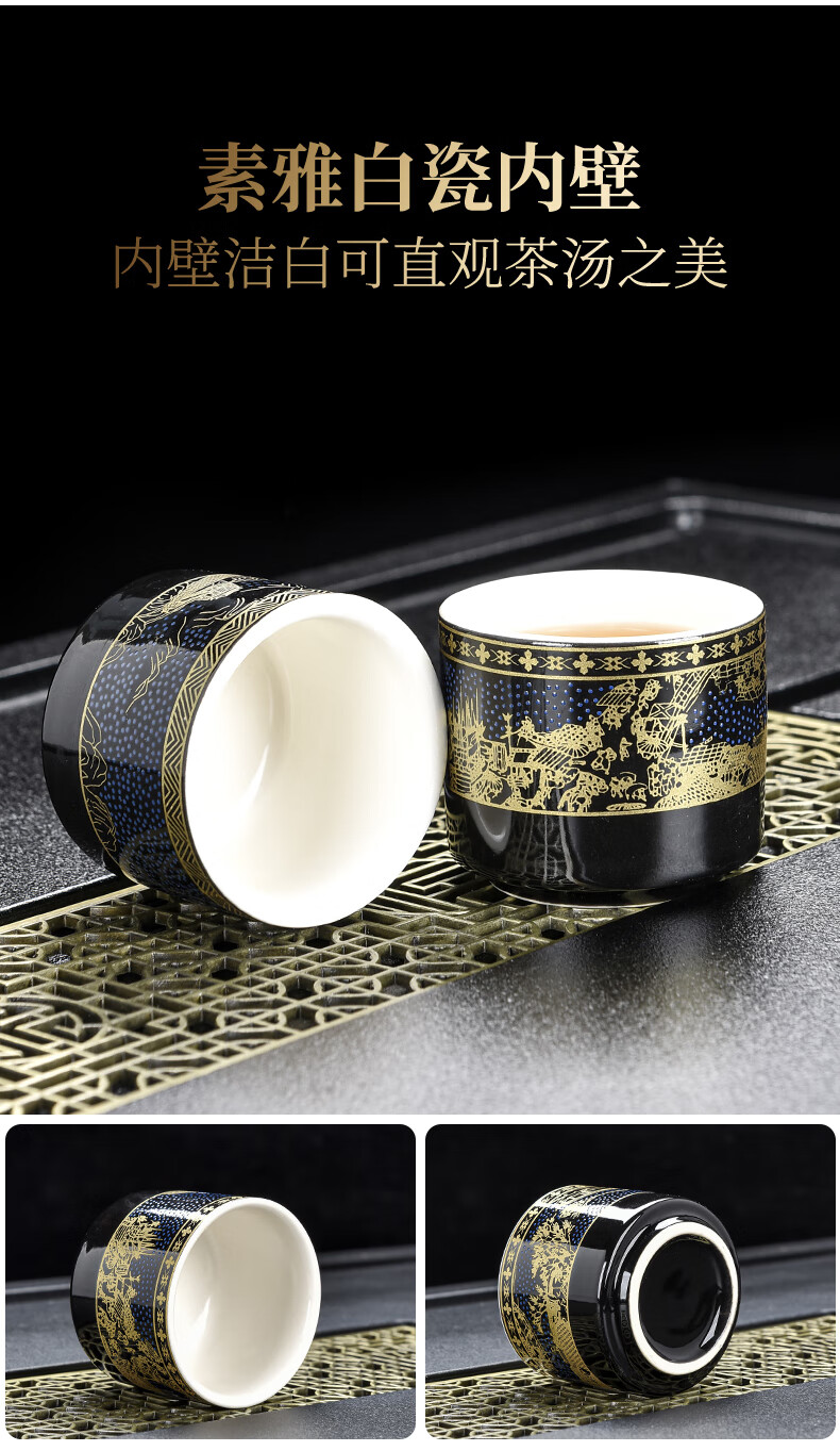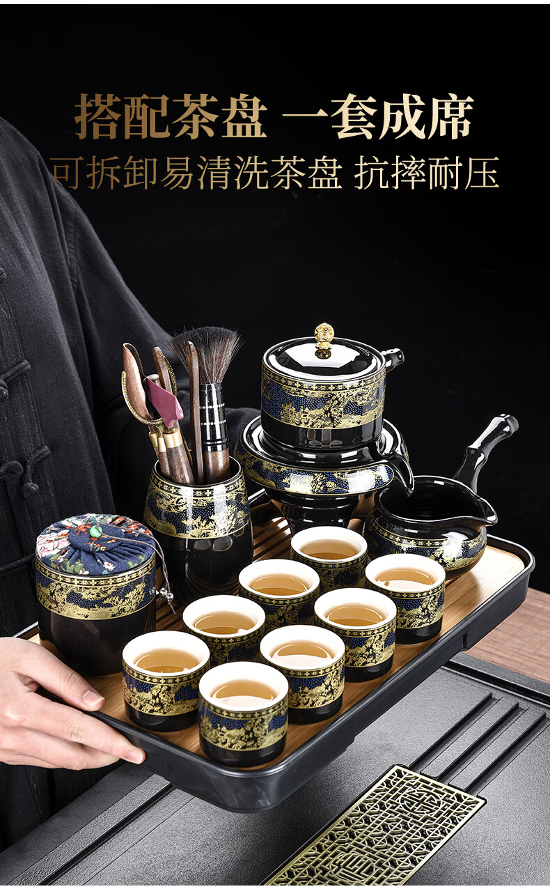 Songyun Qing Lazy Tea Set 2025 New Household Tea Drinking Artifact Ceramic Kung Fu Teacup Stone-Ground Teapot Semi-automatic Qingming Riverside Scene Automatic (6 cups) 8 heads 10 pieces