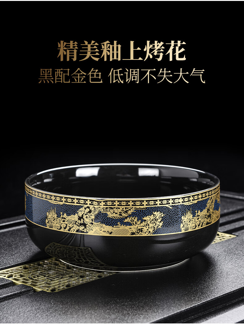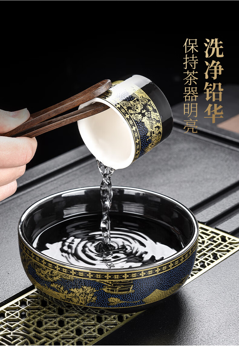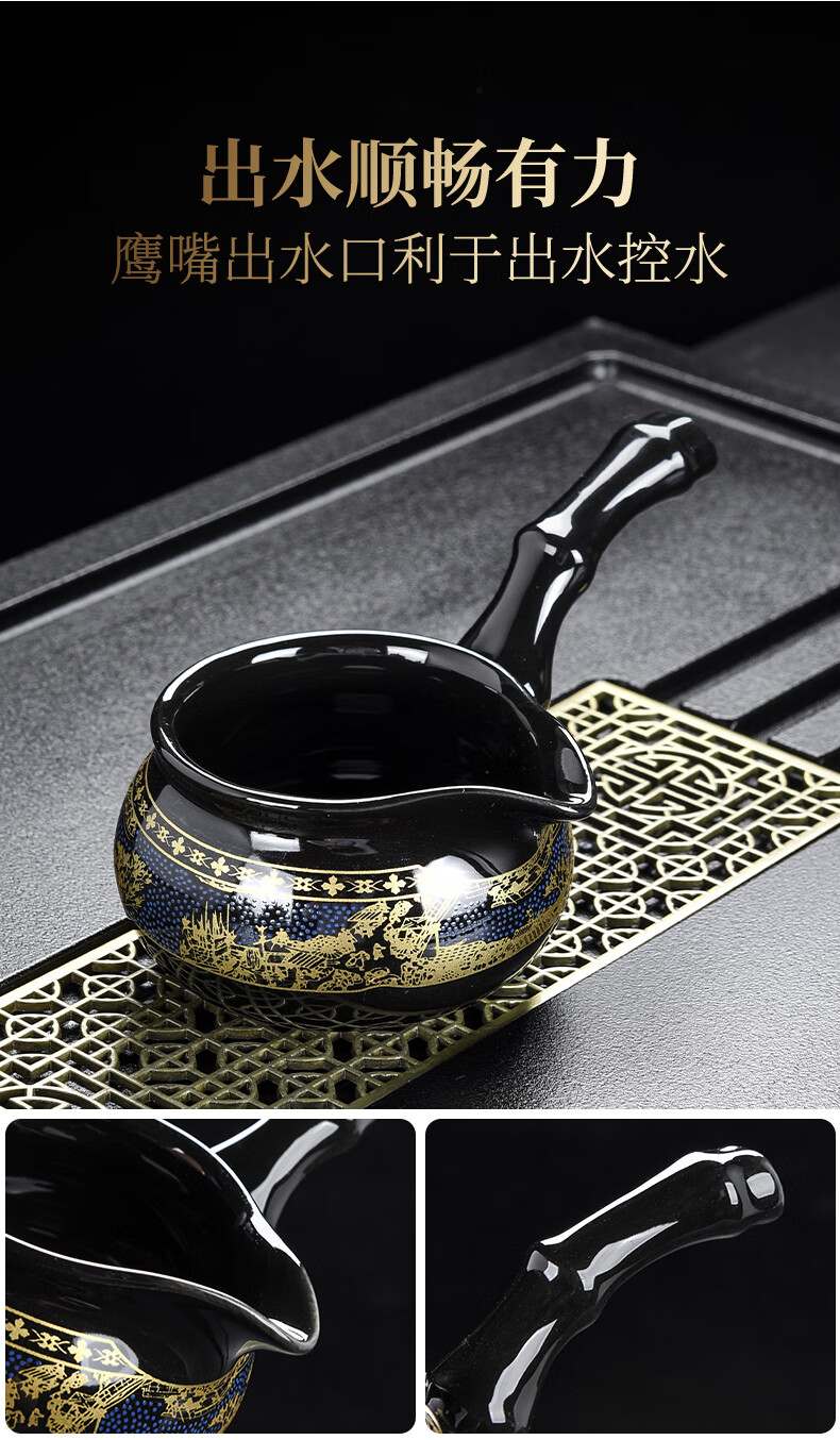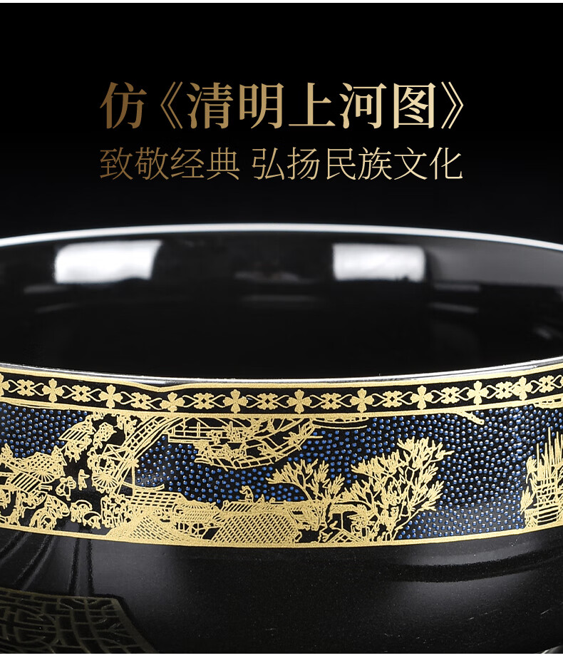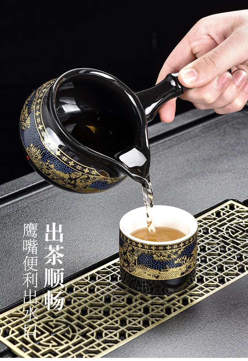 Songyun Qing Lazy Tea Set 2025 New Household Tea Drinking Artifact Ceramic Kung Fu Teacup Stone-Ground Teapot Semi-automatic Qingming Riverside Scene Automatic (6 cups) 8 heads 10 pieces