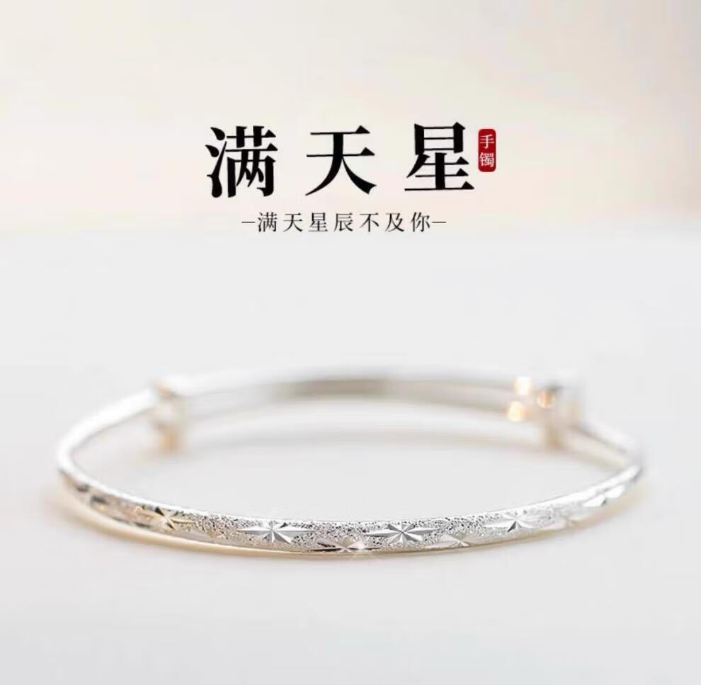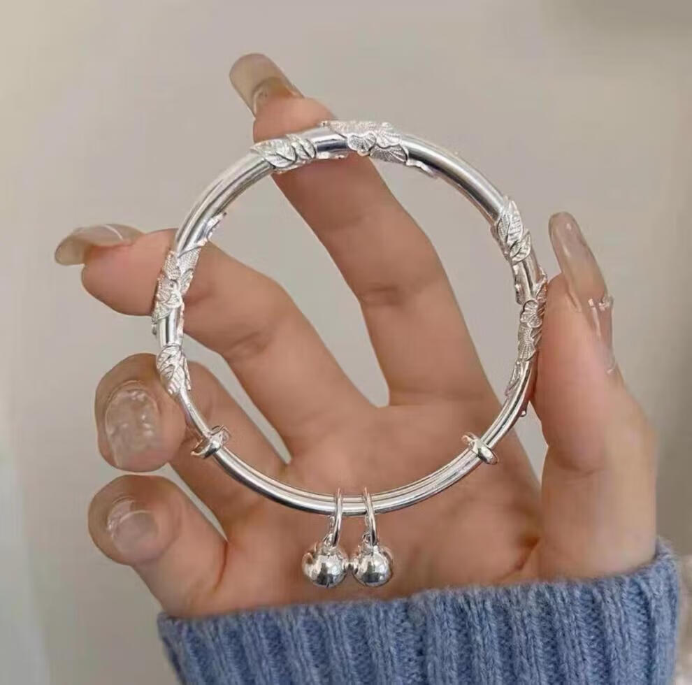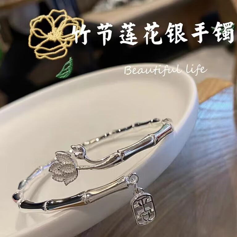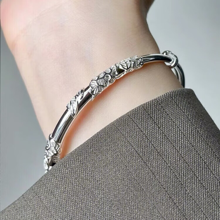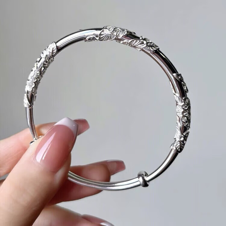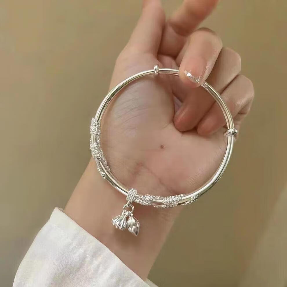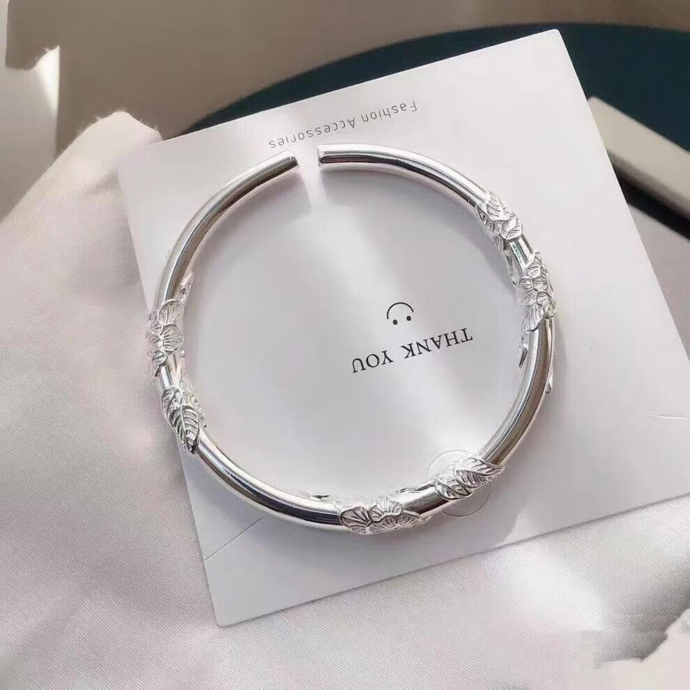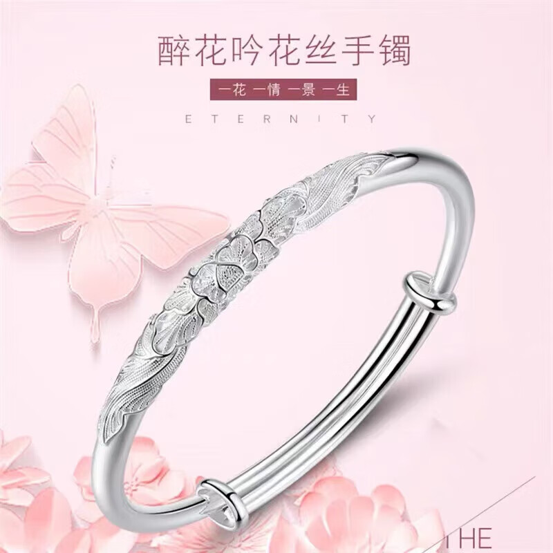 Chinese Valentine's Day gift Chinese Valentine's Day solid silver bracelet for women 9999 sterling silver bracelet solid Mobius flower for female students flower butterfly push-pull silver bracelet