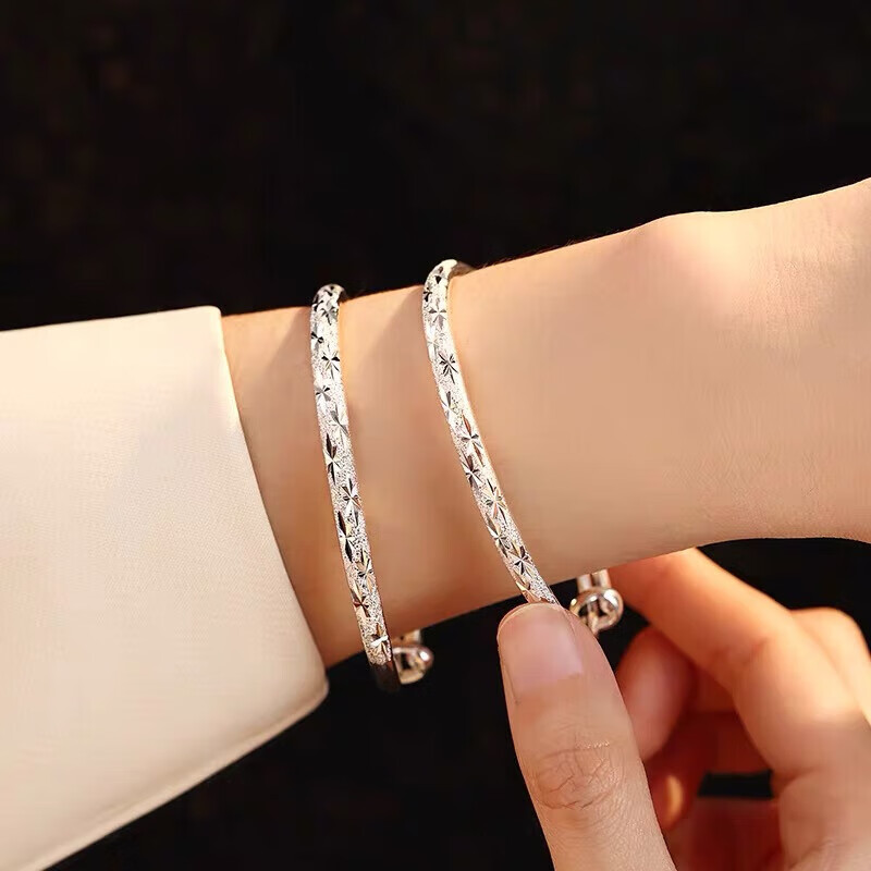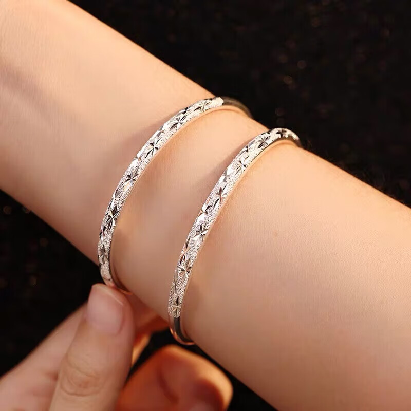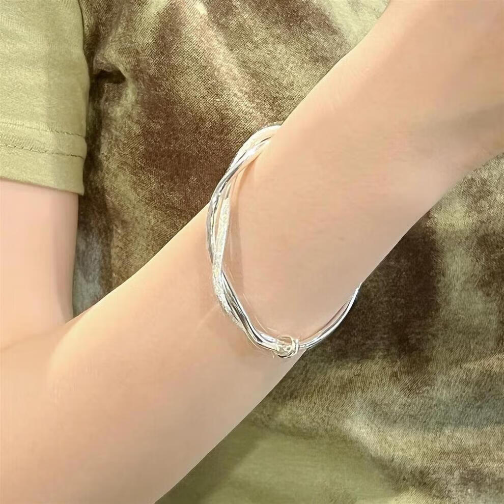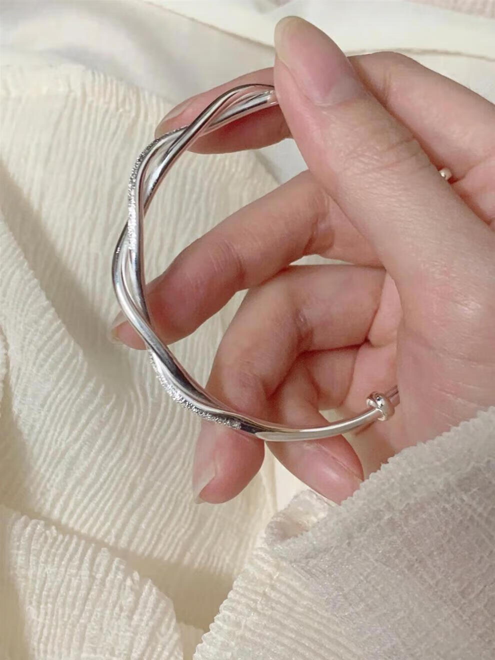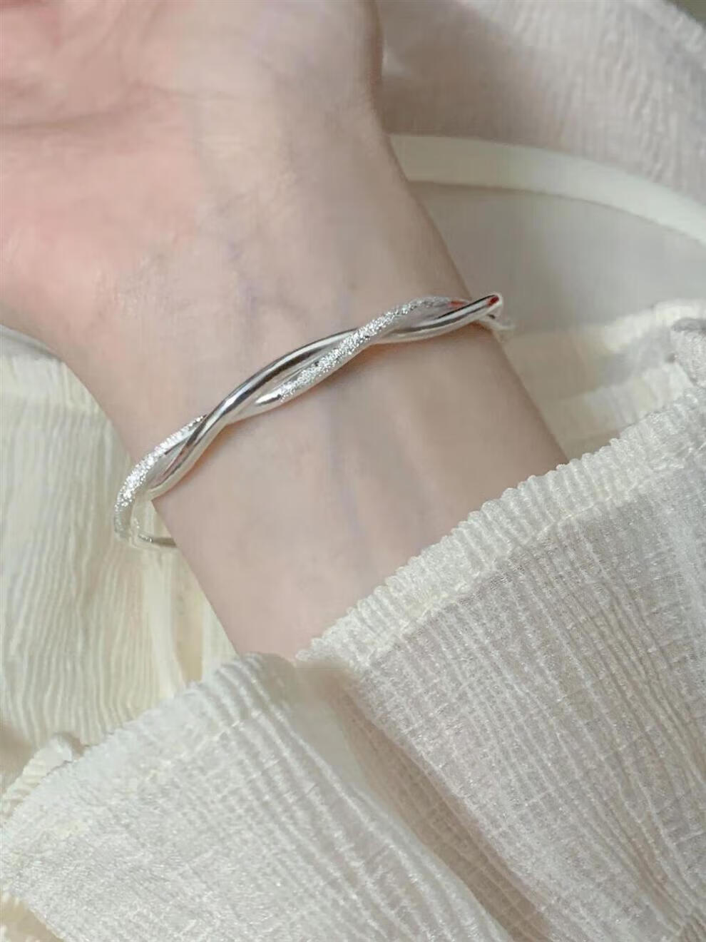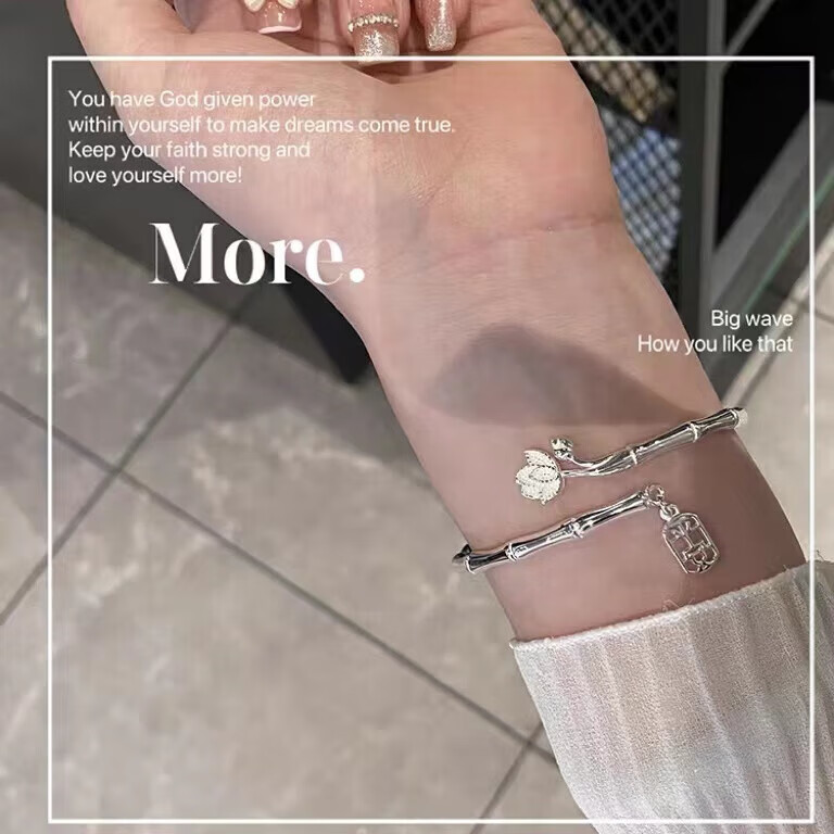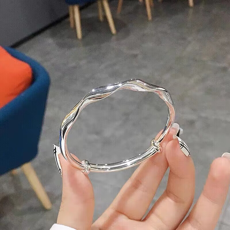 Chinese Valentine's Day gift Chinese Valentine's Day solid silver bracelet for women 9999 sterling silver bracelet solid Mobius flower for female students flower butterfly push-pull silver bracelet
