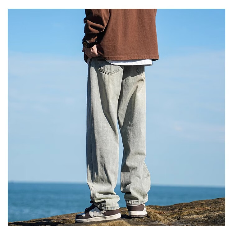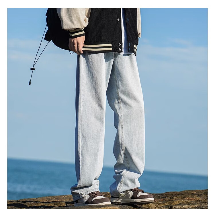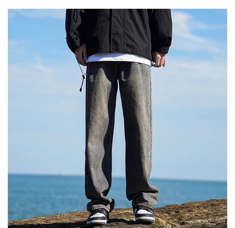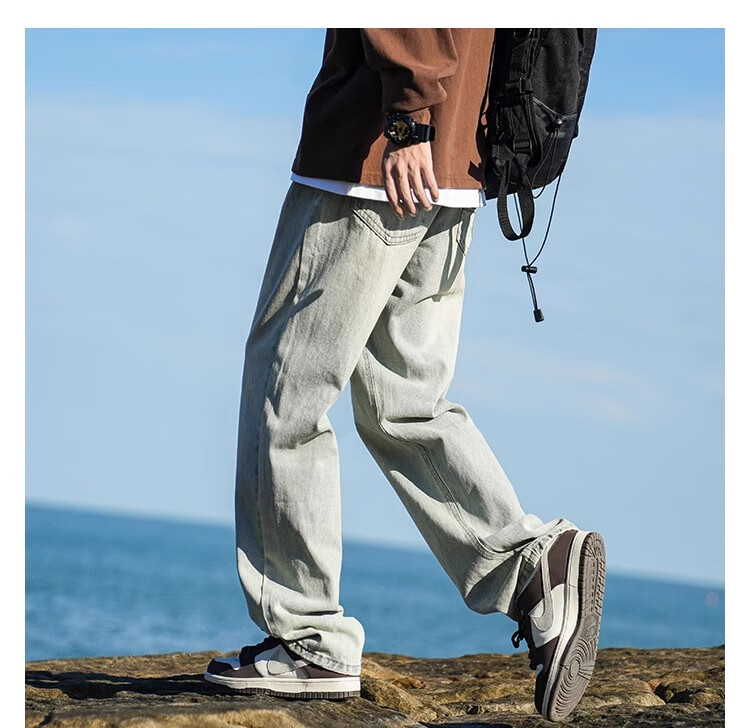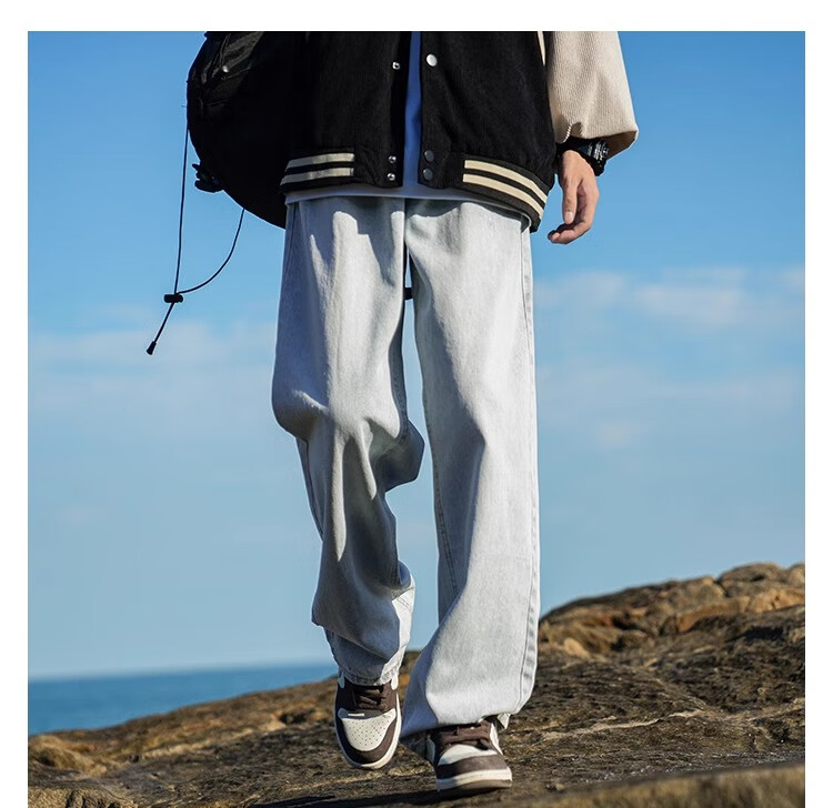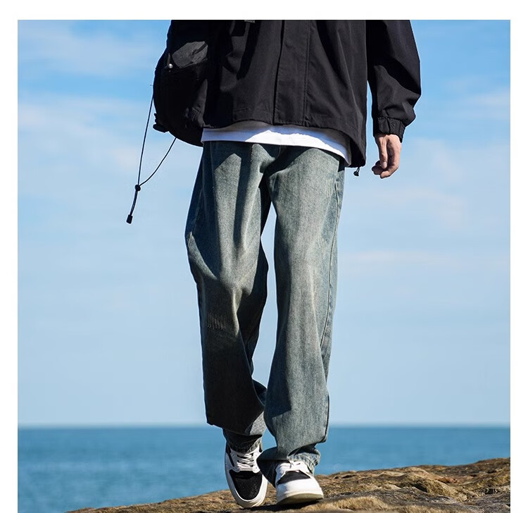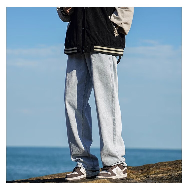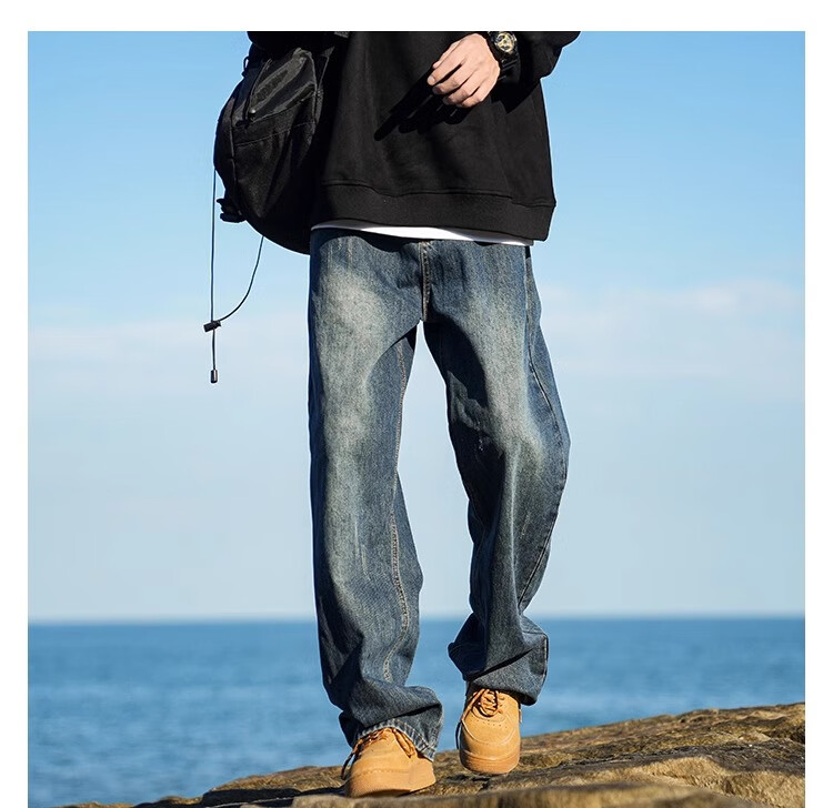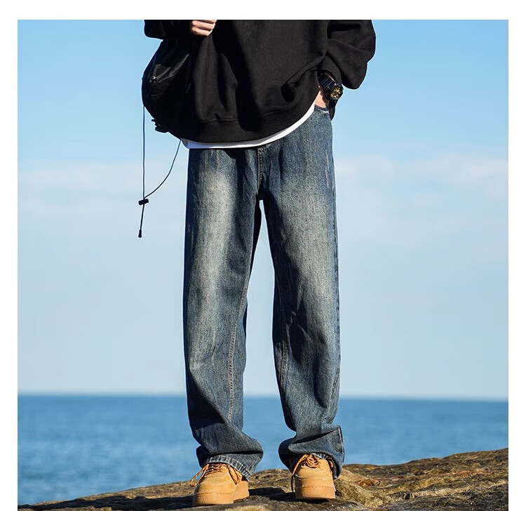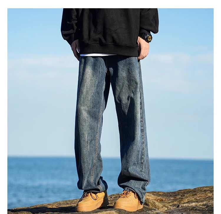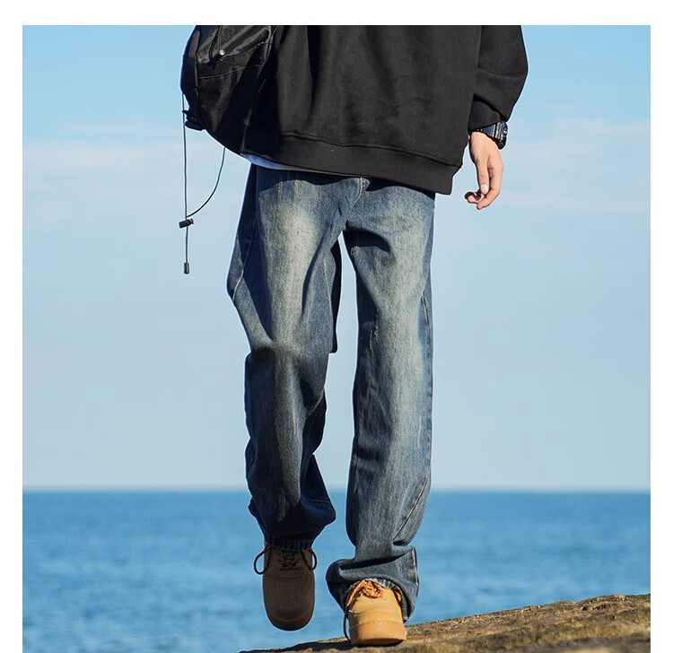 MiiOW Jeans Men's Velvet Thickened American Pants Men's Autumn 2025 New Straight Wide Leg Casual Long Pants Men's Pants Retro Blue XL 32-33 Sizes