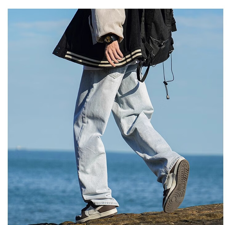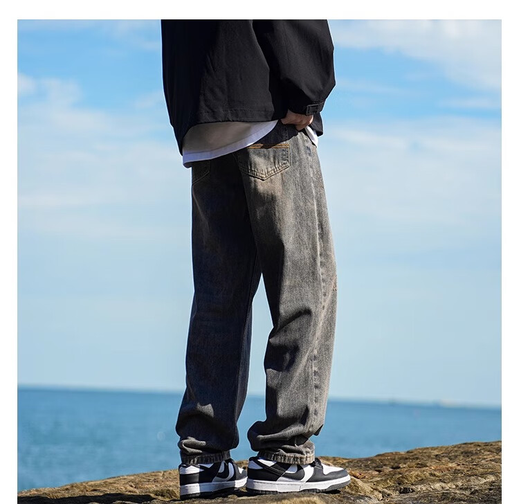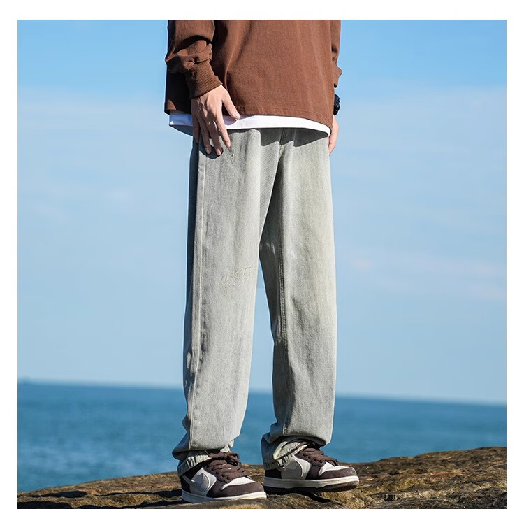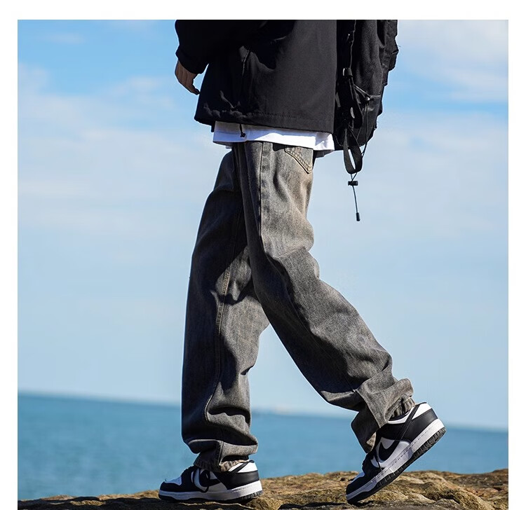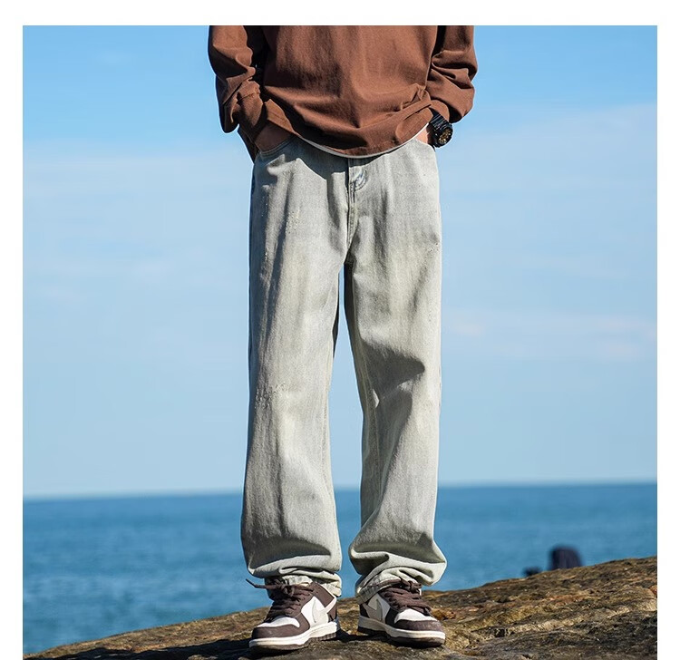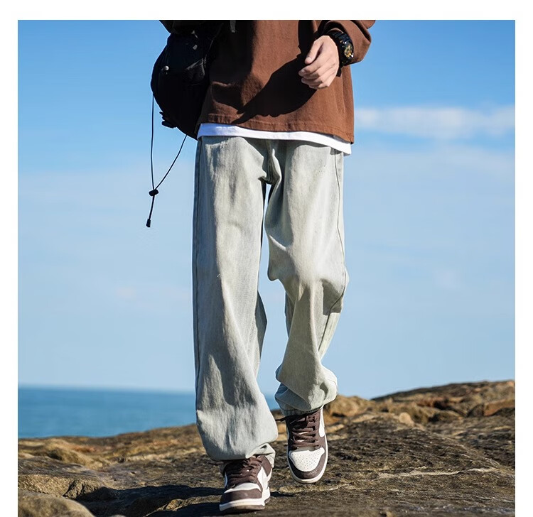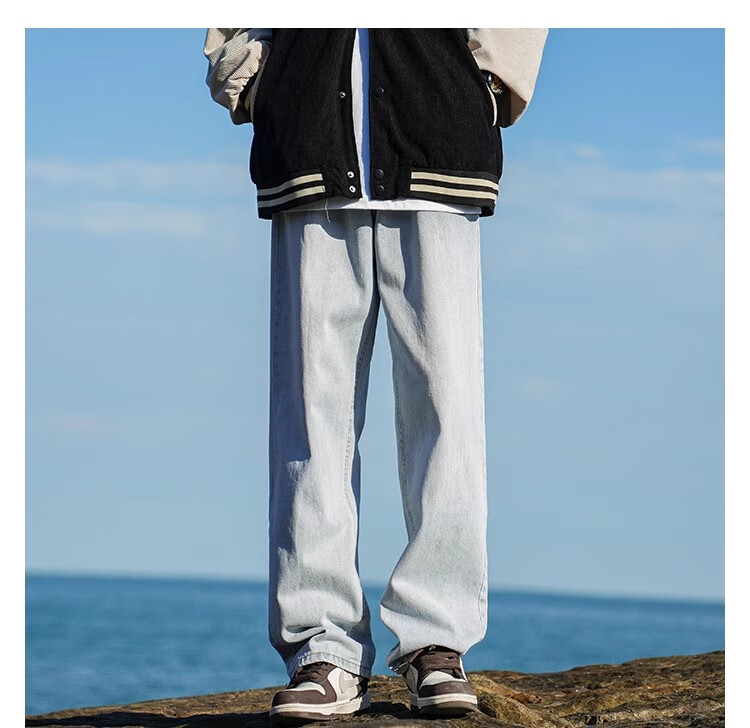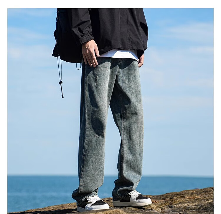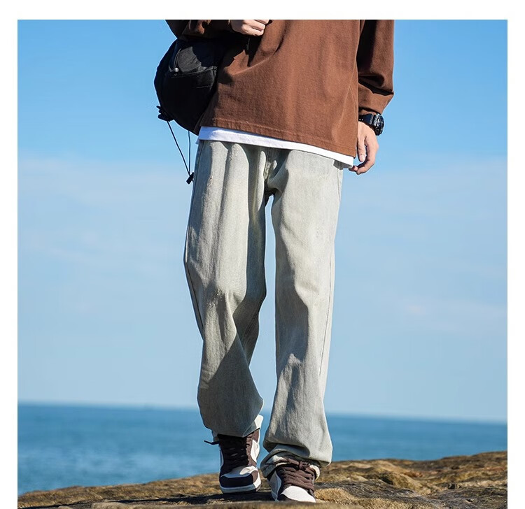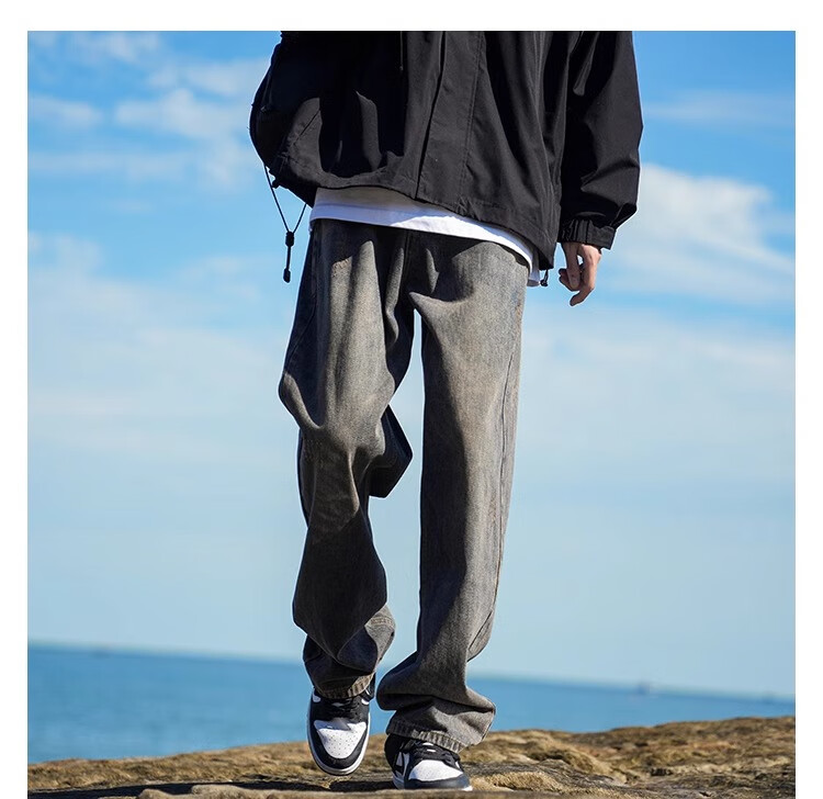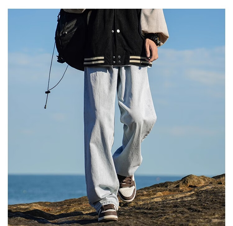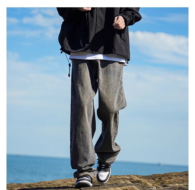MiiOW Jeans Men's Velvet Thickened American Pants Men's Autumn 2025 New Straight Wide Leg Casual Long Pants Men's Pants Retro Blue XL 32-33 Sizes