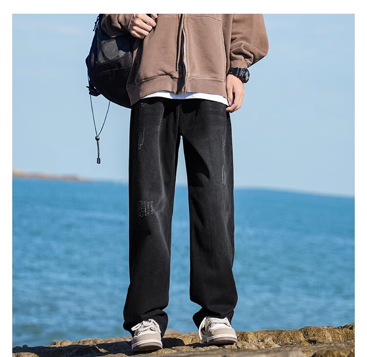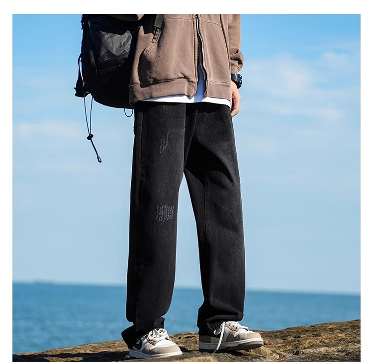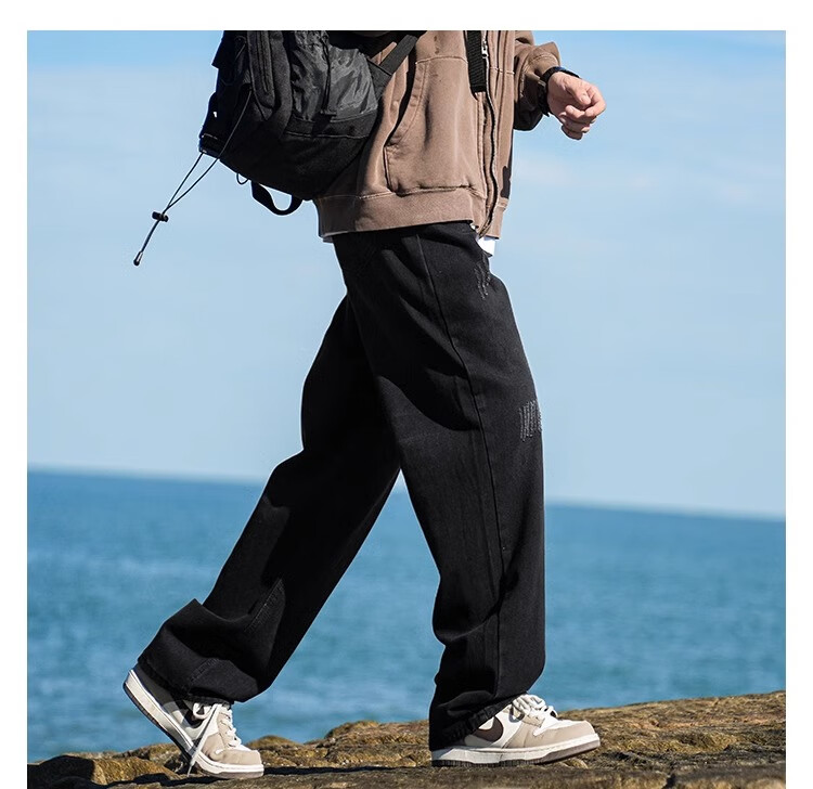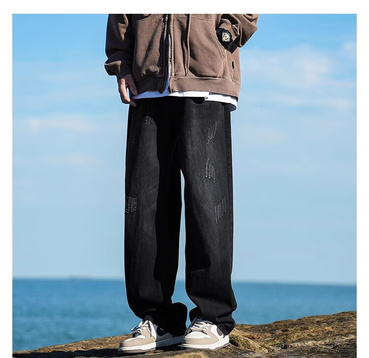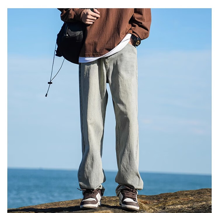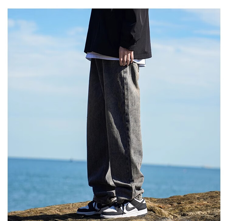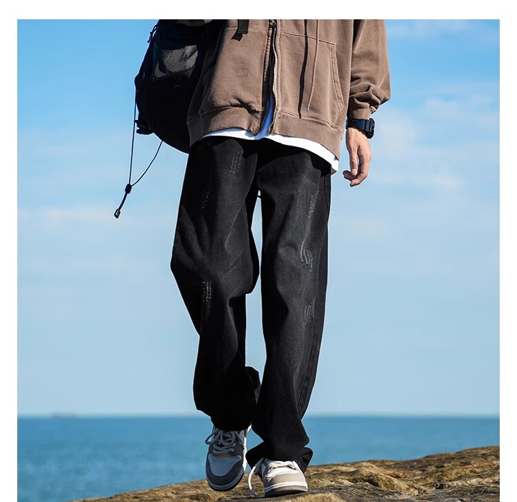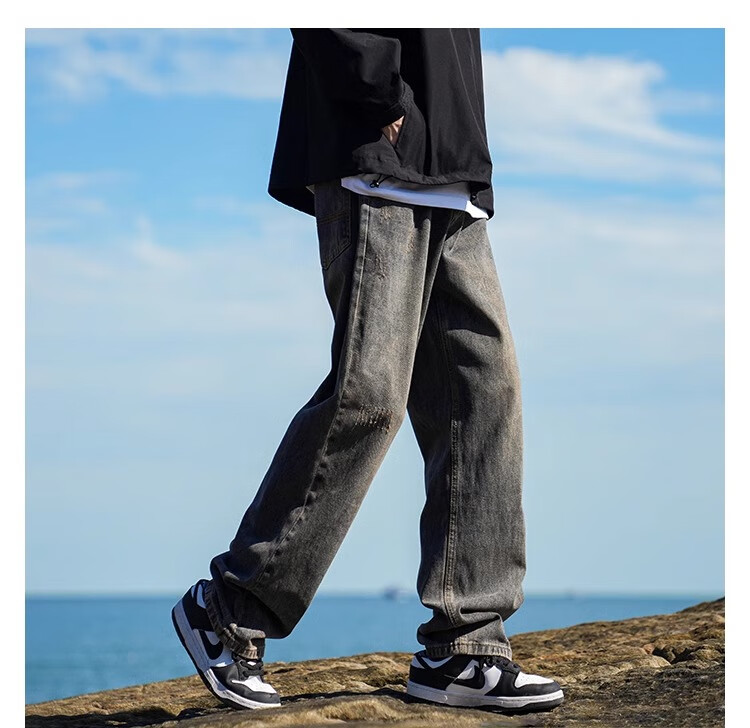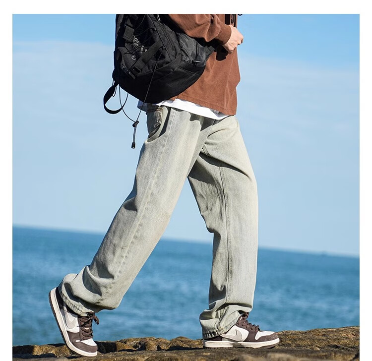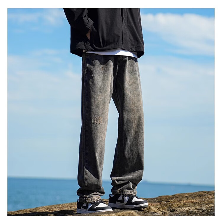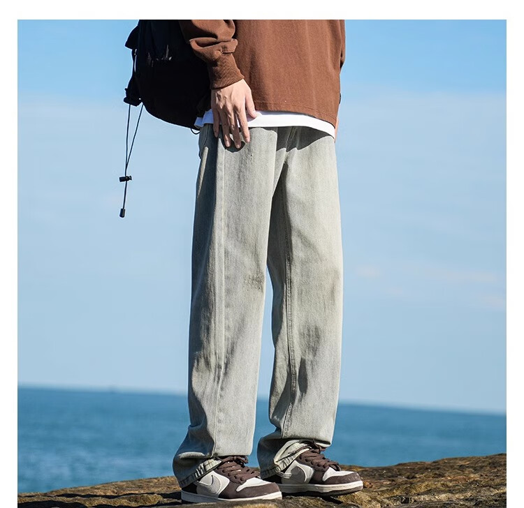 MiiOW Jeans Men's Velvet Thickened American Pants Men's Autumn 2025 New Straight Wide Leg Casual Long Pants Men's Pants Retro Blue XL 32-33 Sizes