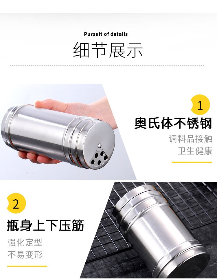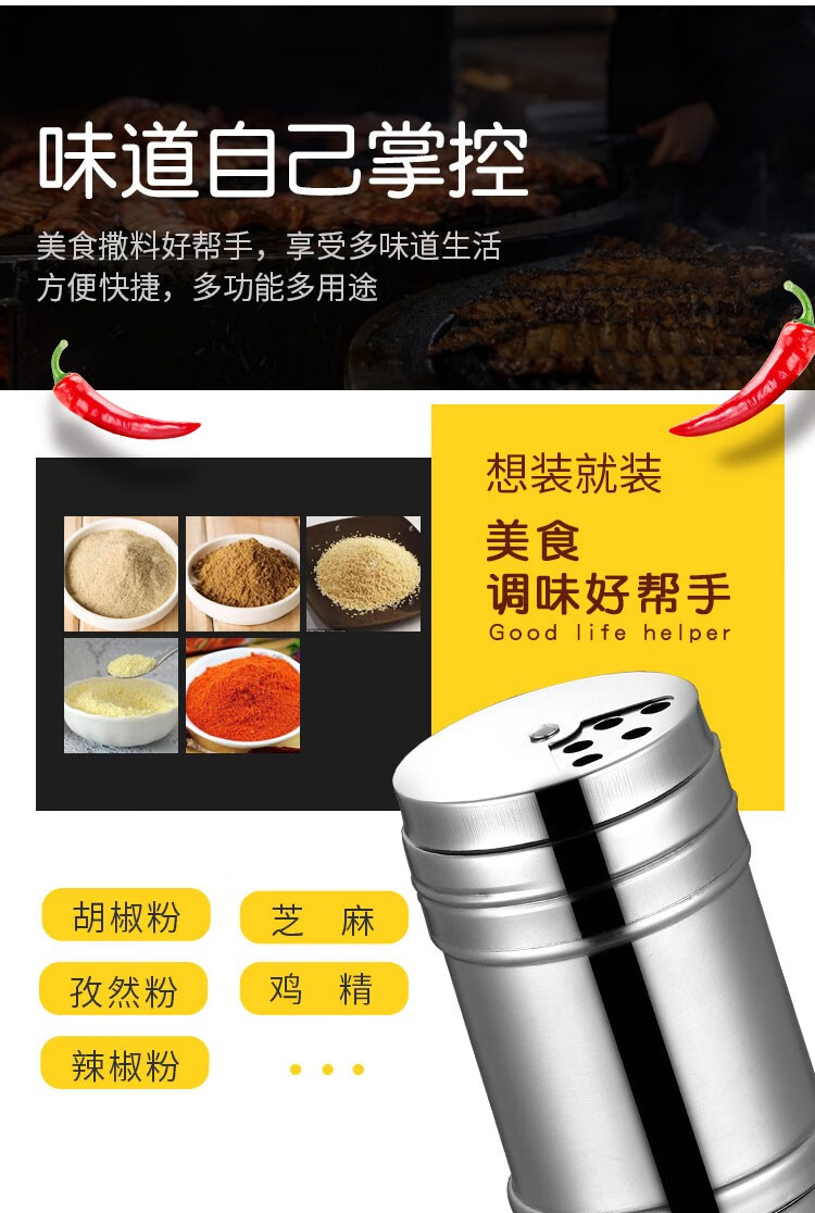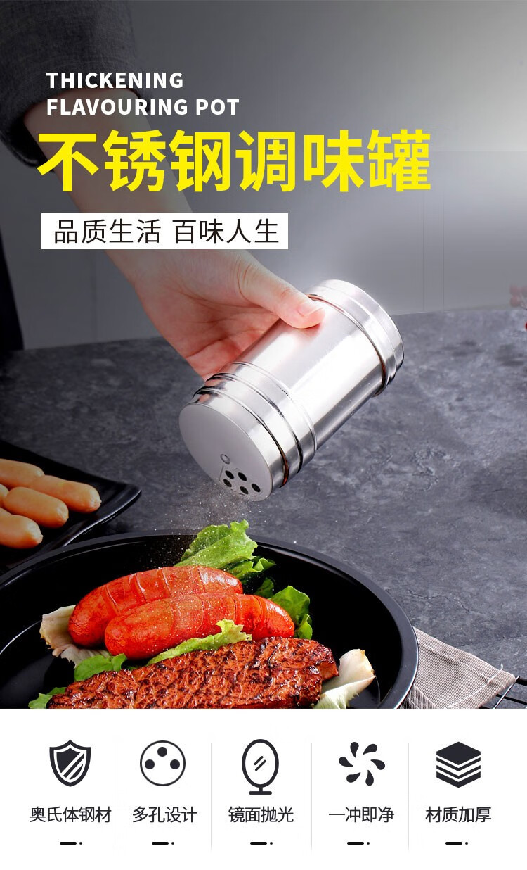 Simihua stainless steel barbecue seasoning jar, sprinkler bottle, pepper seasoning box jar, cumin jar, commercial seasoning salt jar, extra large heightening and rotatable (7.5*16cm)