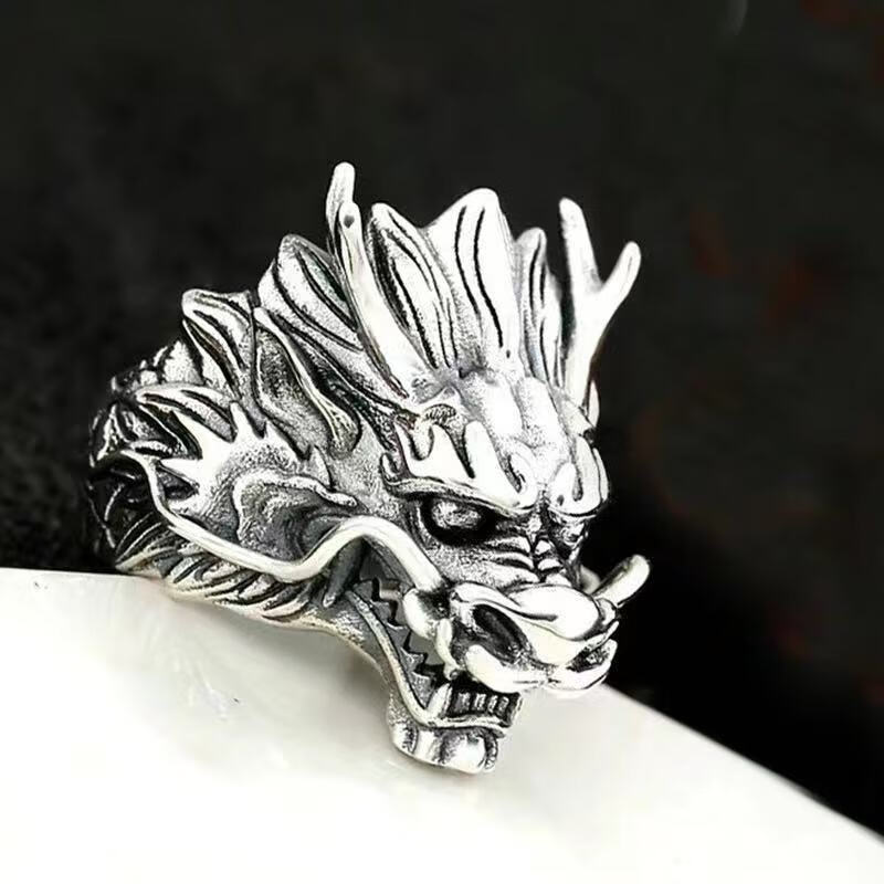 KZD Old Phoenix 999 sterling silver pure silver retro domineering and fierce men's dragon ring personalized creative silver magic dragon ring magic dragon head ring same style single pack same style