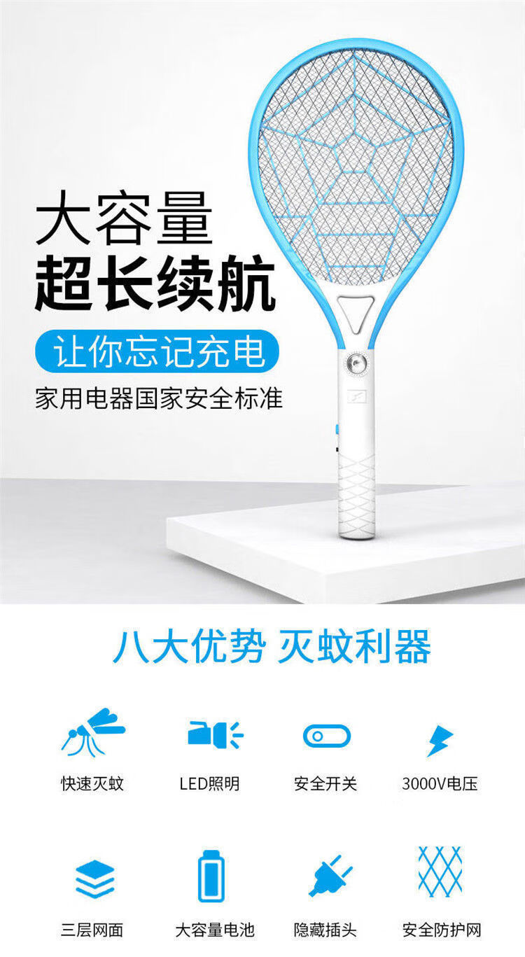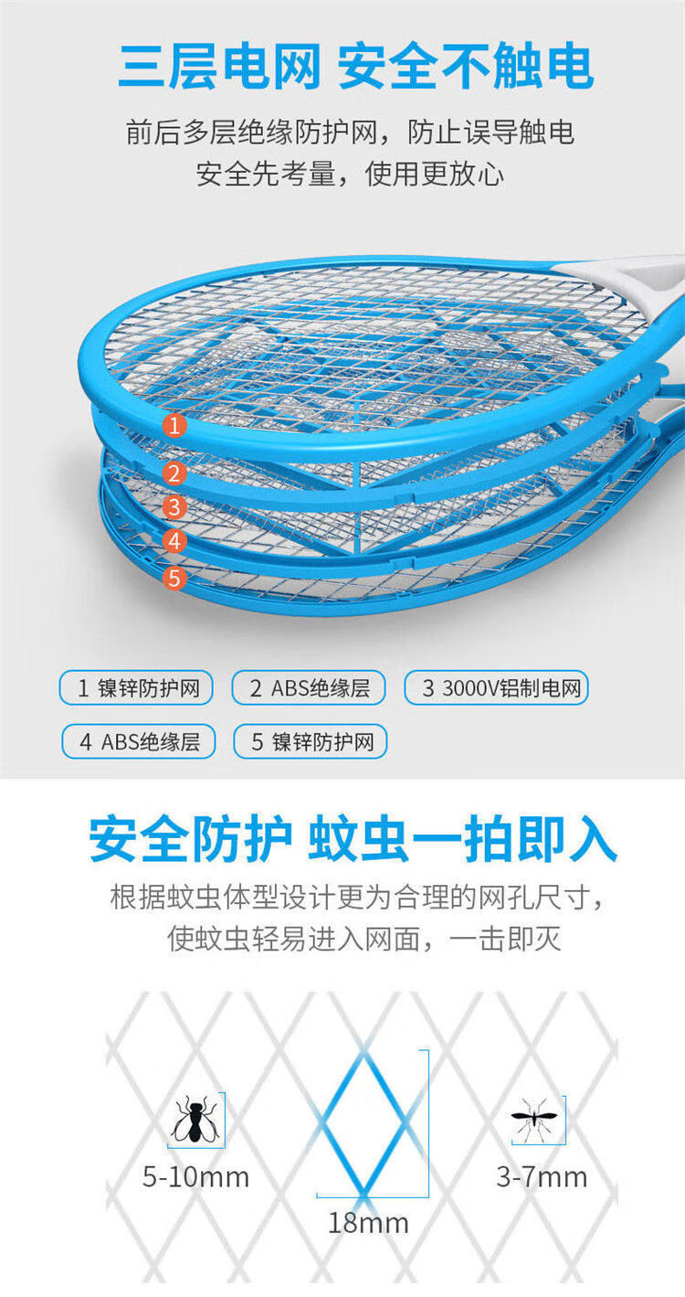 Midea electric mosquito swatter for home use, rechargeable, durable, multi-functional, manual fly swatter, large mesh mosquito repellent, four-in-one smart touch purple light mosquito trap - with bottom