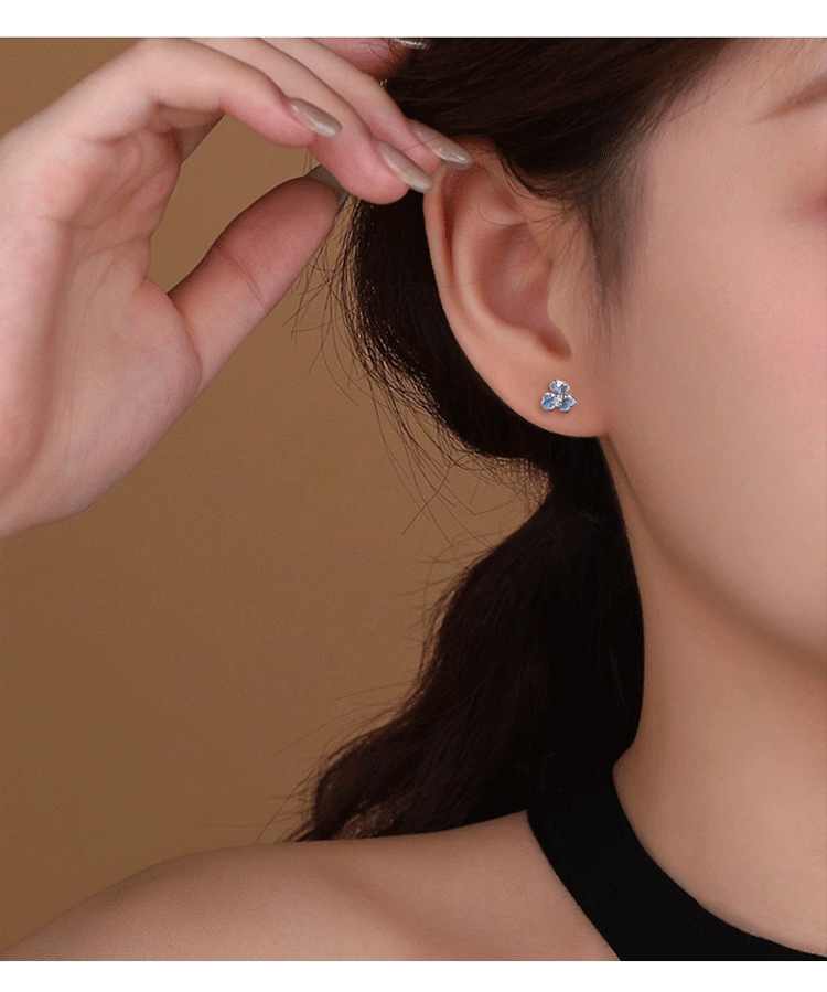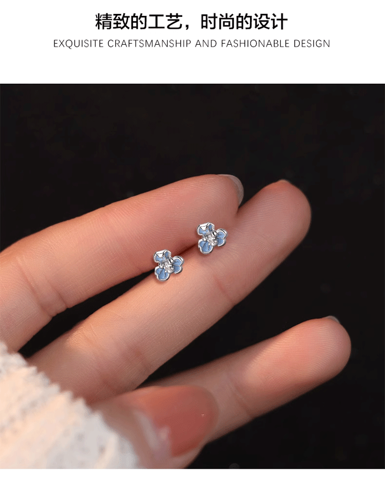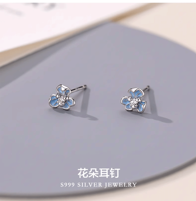 Lnieer 999 Pure Silver Small Blue Iris Earrings New Earrings Women's Niche Sweet Flower Earrings No-Pick Blue Iris Earrings Whole Body 999 Pure Silver
