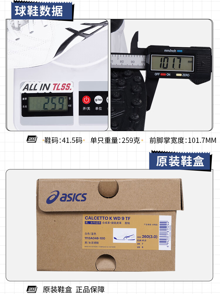 ASICS Tannoy Football ASICS CALCETTO 2E wide-footed TF human grass kangaroo leather small C3 football shoes 1113A048 white green #1113A048-103 shoe last 2E 41.5 (260mm)