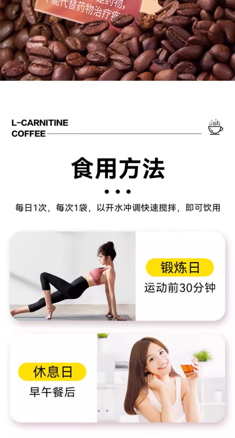 Besunyen L-Carnitine Black Coffee Powder with Belly Fat Burning Black Coffee 1 Box Trial Pack